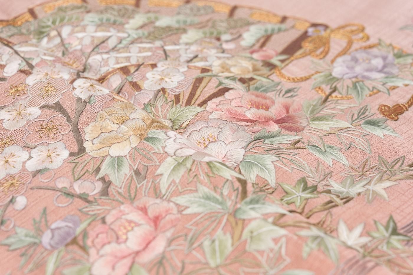 日本の四季を彩る折々の草花が艷やかな絹糸で美しく表されています。