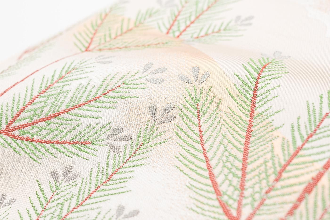 金の遠山と松を織り出したデザインは上品であり華やかさも感じさせます。