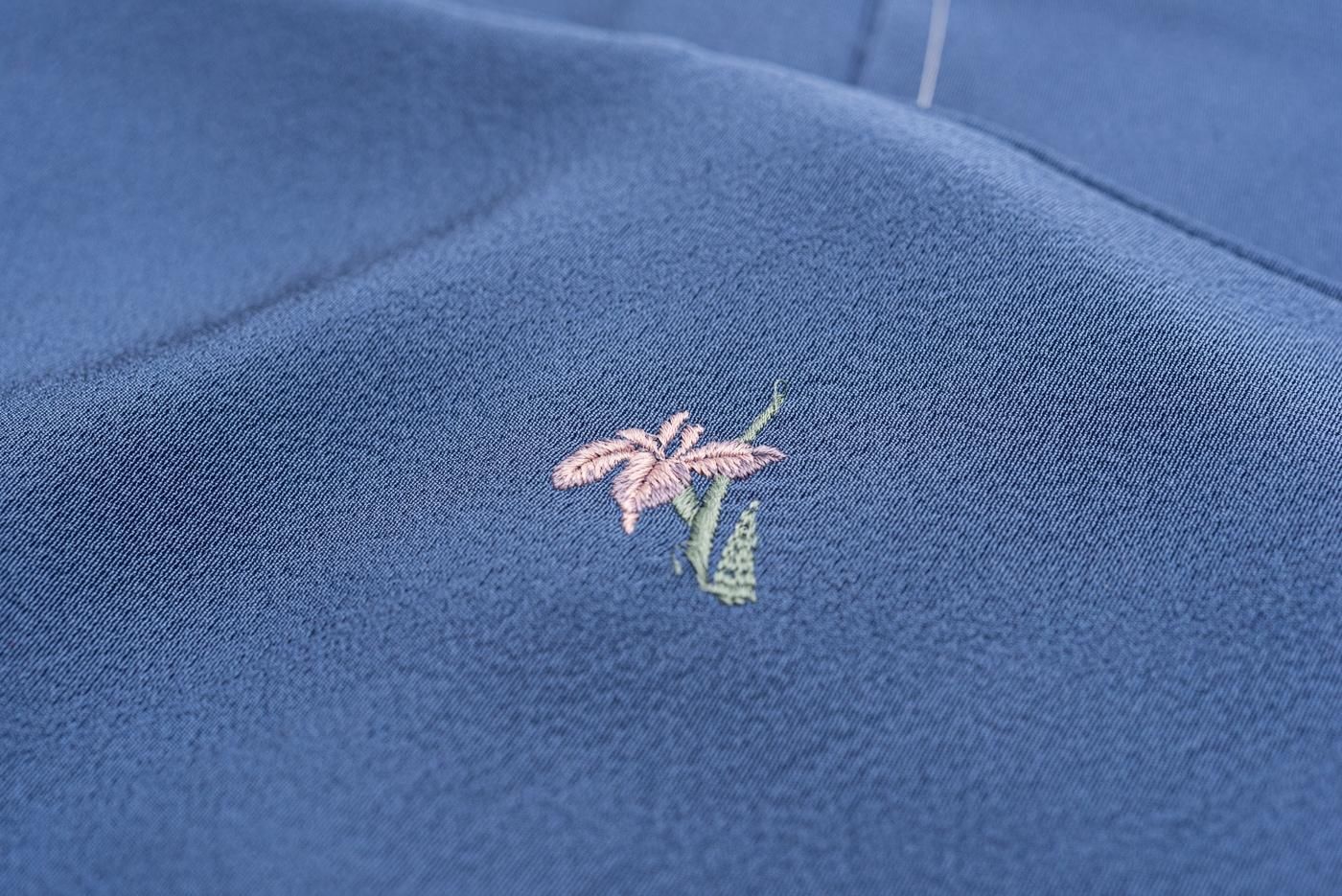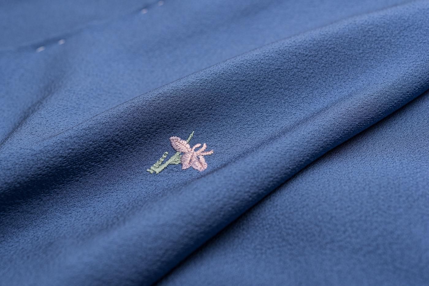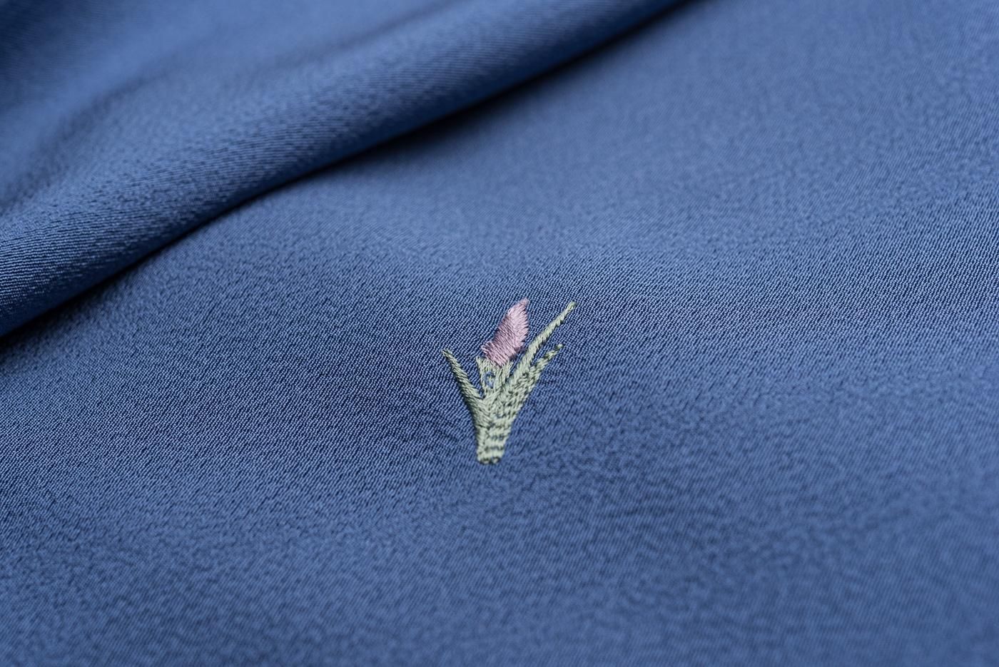 小さな刺繍を施した飛び柄の小紋です。