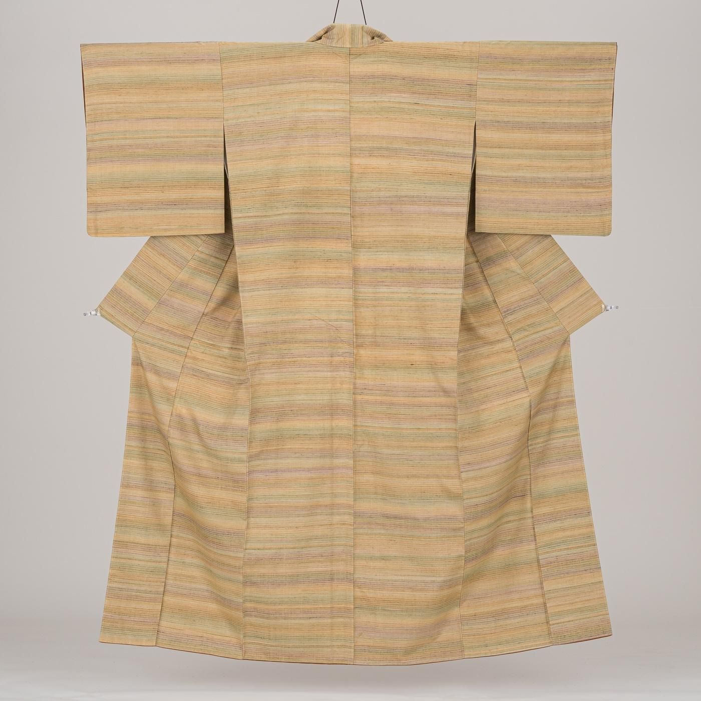 紫、緑、茶などくるくると変化する縞の色彩はシンプルでありながら奥行きを感じさせます。