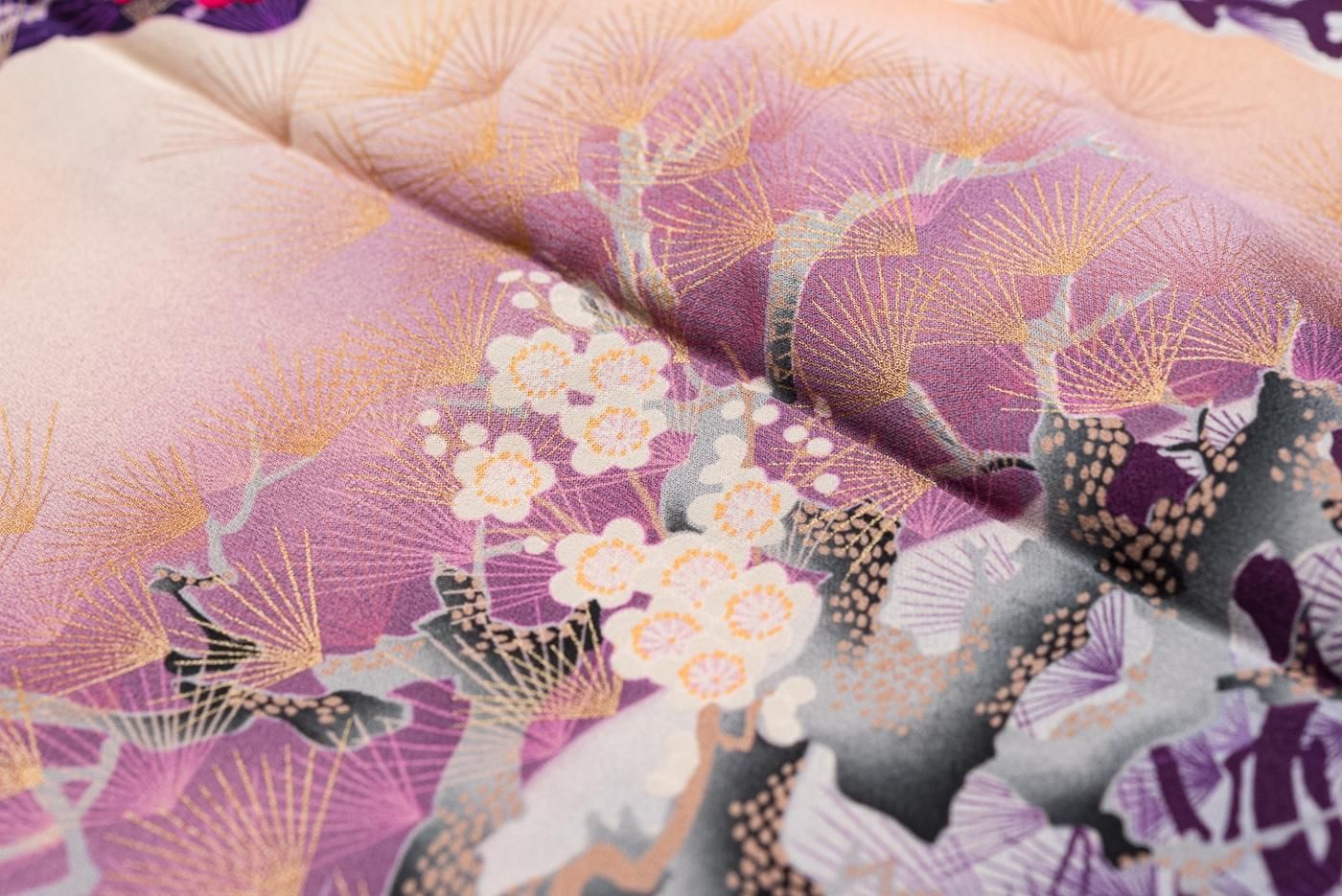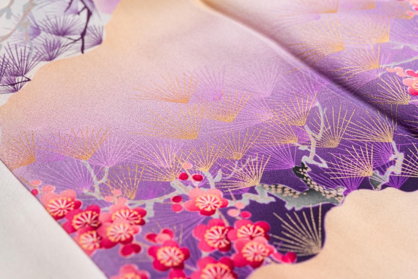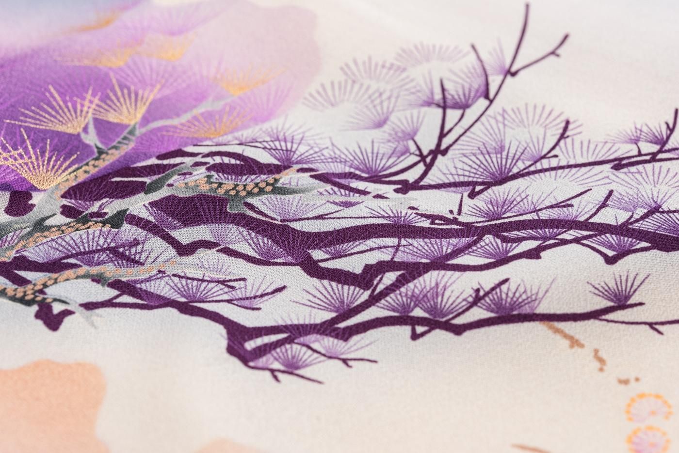 リアルタッチな松の柄は力強くなりがちですが、淡いお色目でまとまっているためはんなり優しい雰囲気です。