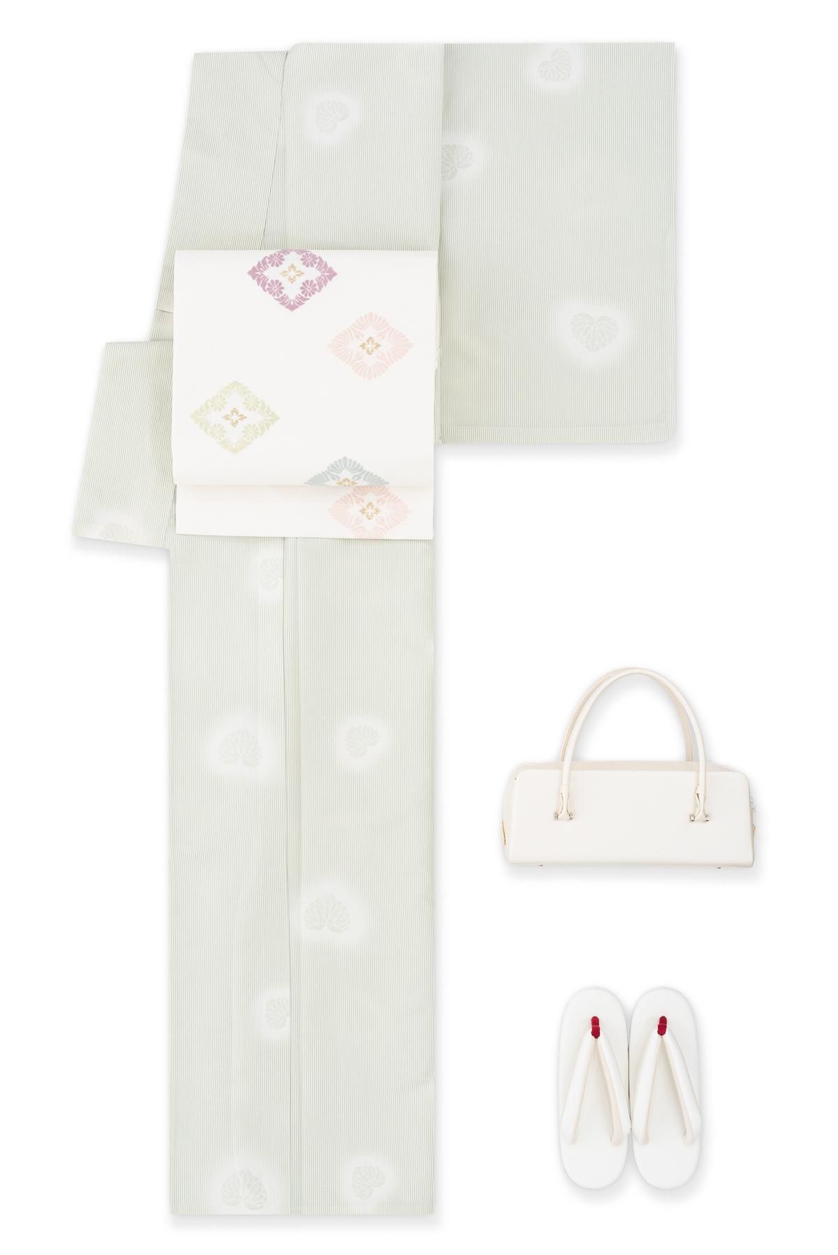 白と柳色のコントラストが柔らかく、また涼しげな印象。