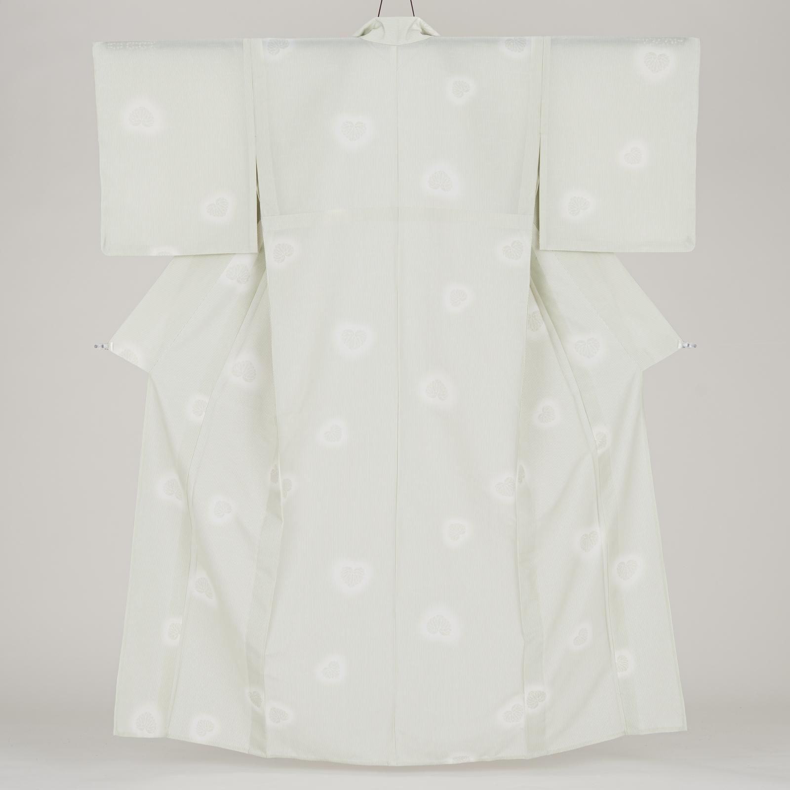 葵と縞模様を染めた単衣の小紋です。