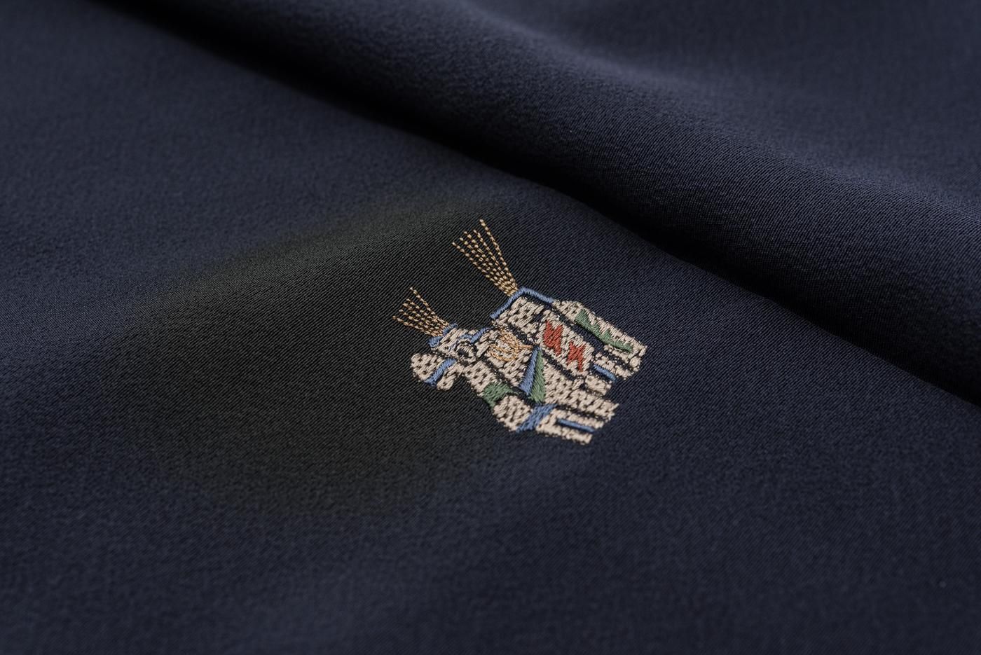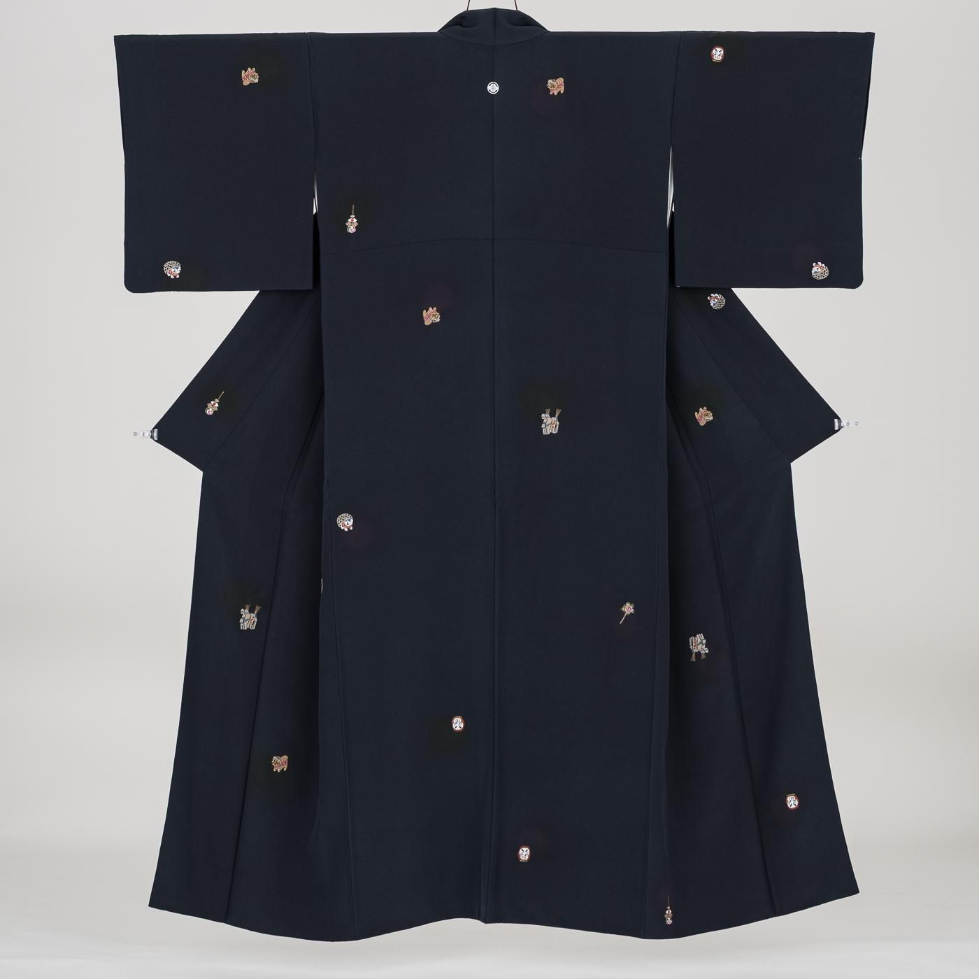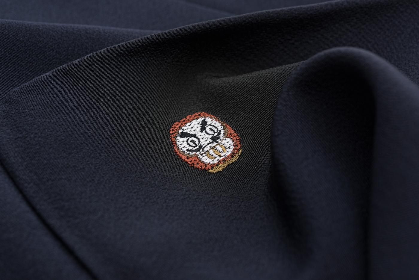 飛び柄小紋 一つ紋 刺繍 犬張り子や達磨