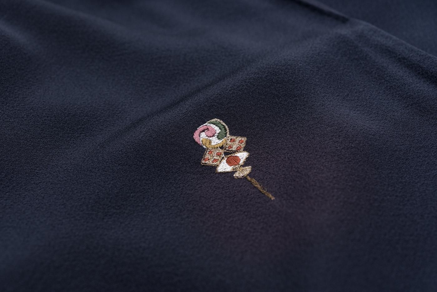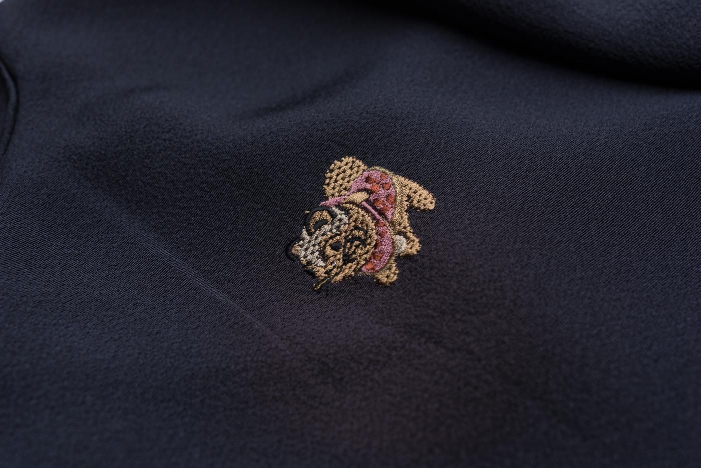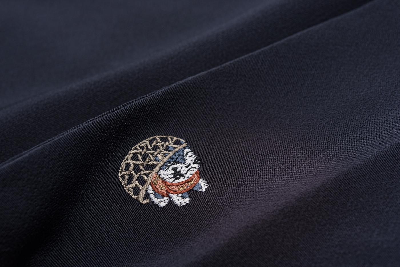 【売り切れ】 飛び柄小紋 一つ紋 刺繍 犬張り子や達磨