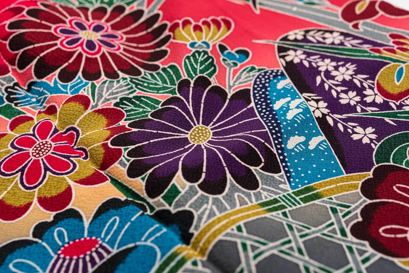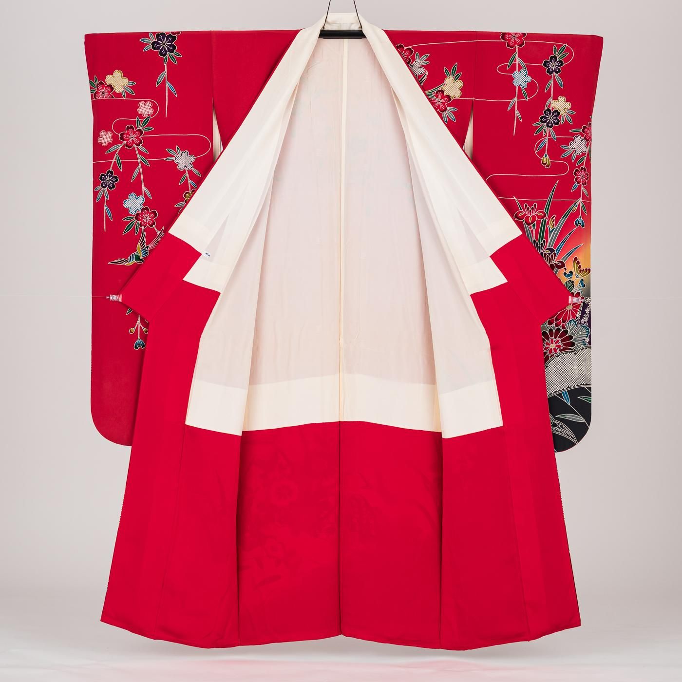 こっくりとした赤色の地に花鳥模様が映える京紅型の振袖です。