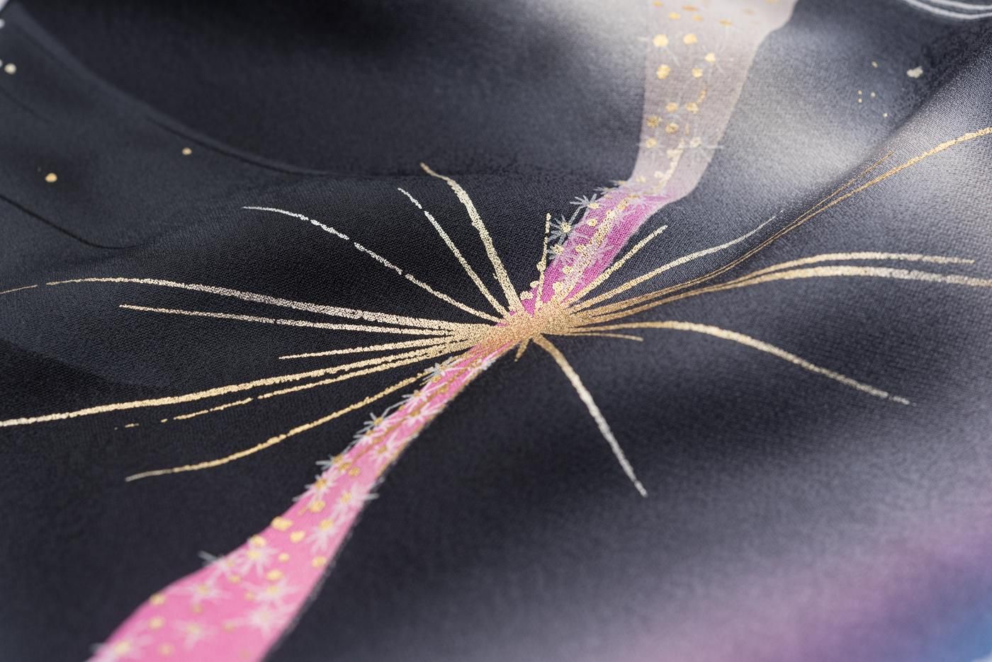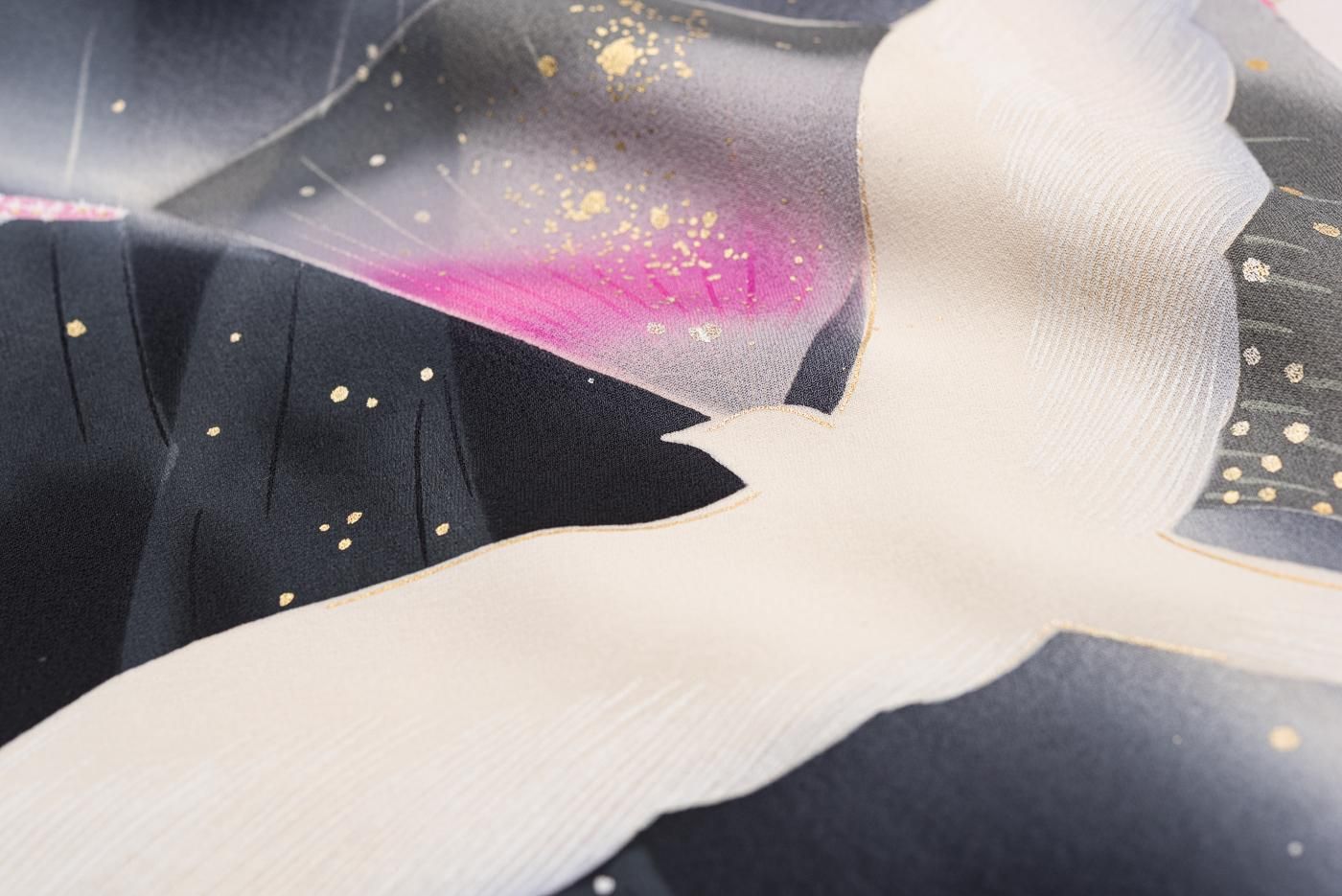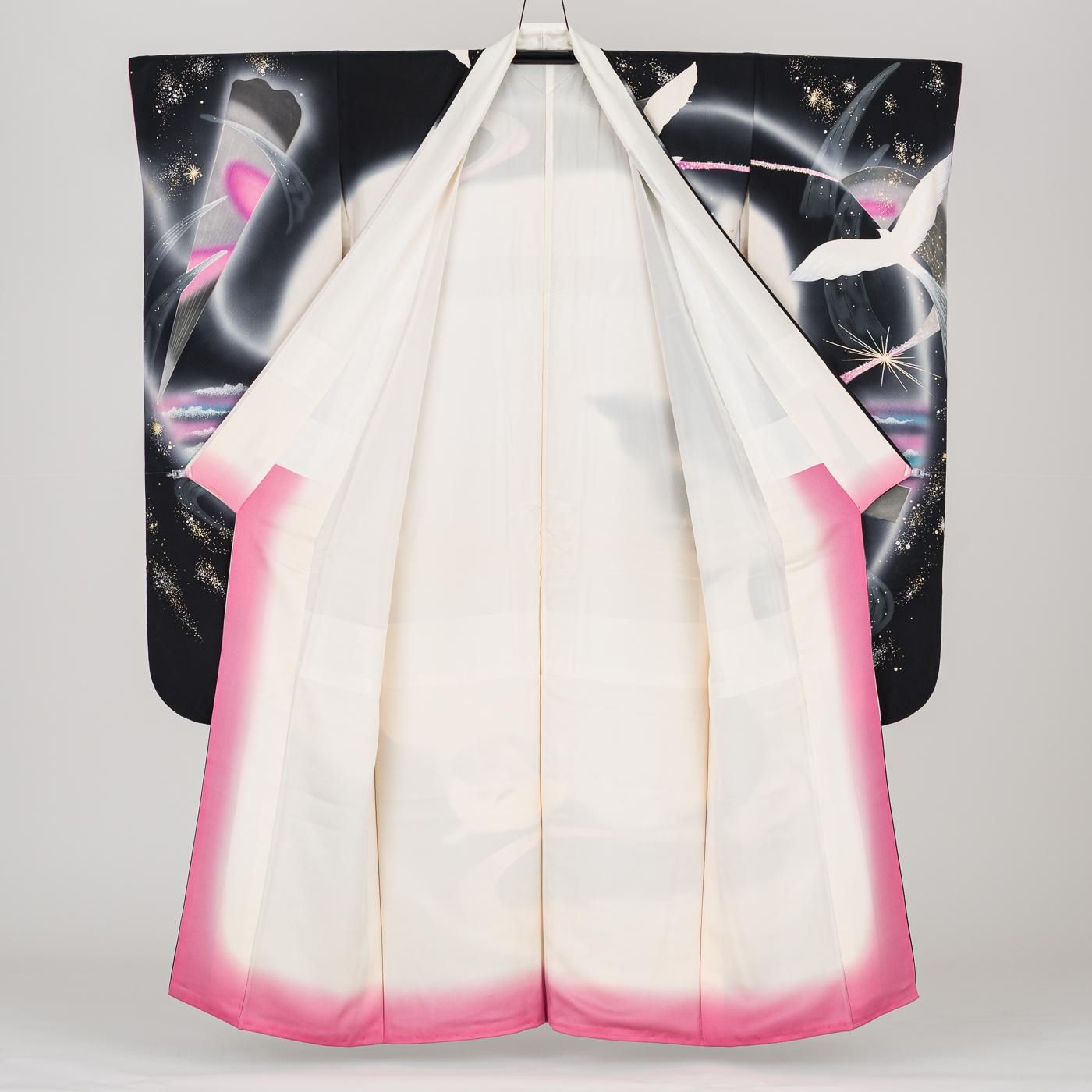 銀河と羽ばたく大きな鳥を描いたユニークで珍しい振袖です。