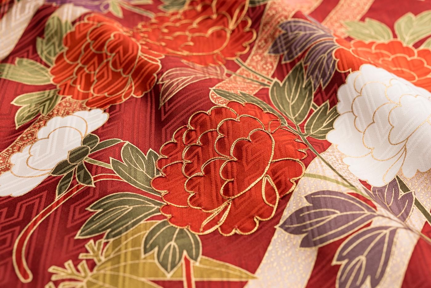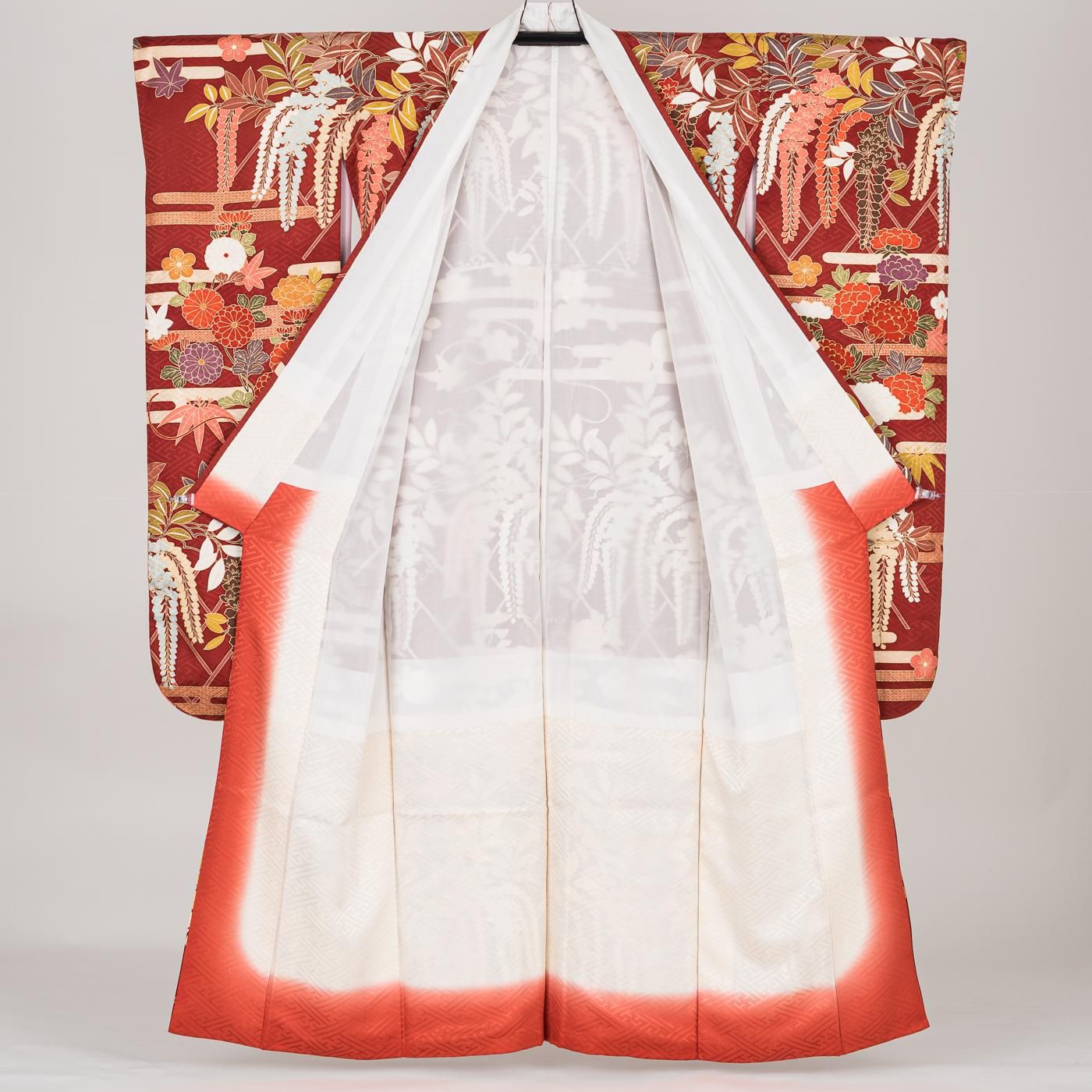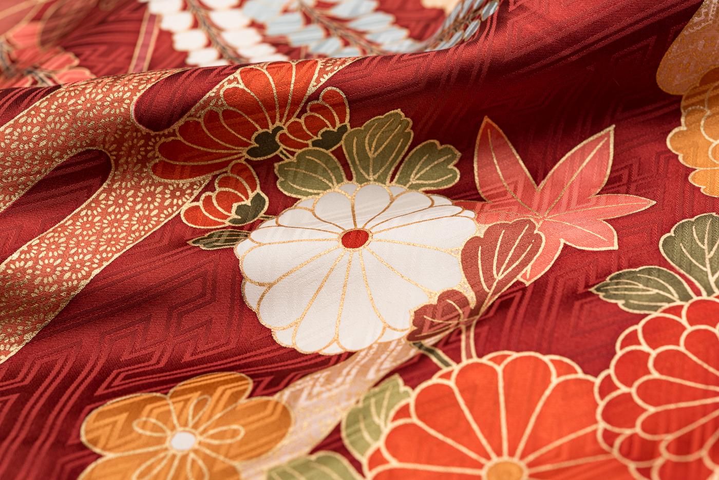 肩から裾まで途切れることなく柄が入っておりますので大変華やかな印象です。