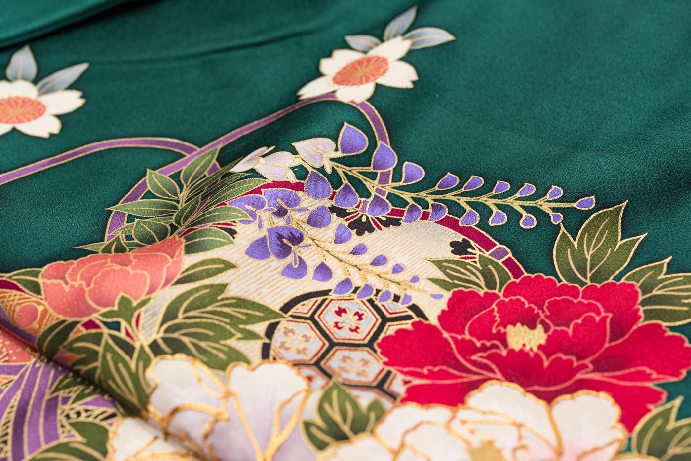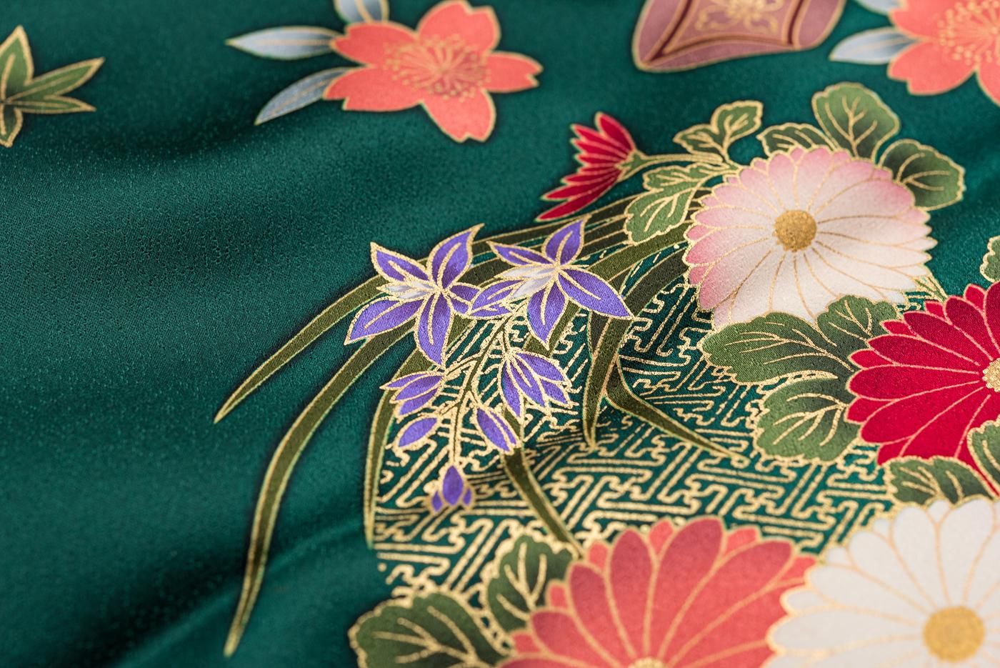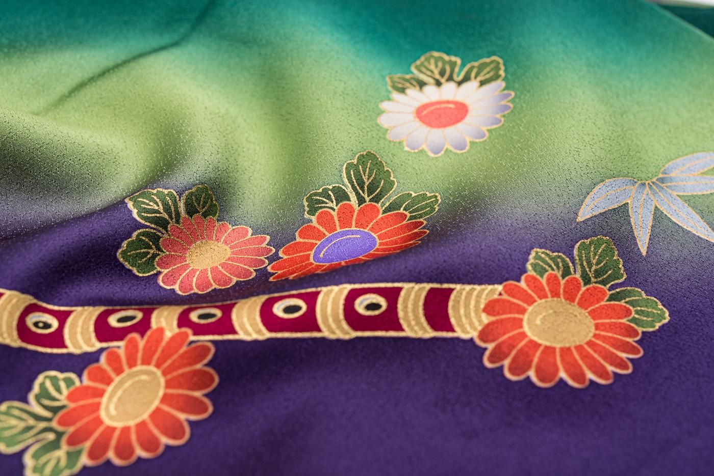 振袖 和楽器と花 裄長
