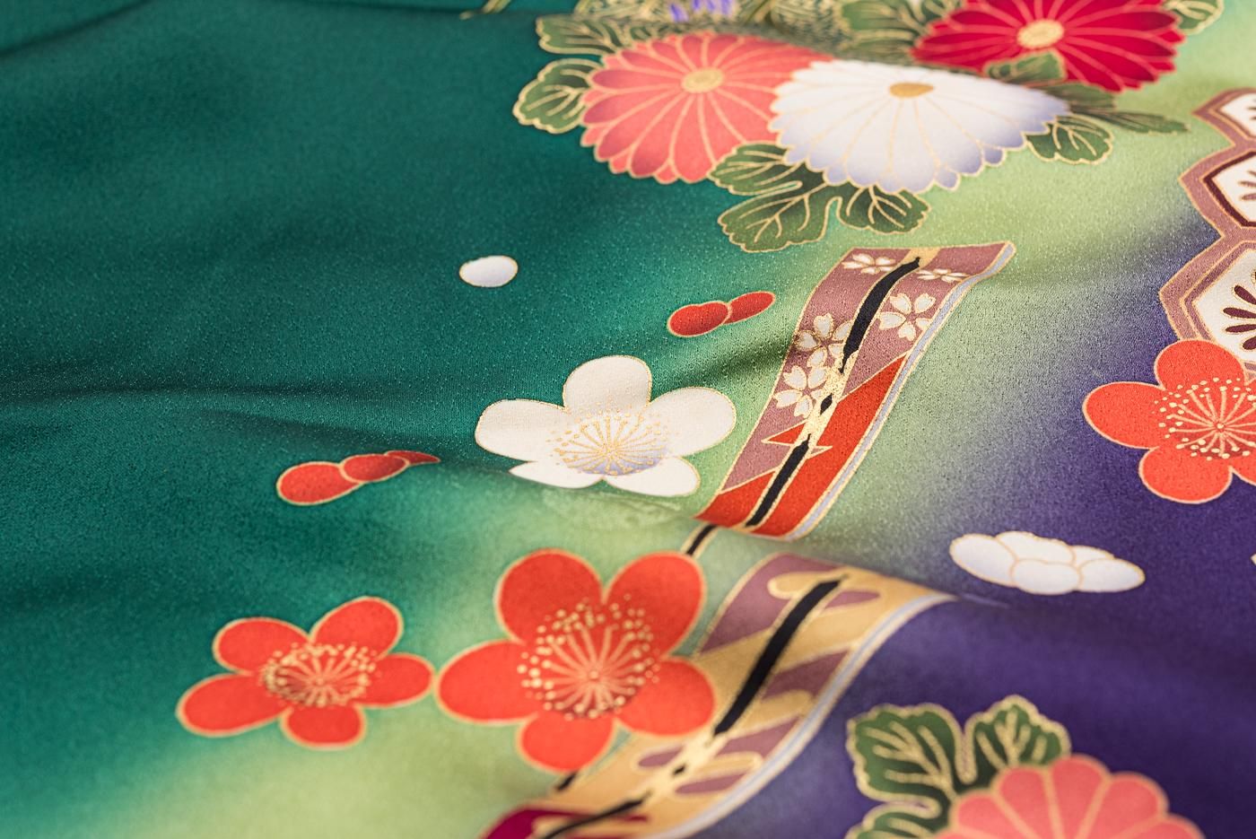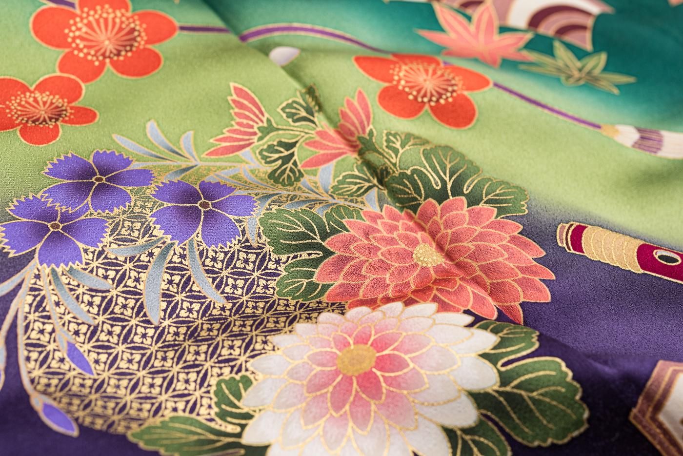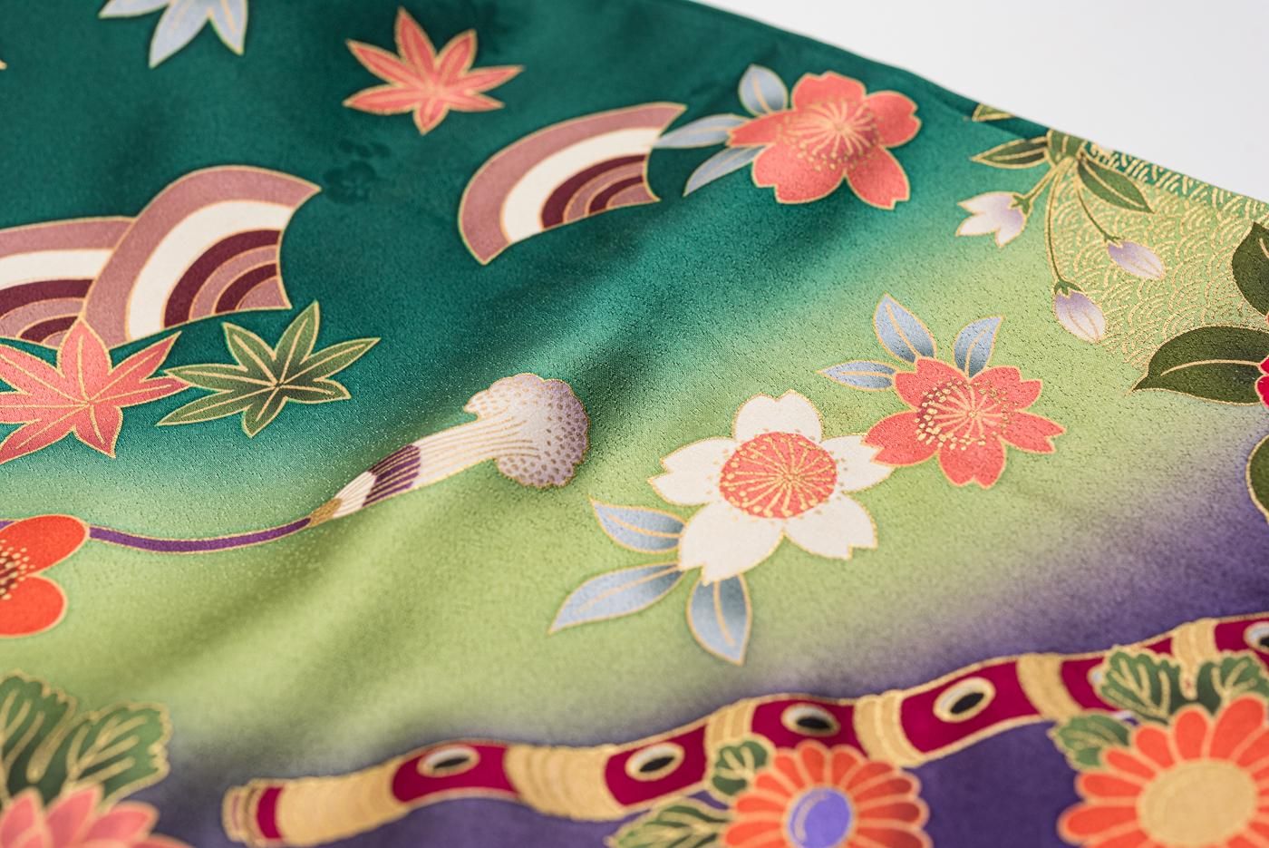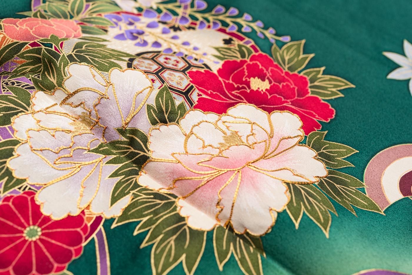 振袖 和楽器と花 裄長