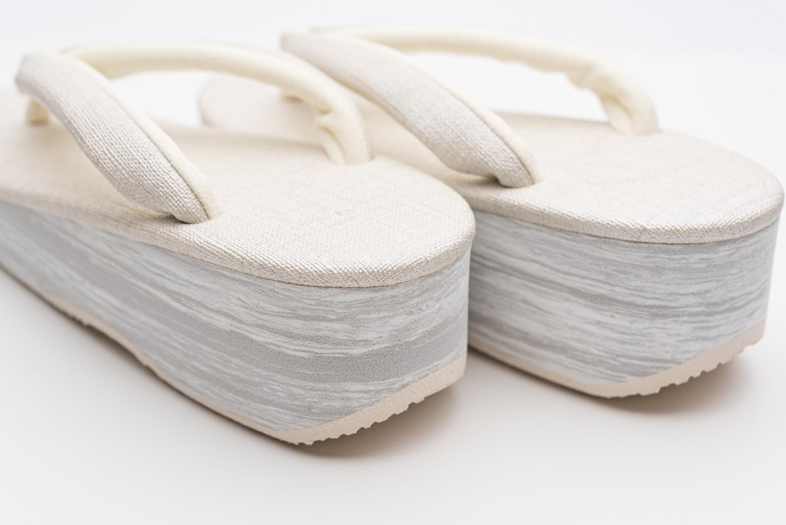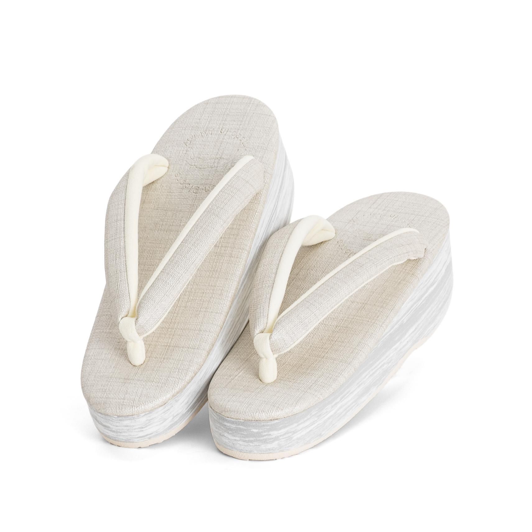 白鼠色の台に同色の鼻緒を合わせたカフェ草履です。