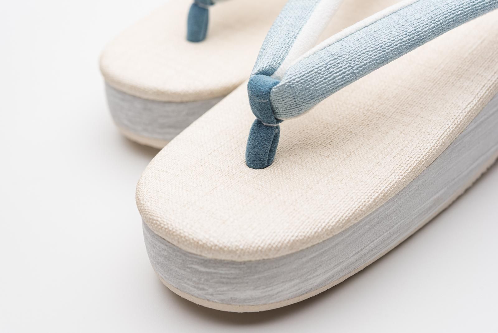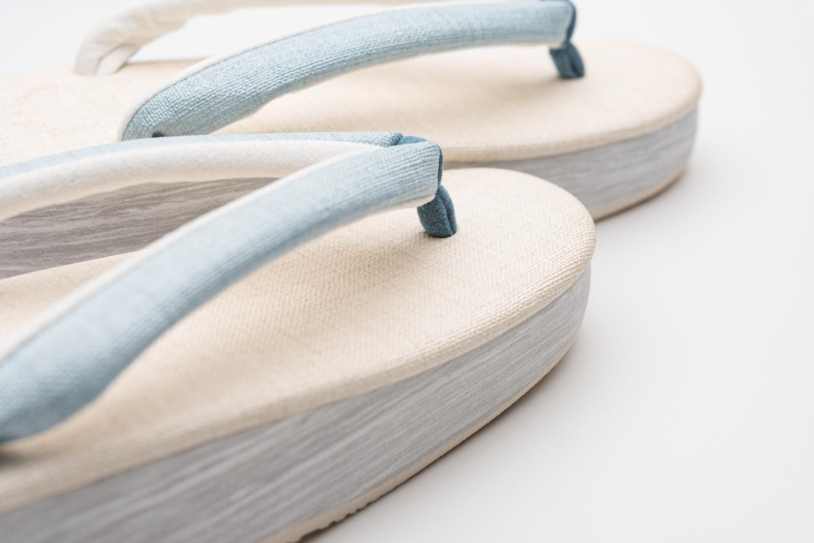 生成りの台に水色の鼻緒を合わせたカフェ草履です。