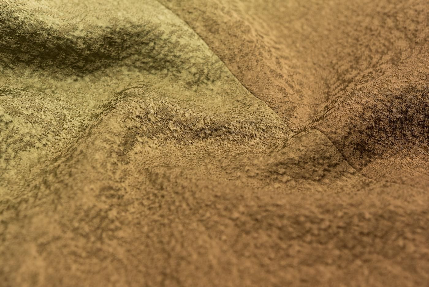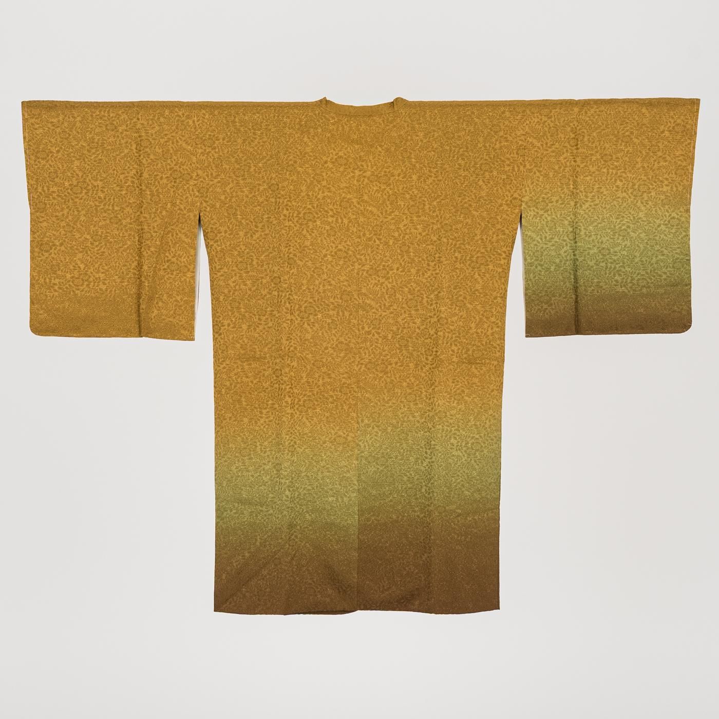 細かな草花模様を織り出した地に暈しのグラデーションが広がるシンプルでいて華やかさも兼ね備えた美しい一枚です。