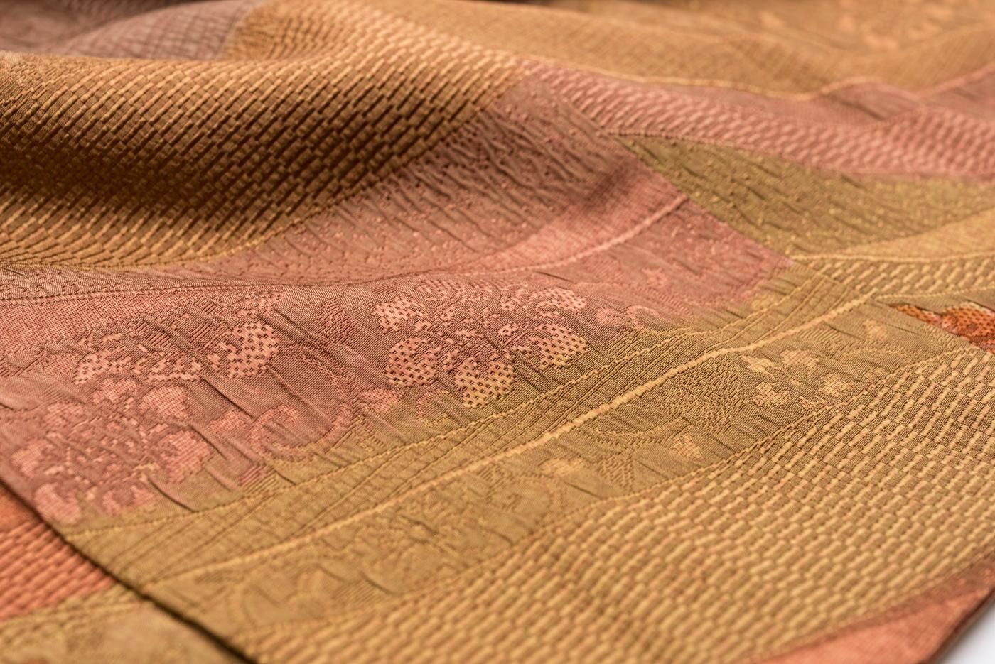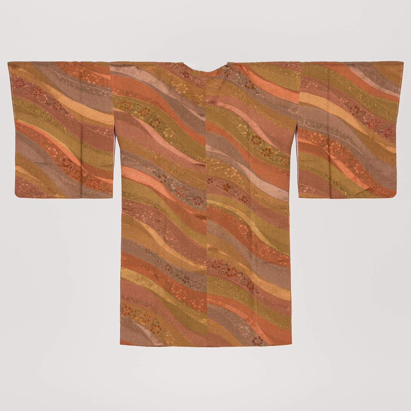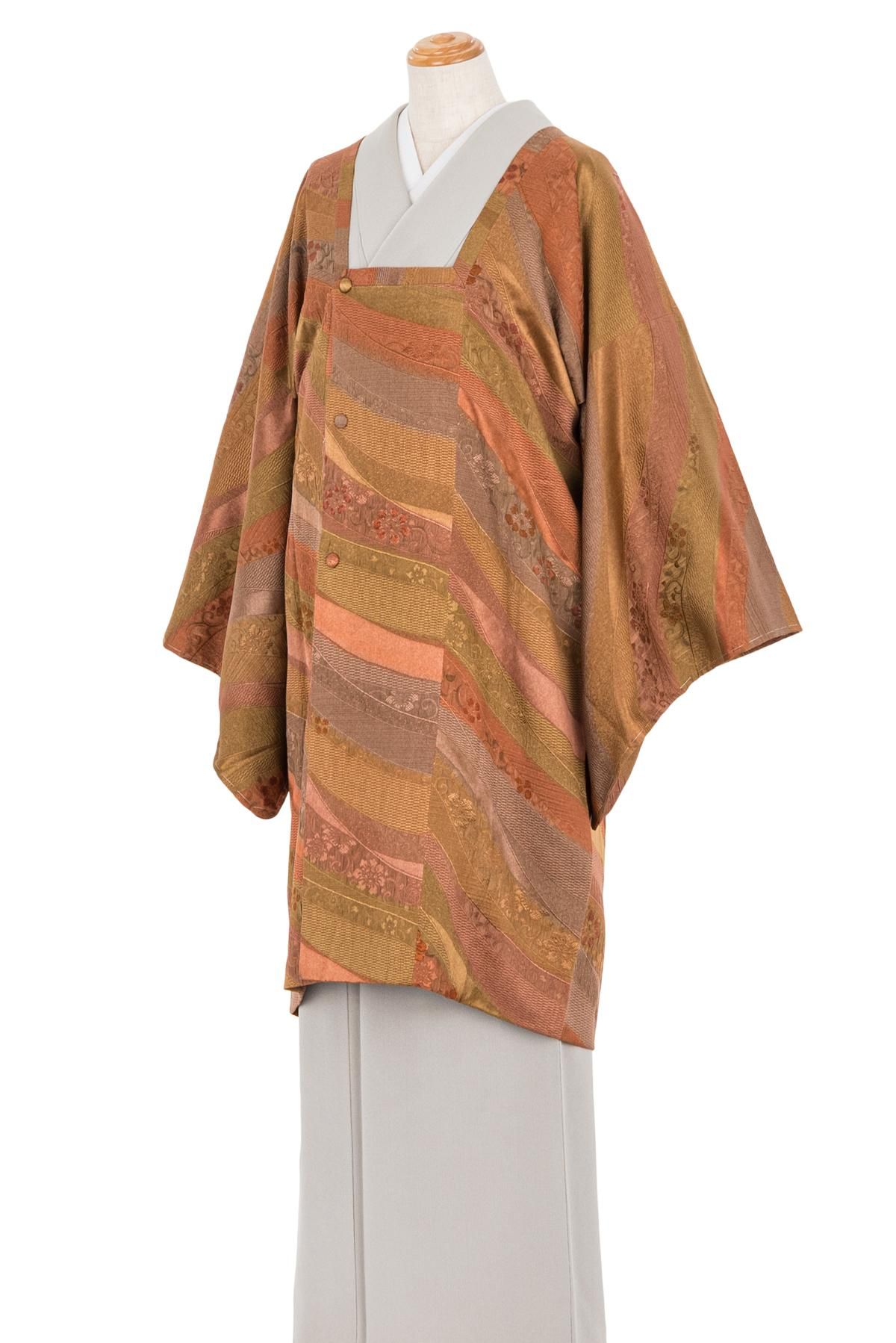 斜めの縞に小花模様を添えたロング丈の道行コートです。