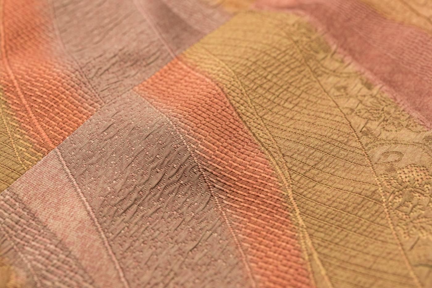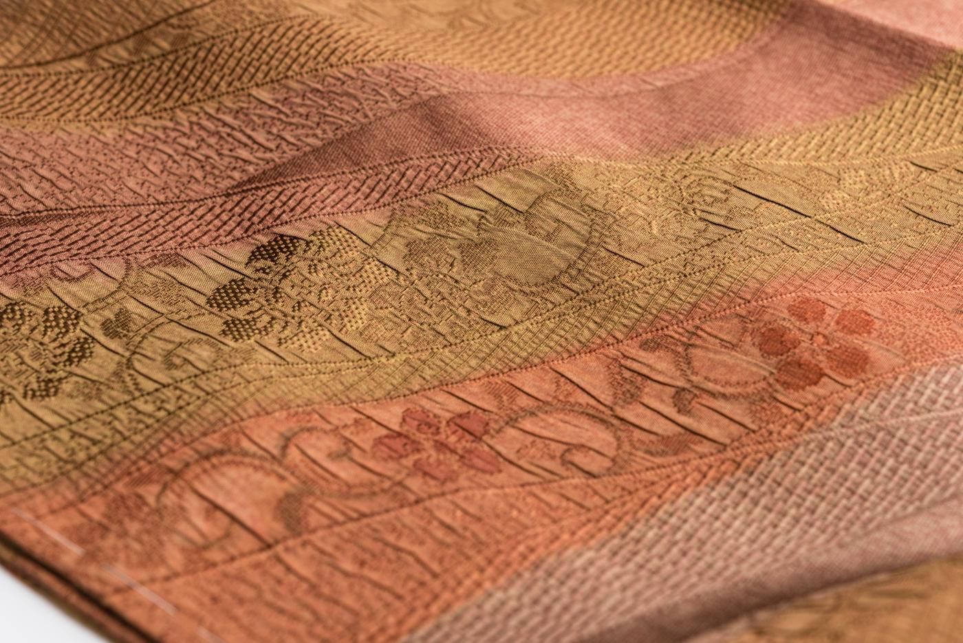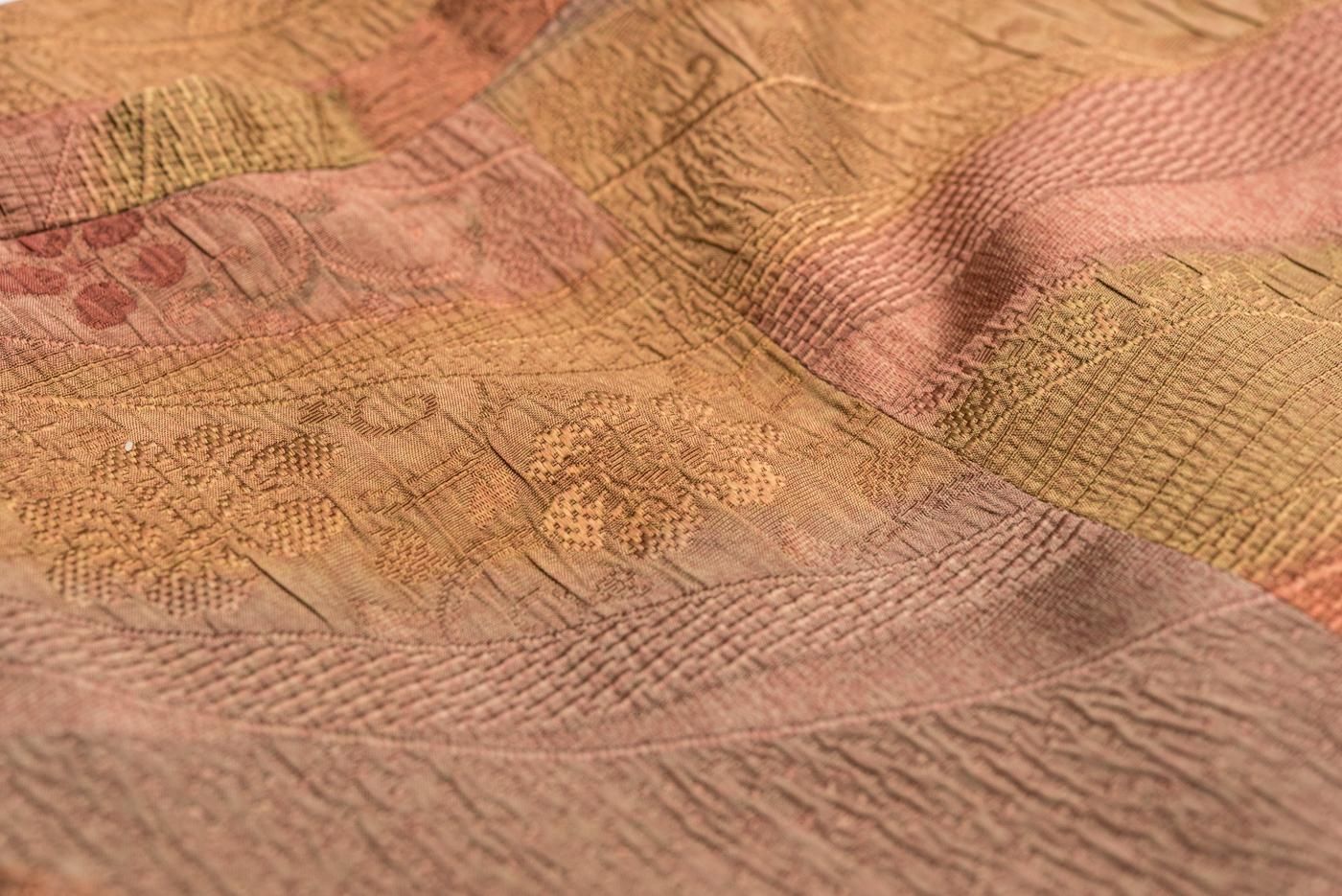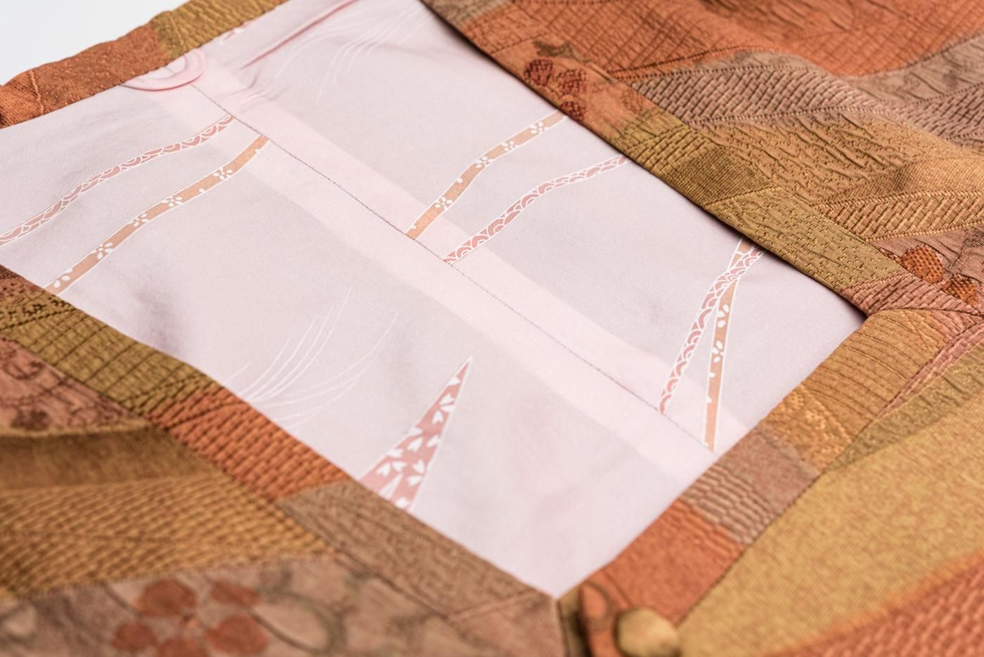 斜めの縞に小花模様を添えたロング丈の道行コートです。