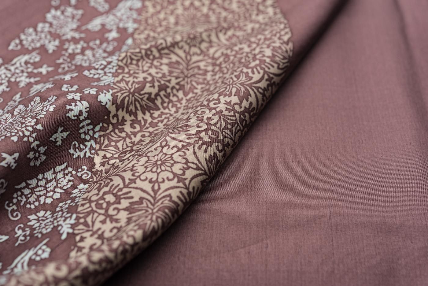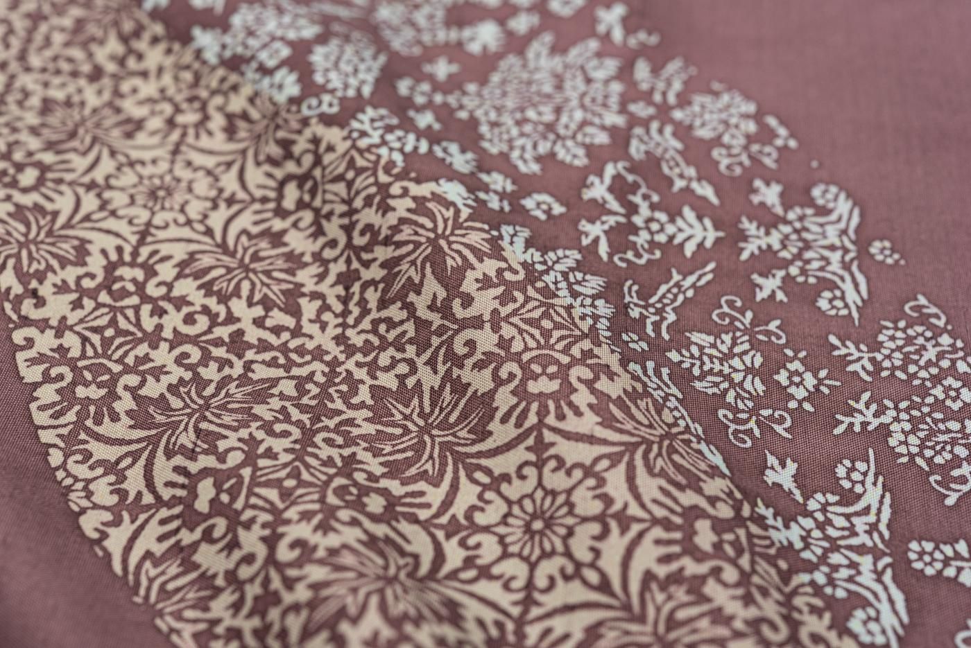 霞取りに花更紗の文様が添えられたクラシカルで落ち着いたデザイン。