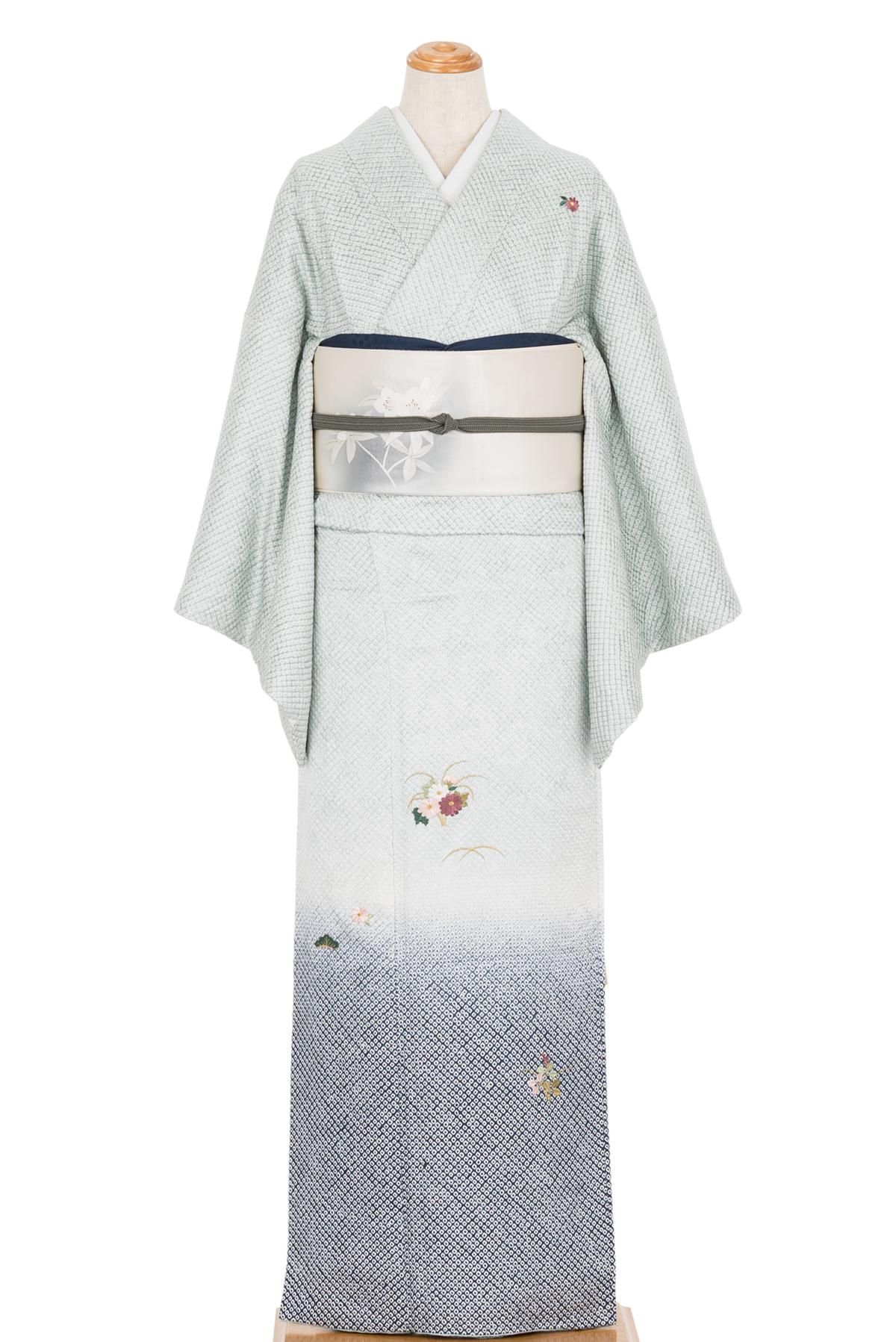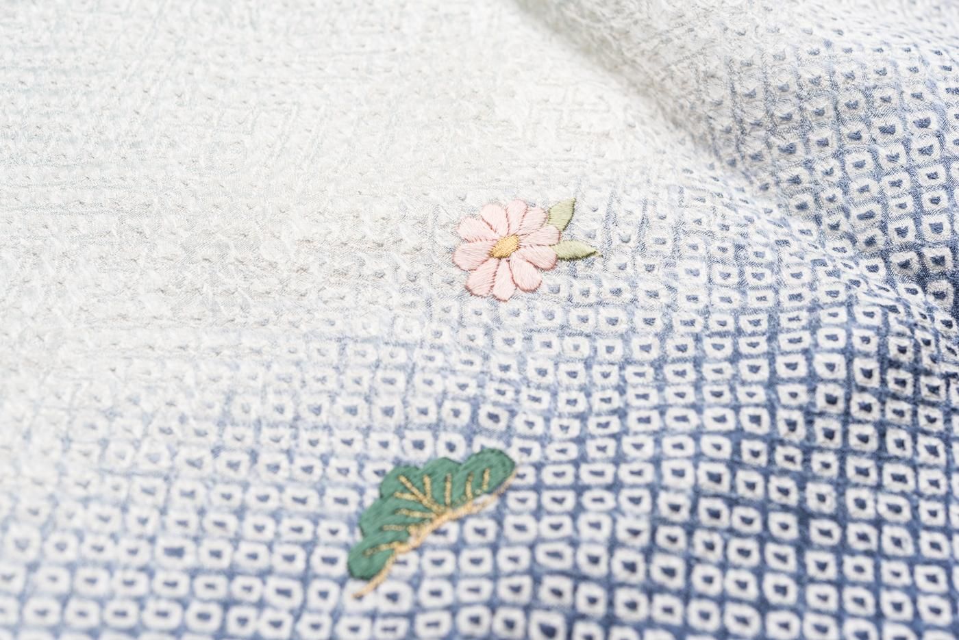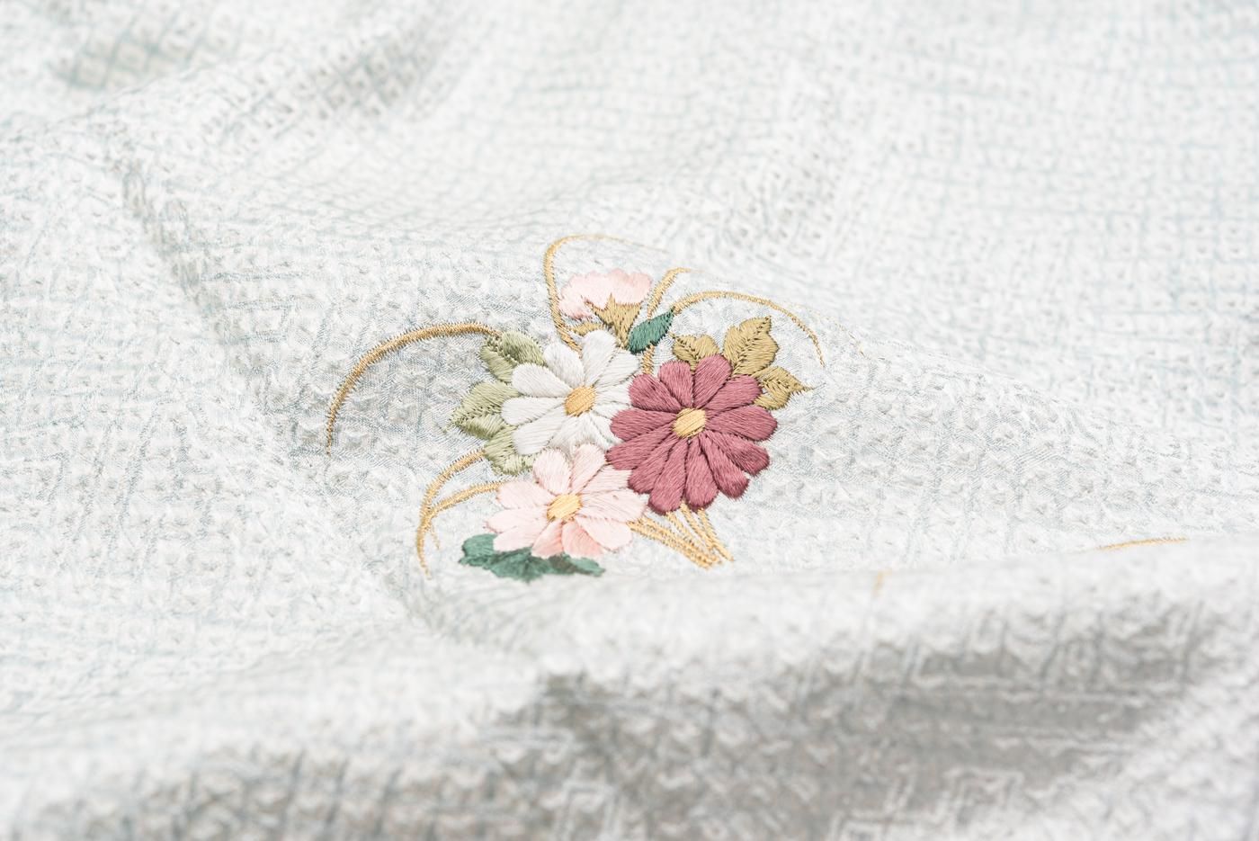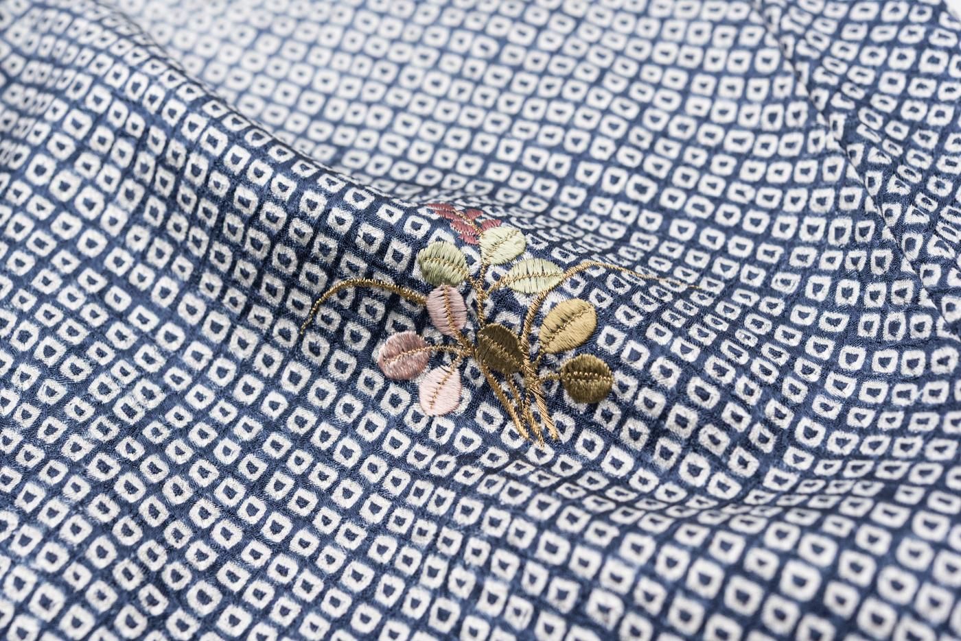 小さな菊や松のポイント刺繍が愛らしいアクセントになっています。