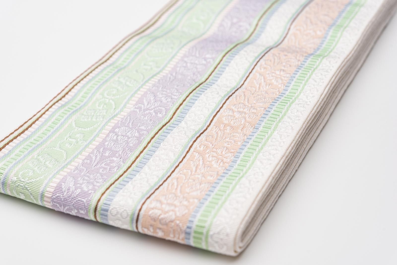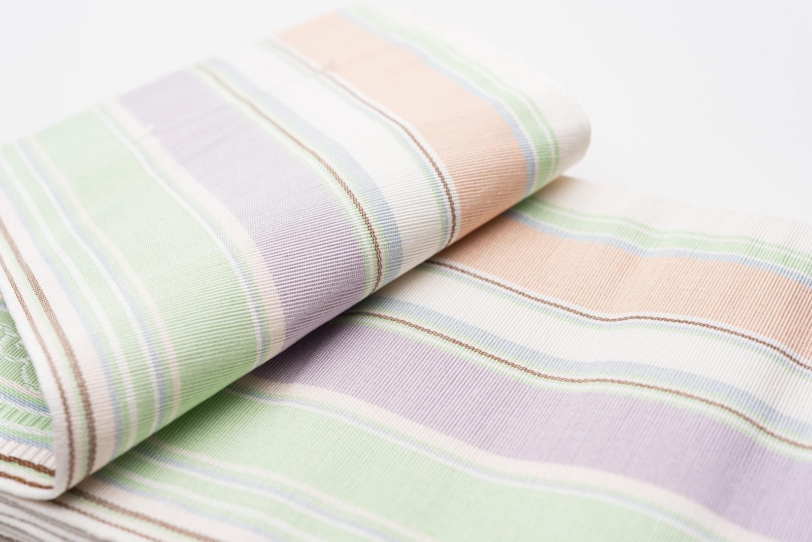 とても軽やかな博多織の半幅帯は、一年を通してお使いいただけます。