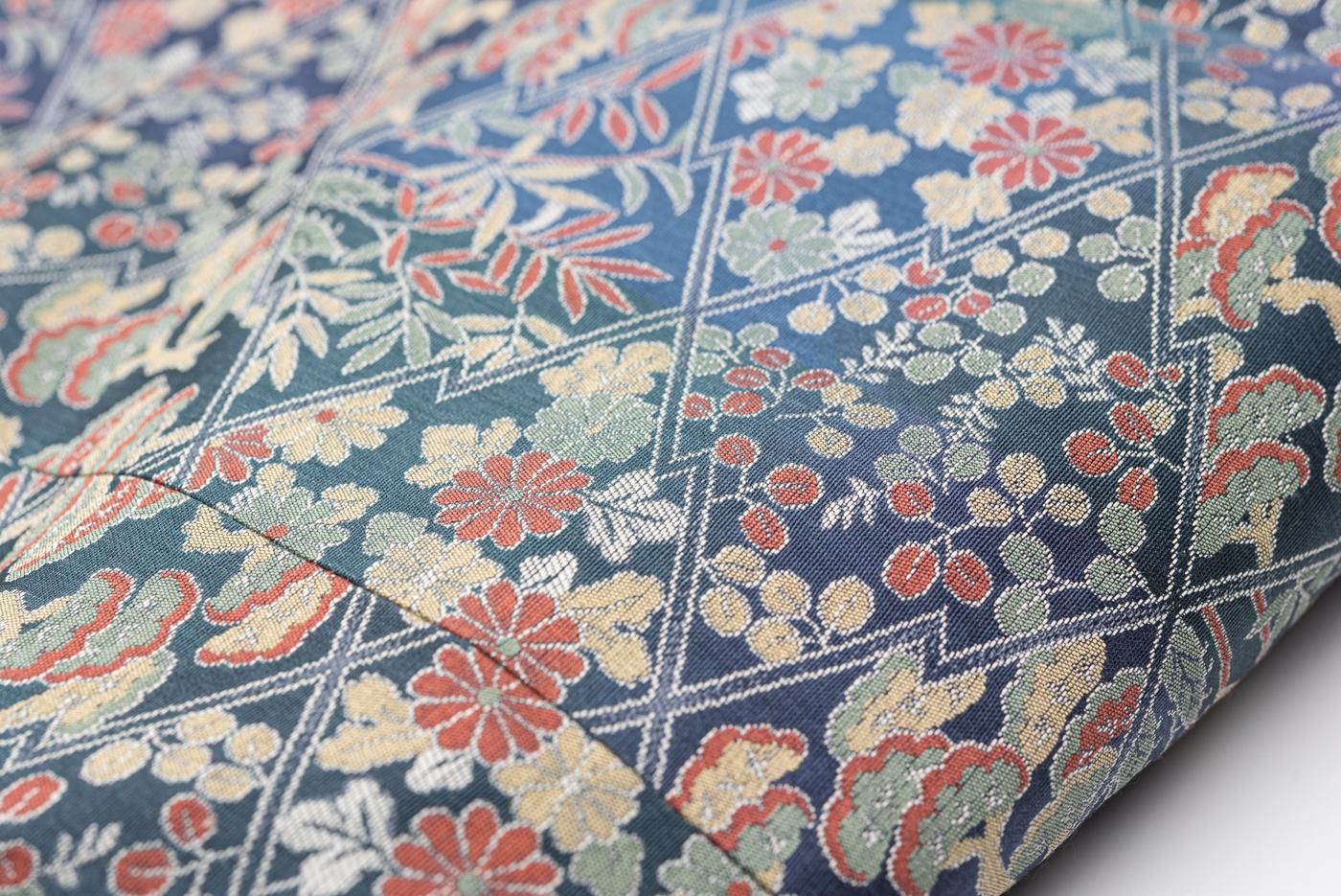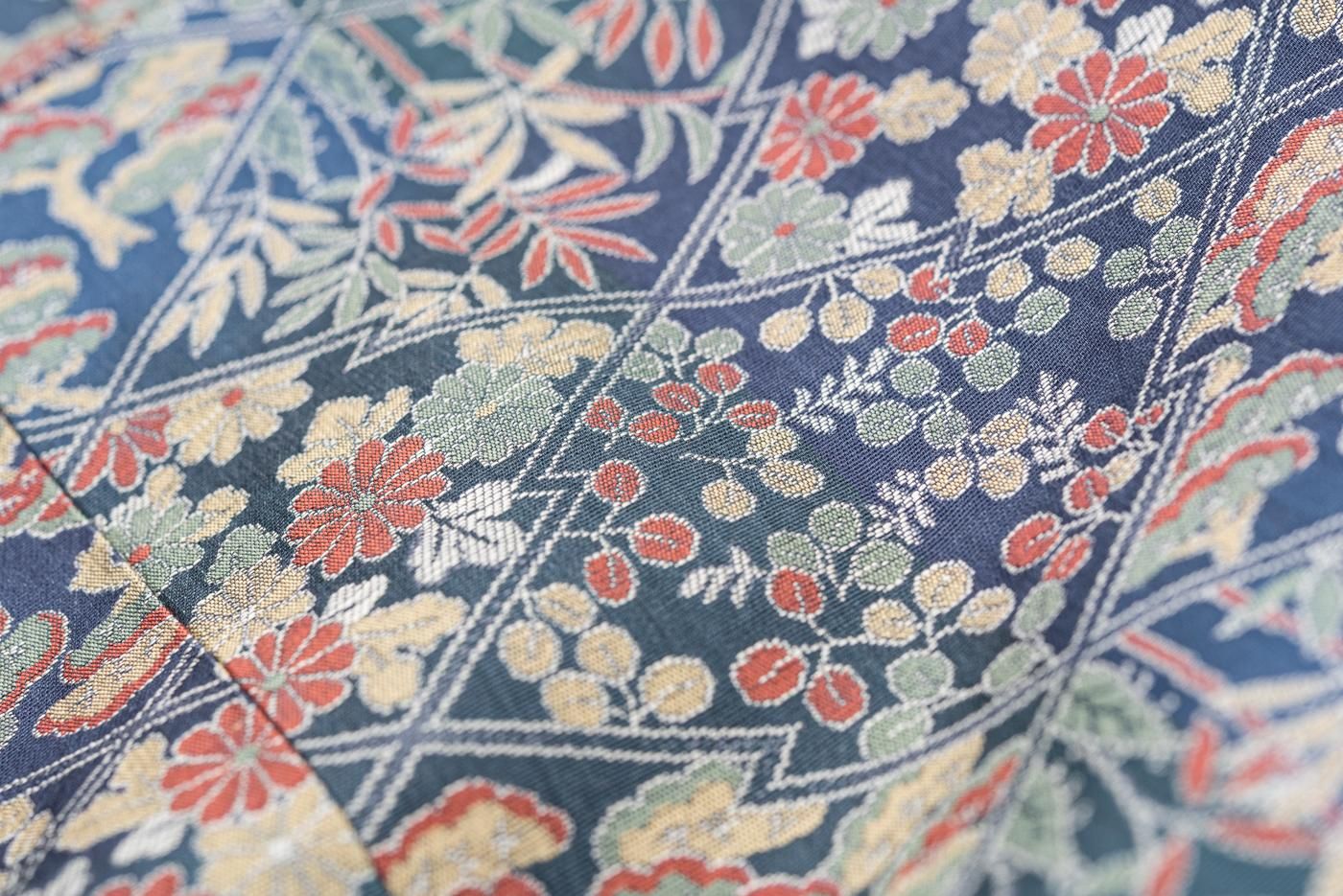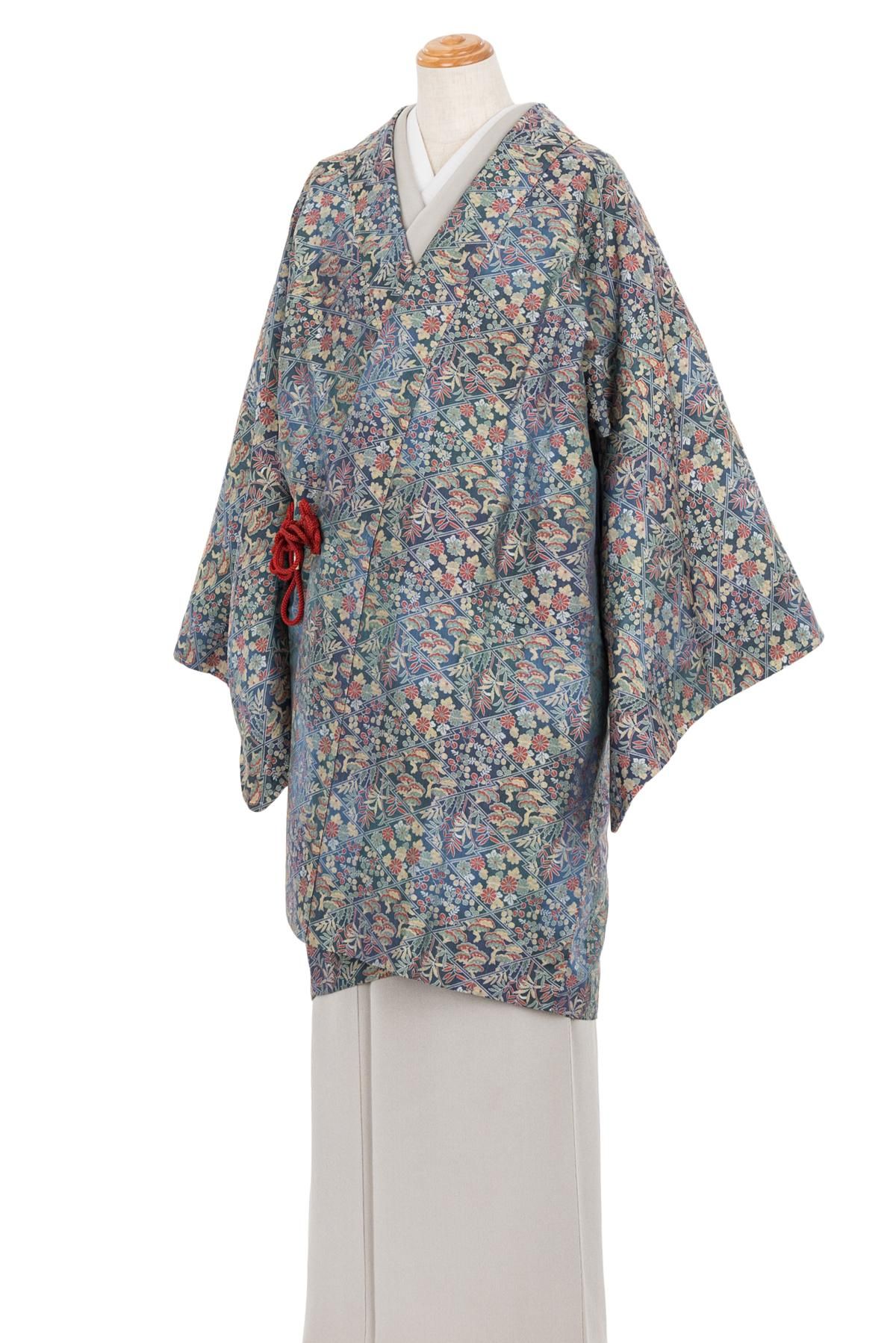 松皮菱に菊、萩、松などを織り出したロング丈の道中着です。