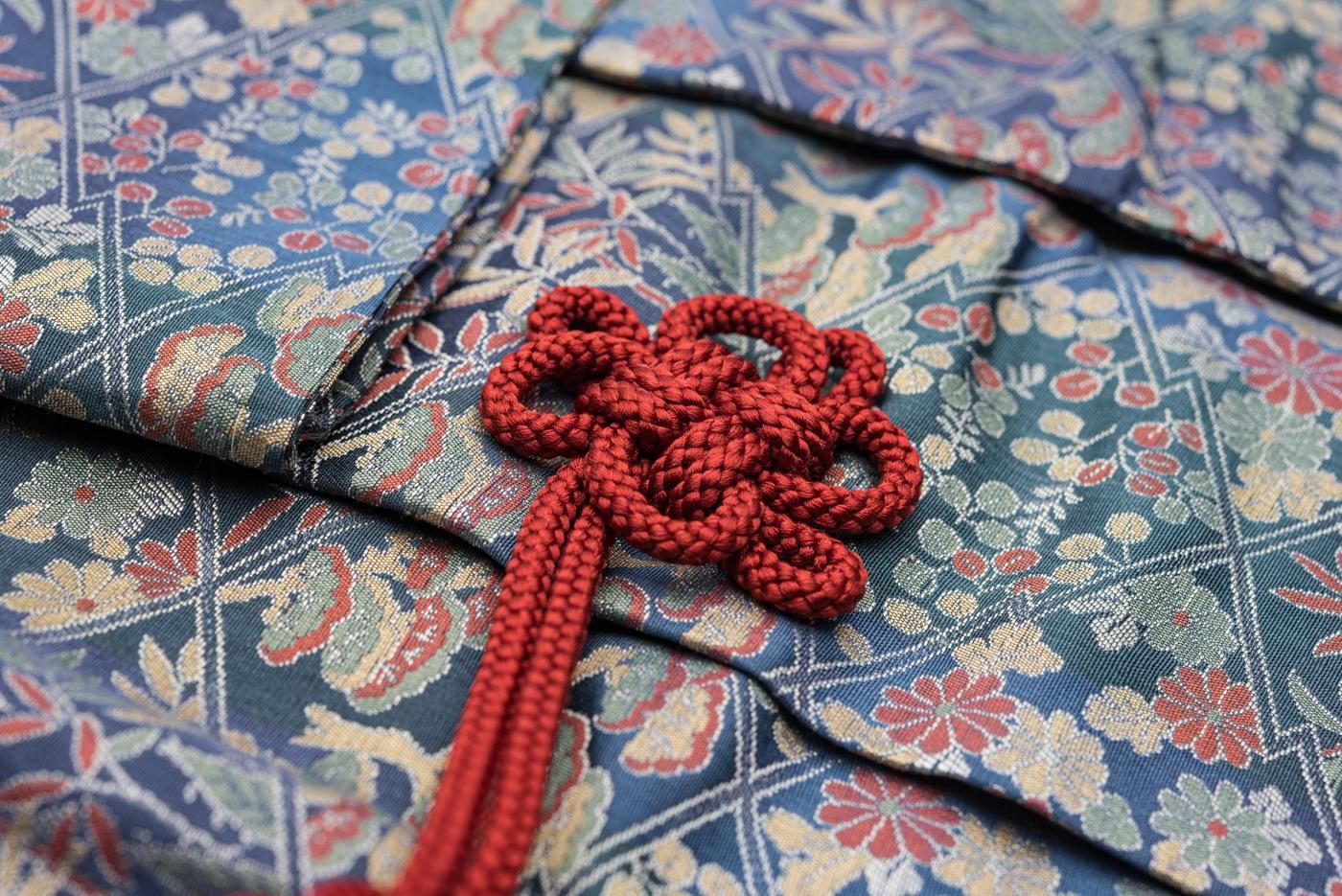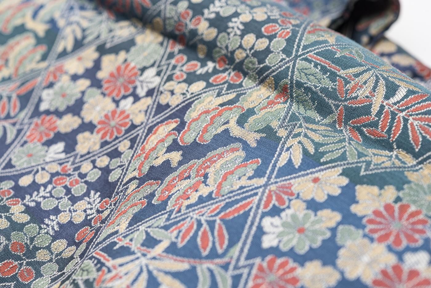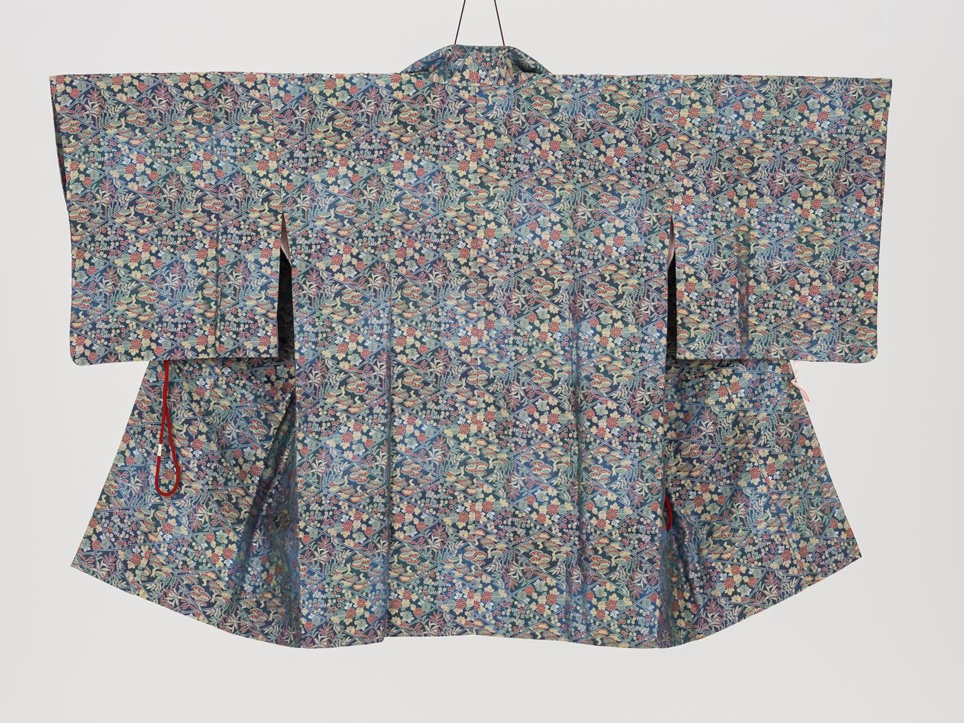 松皮菱に菊、萩、松などを織り出したロング丈の道中着です。