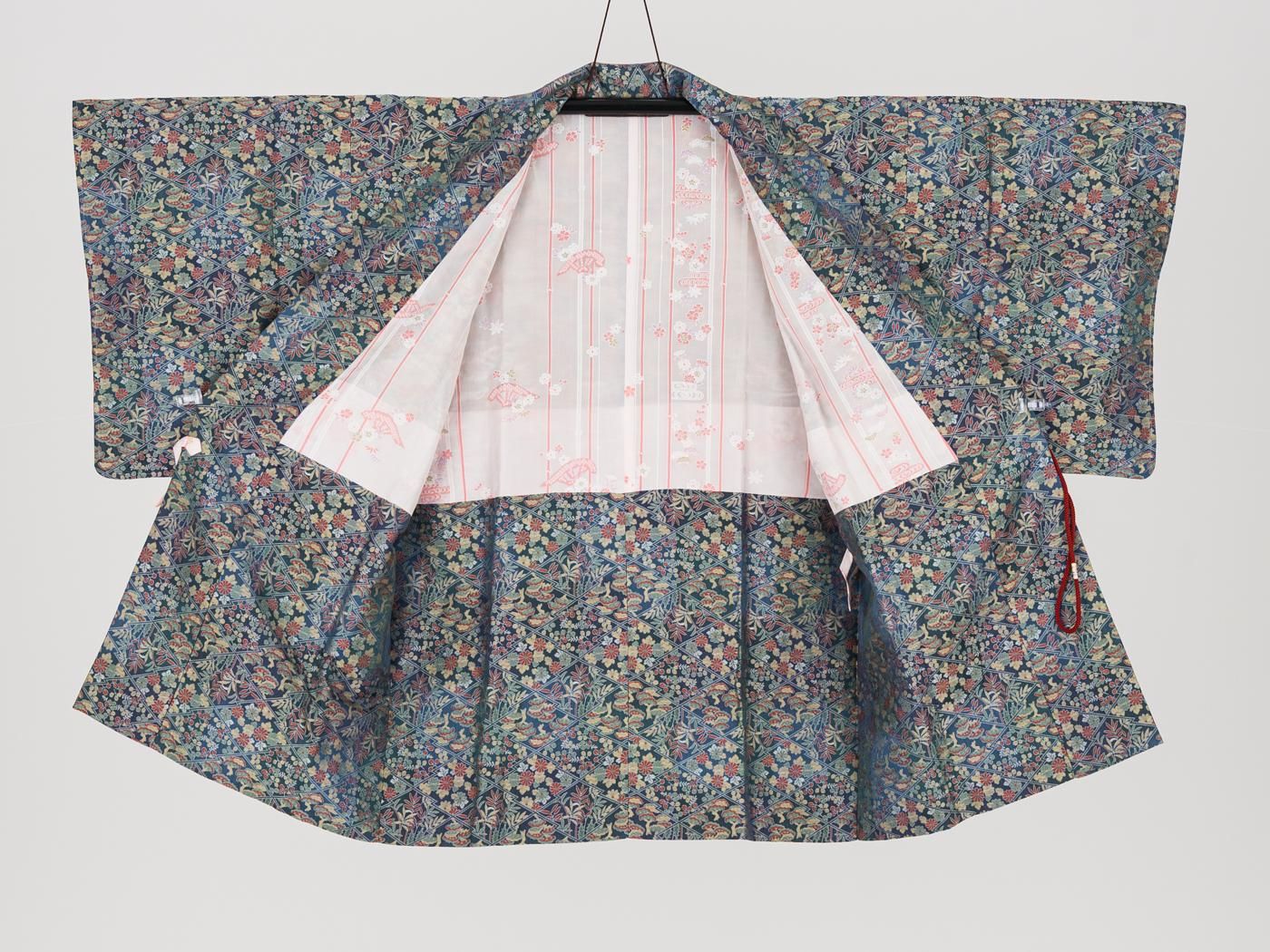ロング丈道中着 籠目に宝尽くし 草花模様など 裄長
