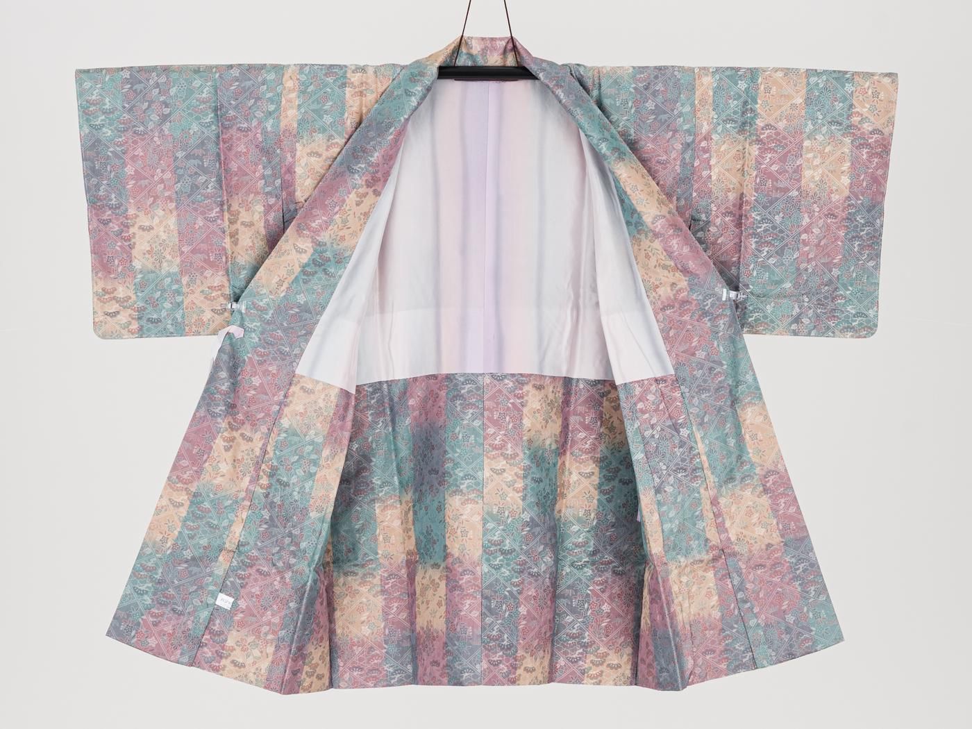 檜垣に菊、松、桔梗などを織り出したロング丈の道中着です。