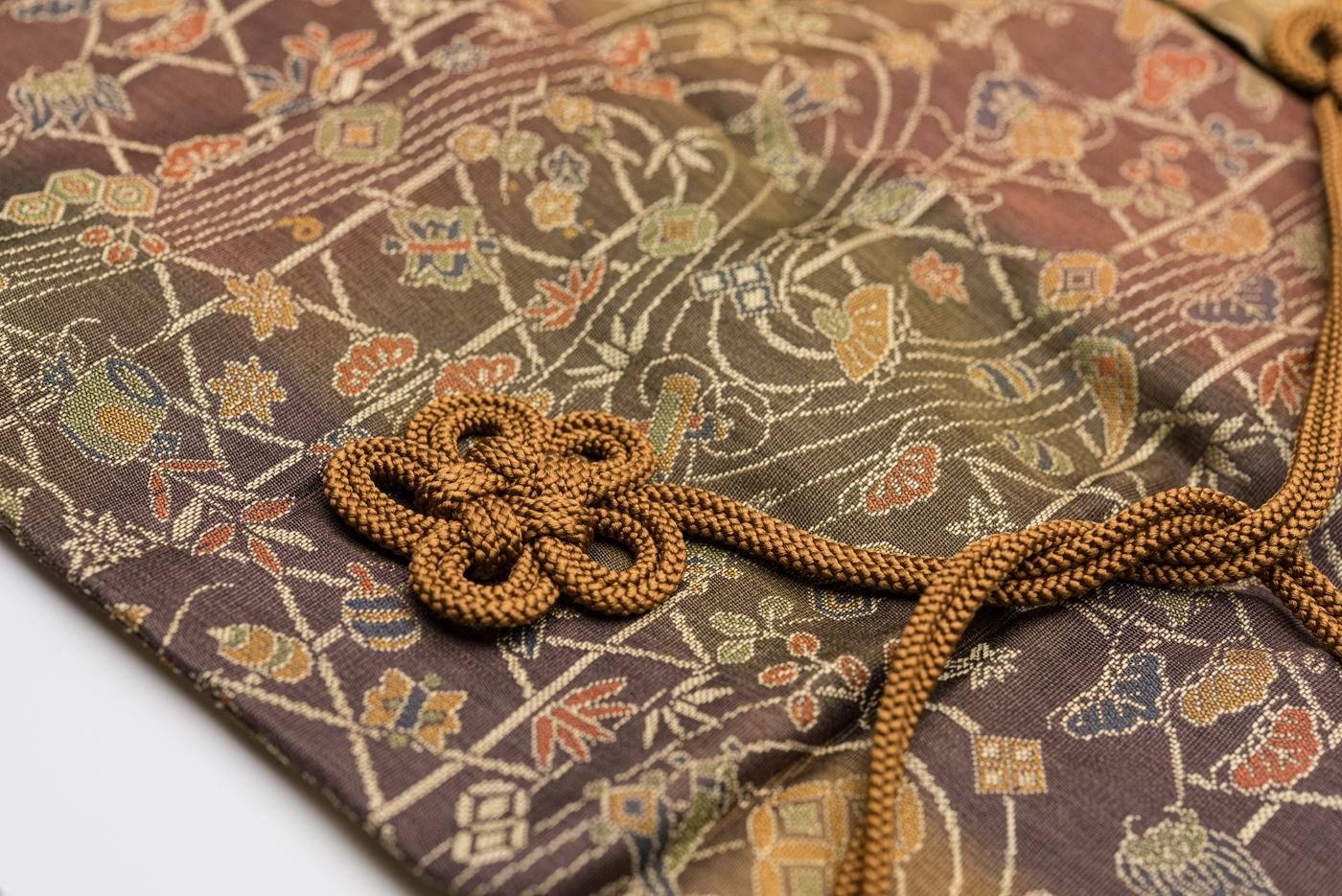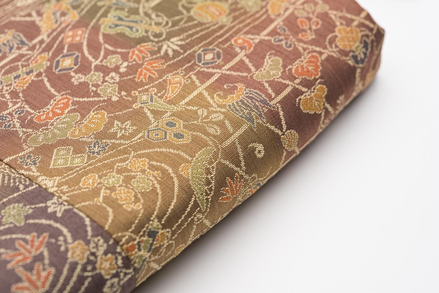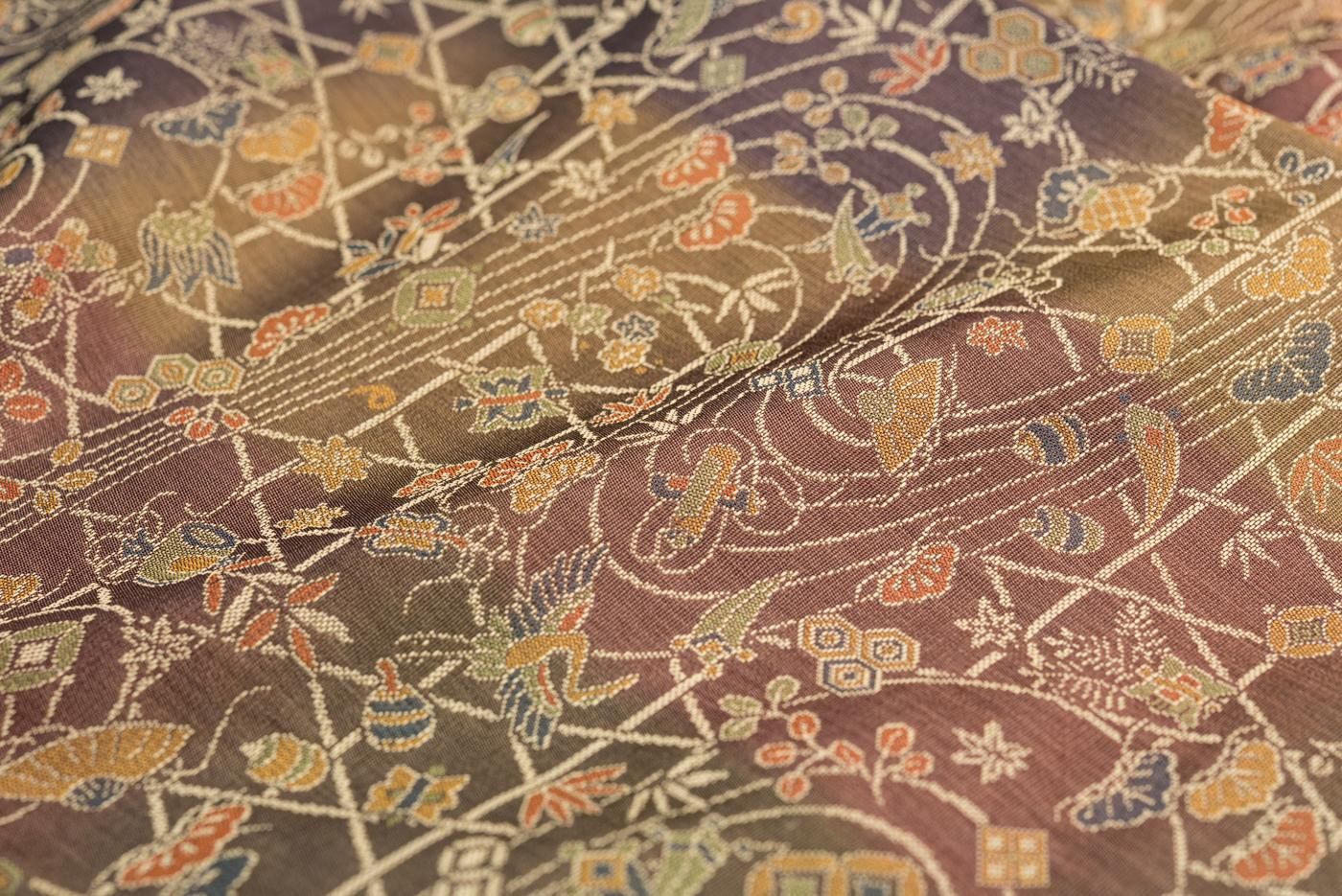 宝尽くし以外にも鶴や松などの吉兆柄が所狭しと織り出されており大変華やかな雰囲気です。