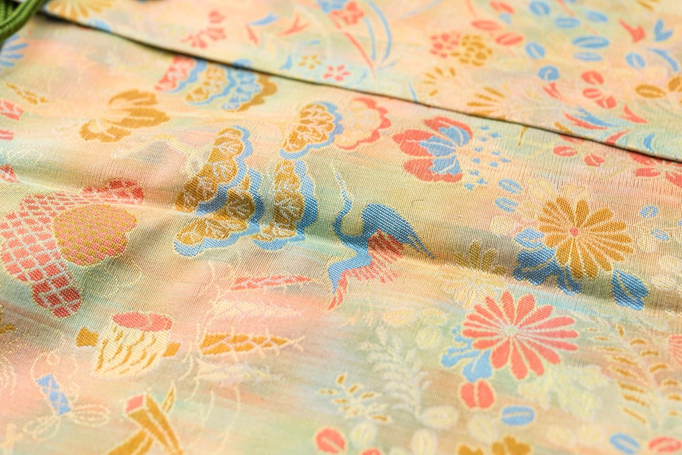 ロング丈道中着 籠目に宝尽くし 草花模様など 裄長