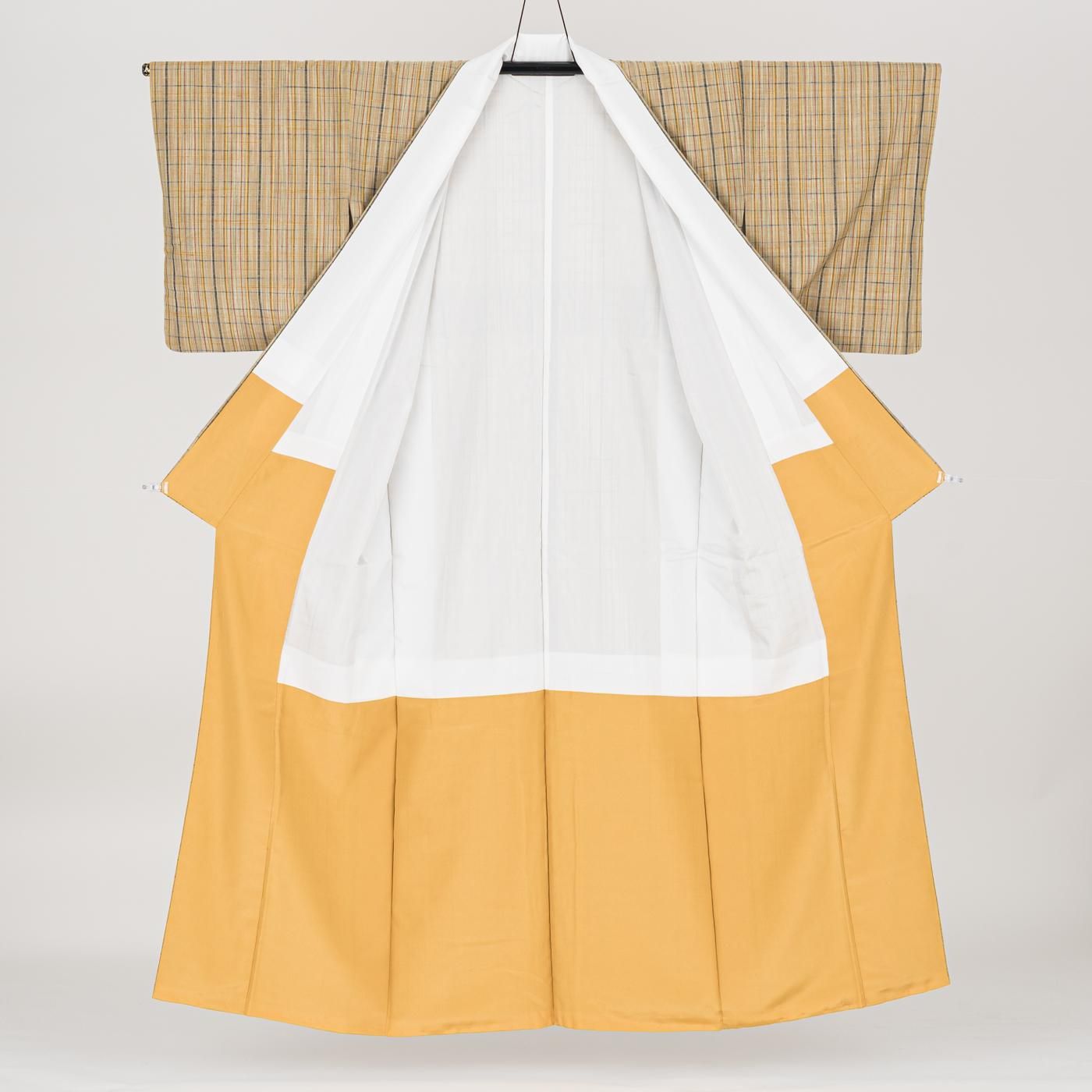 ふんわりとした手触りの真綿紬に素朴で優しい格子柄が良く似合います。