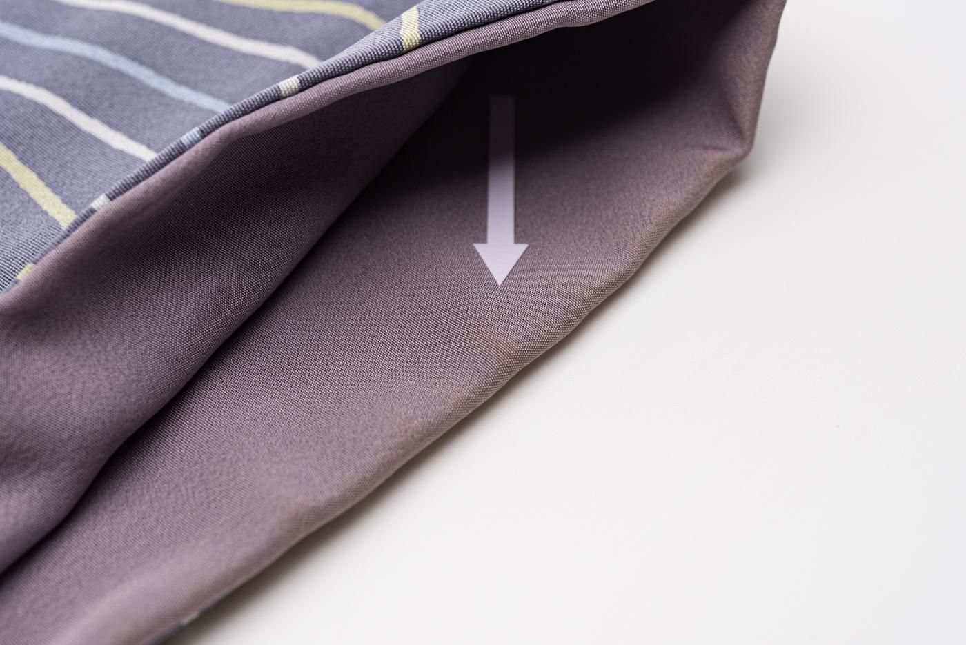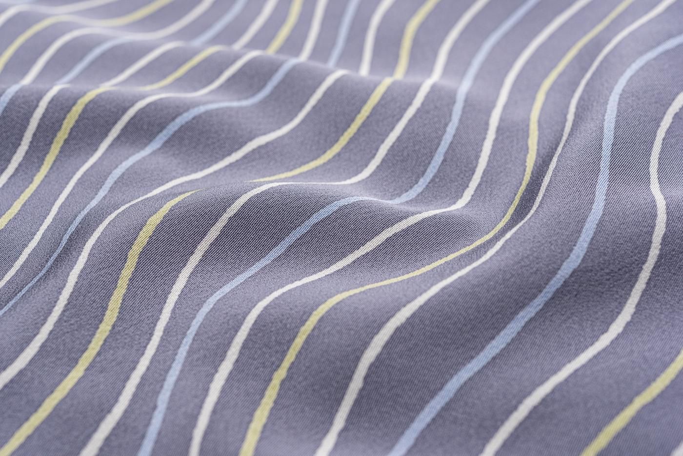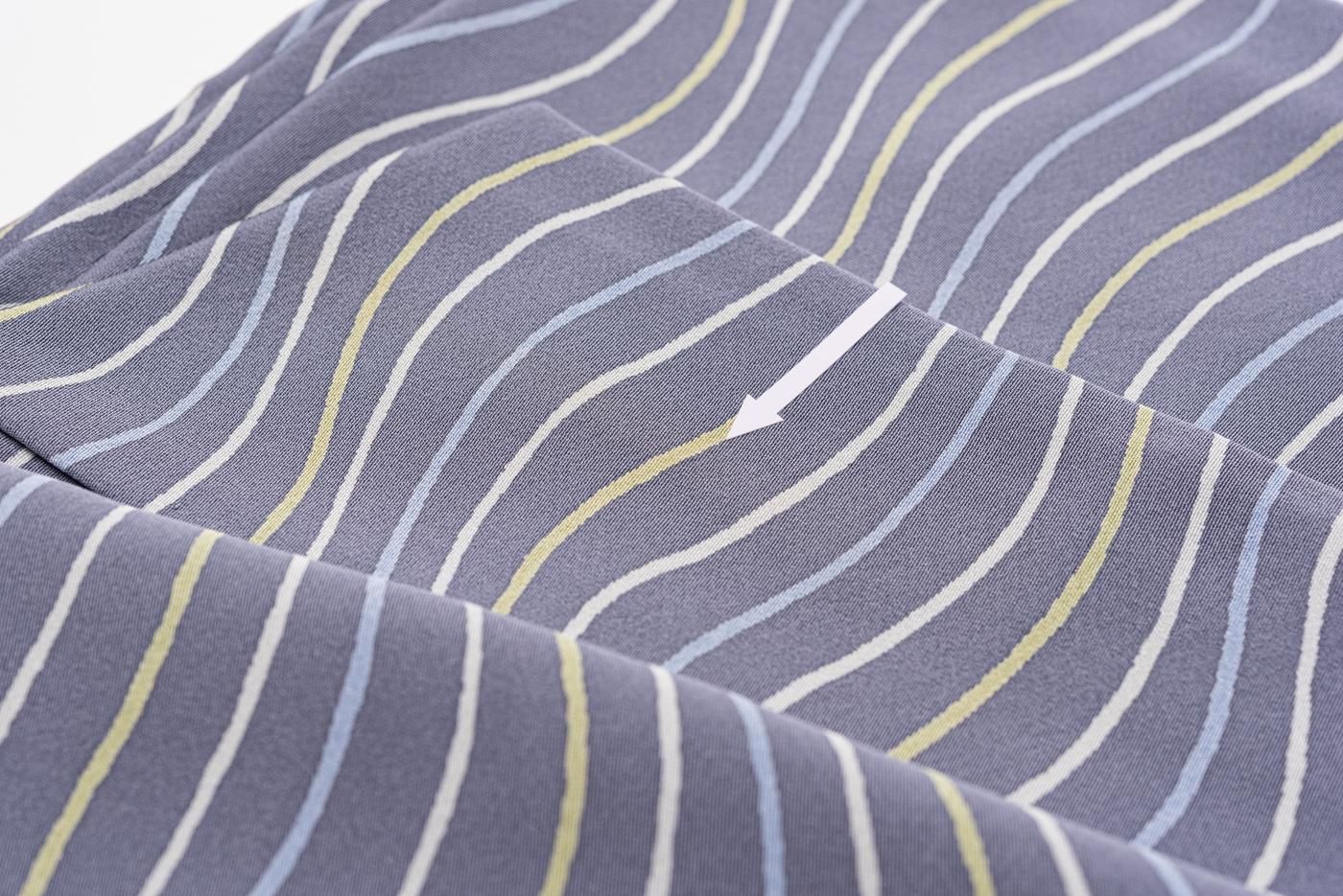 青紫色の地に波線模様を染めた付け下げの着物です。