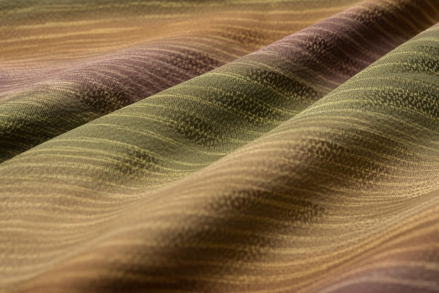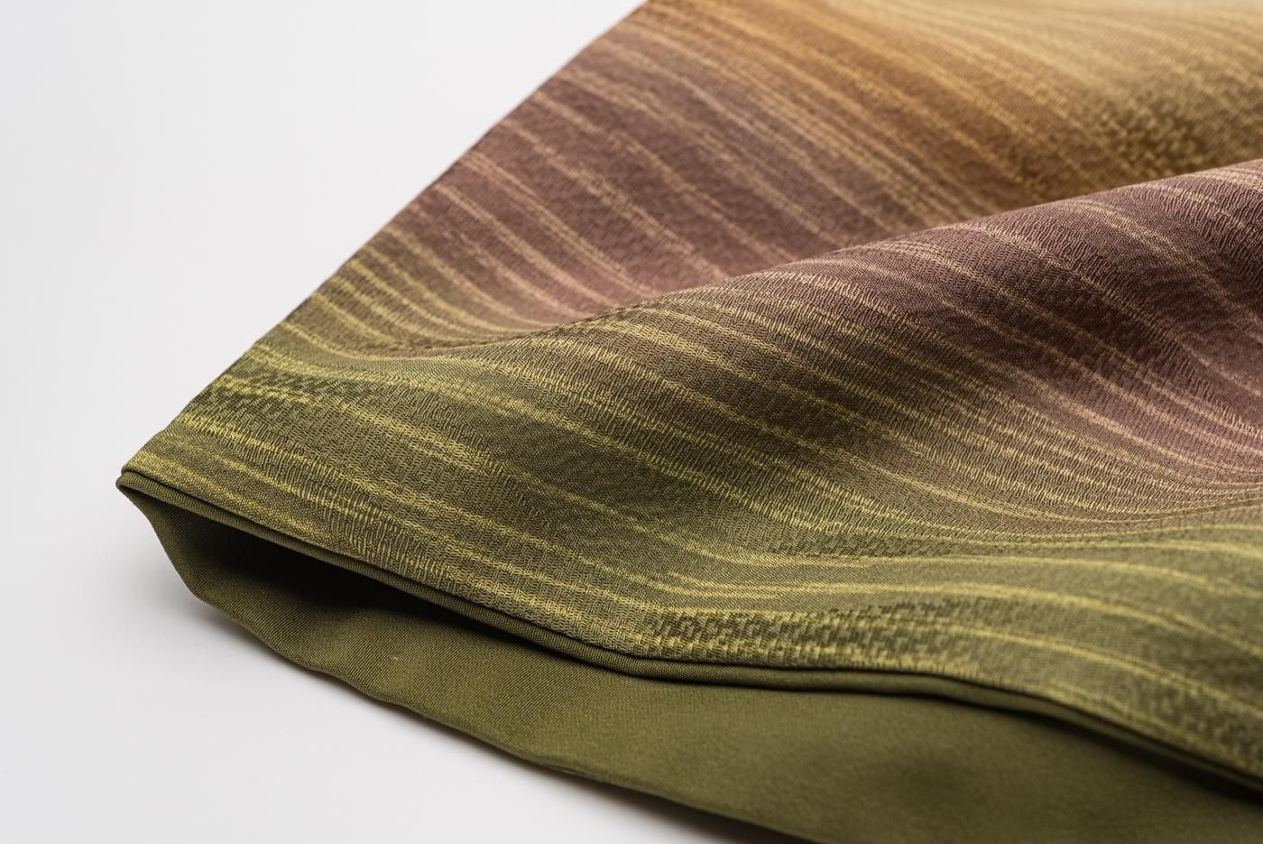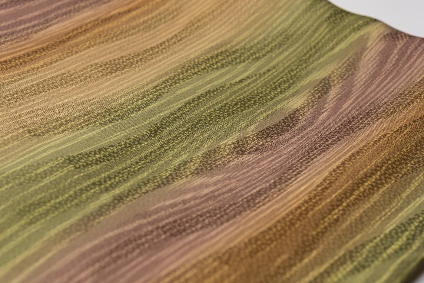 暈し縞に杢目柄を重ねた小紋の着物です。