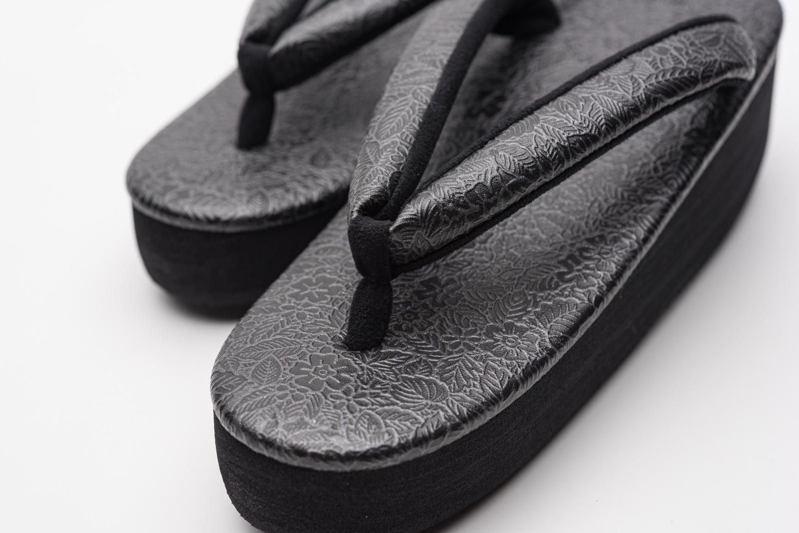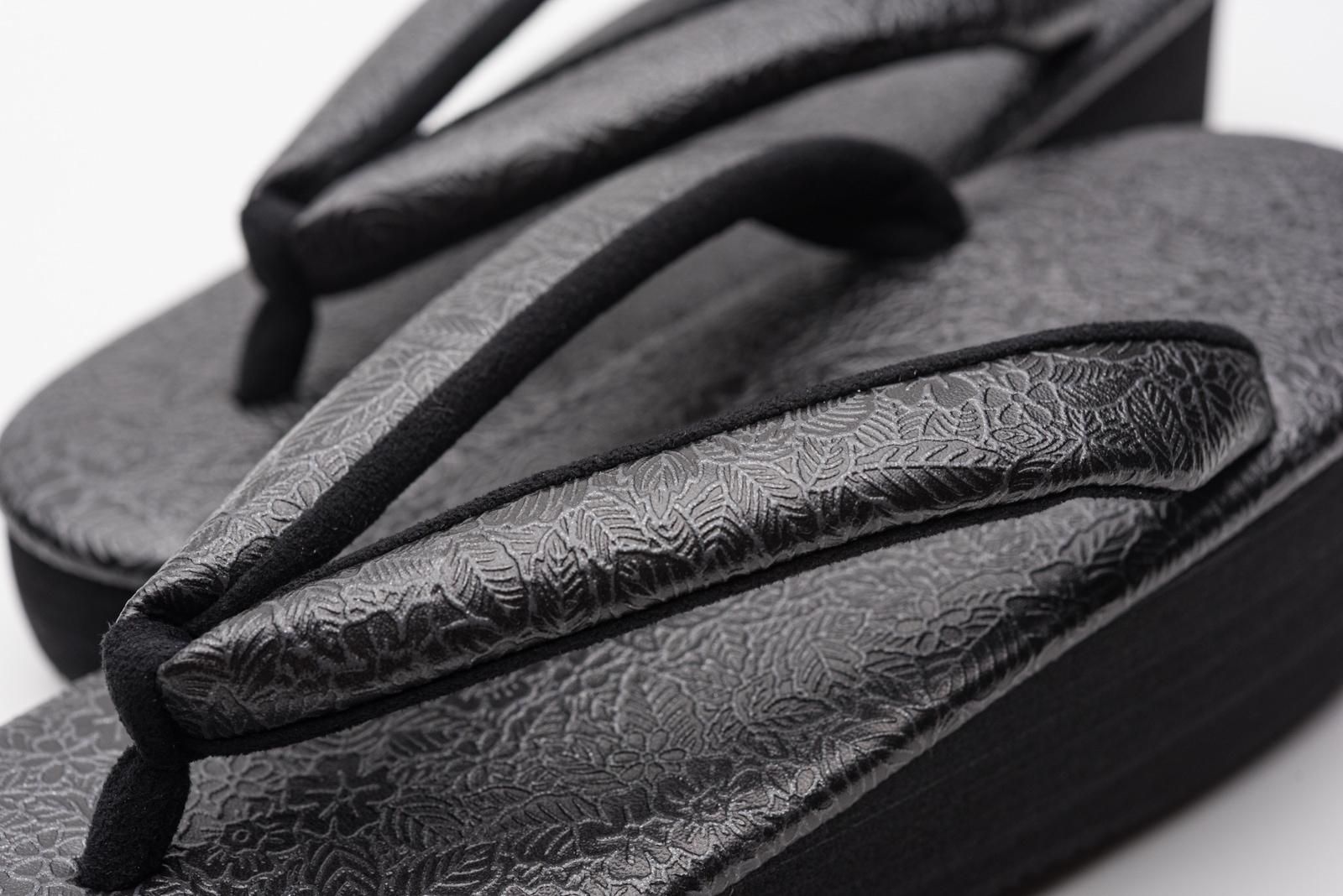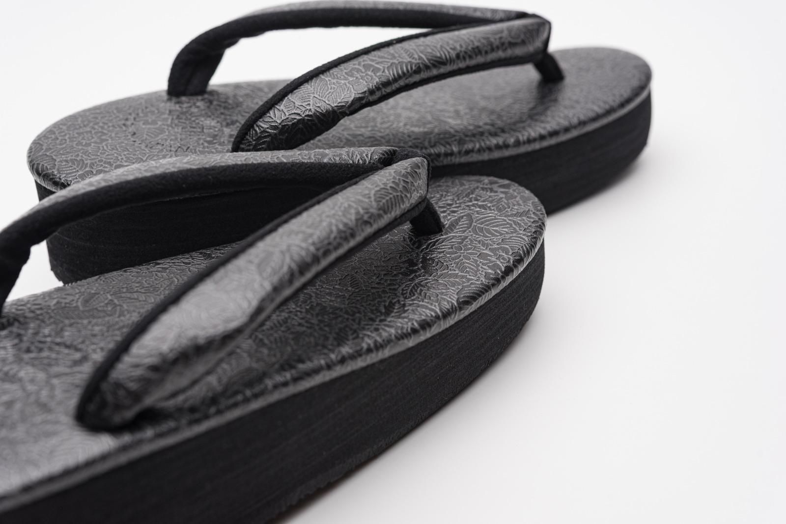 小さな花や葉っぱの柄を緻密に配したカフェ草履です。