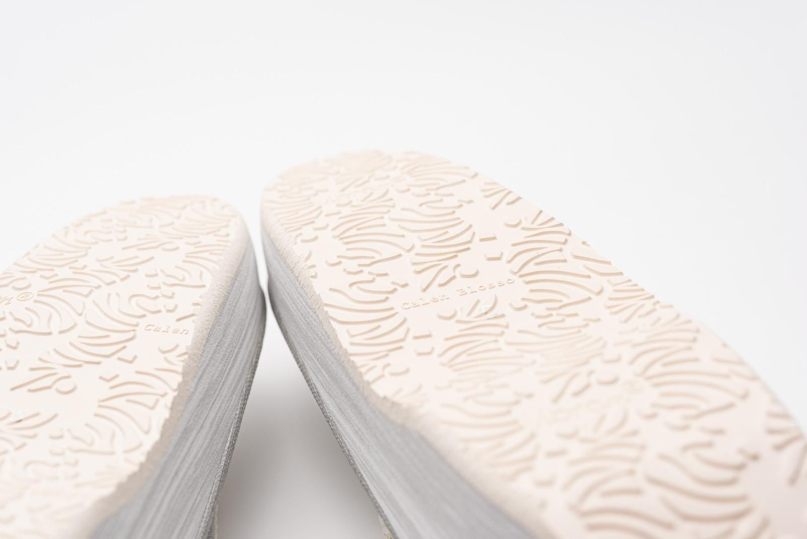 また濡れた路面を歩いた際に出来る限り水滴を跳ね上げないよう、踵が斜めにカットされております。