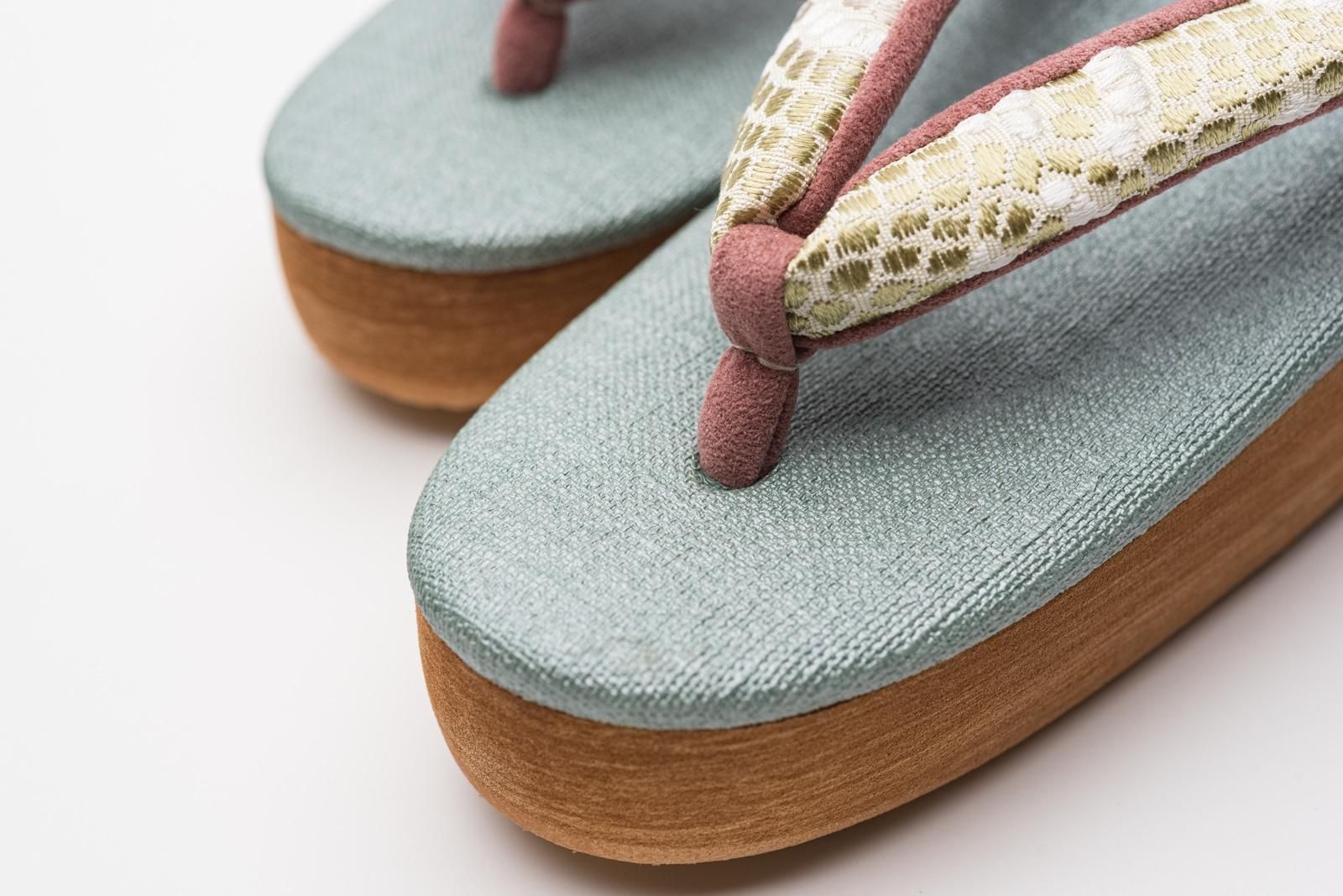 国の指定伝統工芸品でもある博多織の鼻緒を合わせたカフェぞうりです。