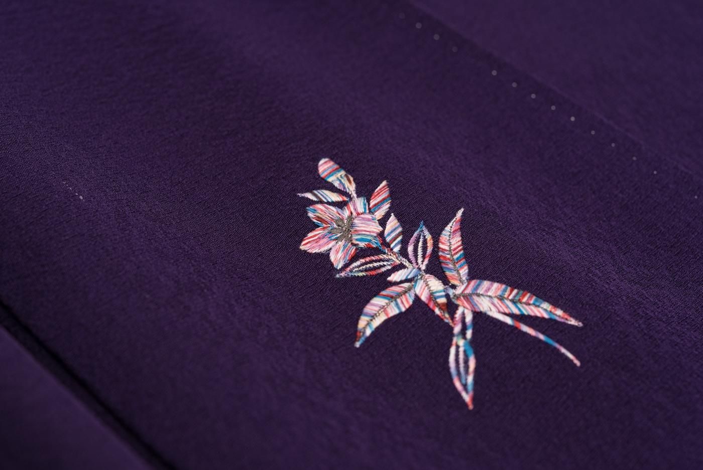 下前と下前側の八掛けに刺繍が施されたお洒落な仕立てです。