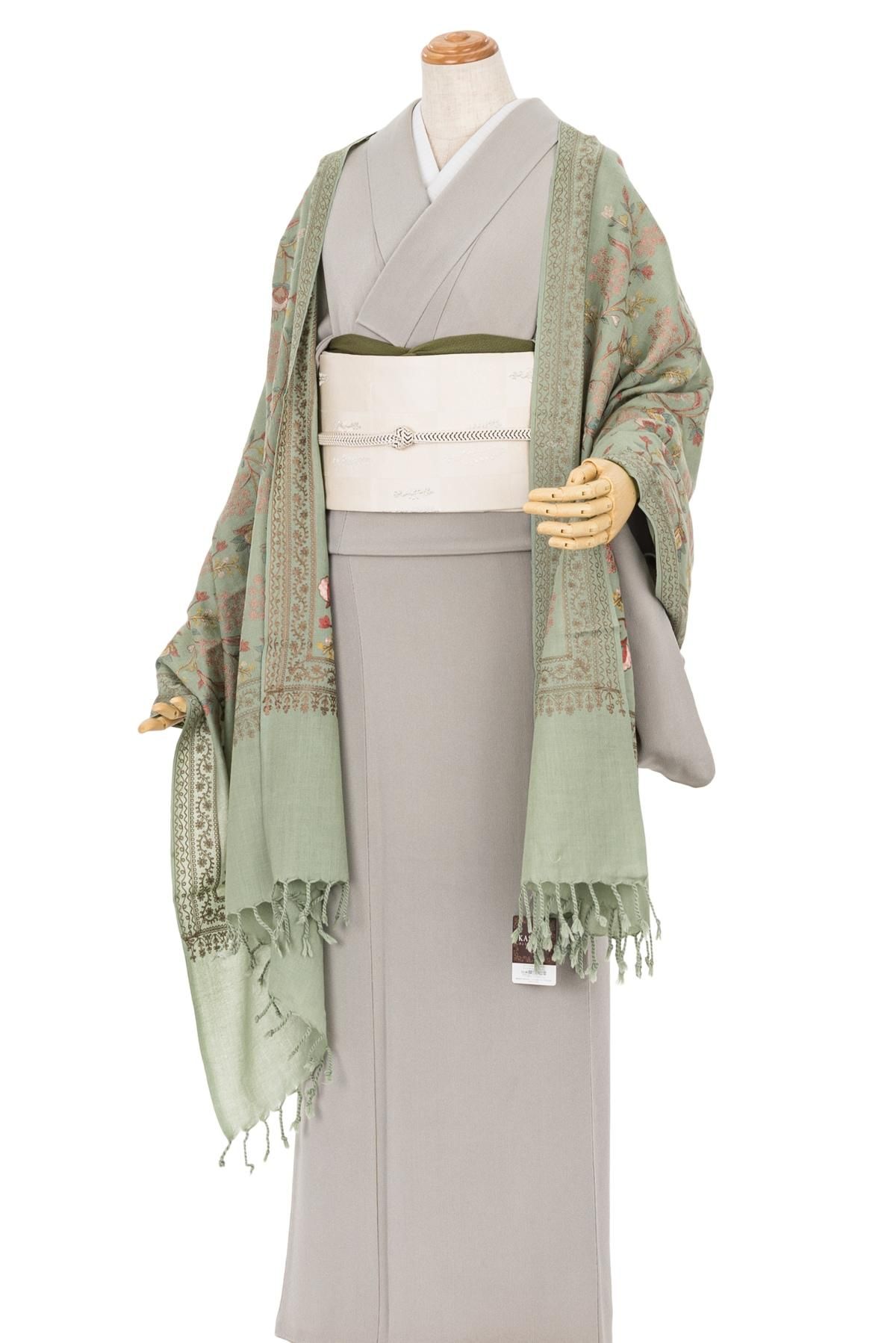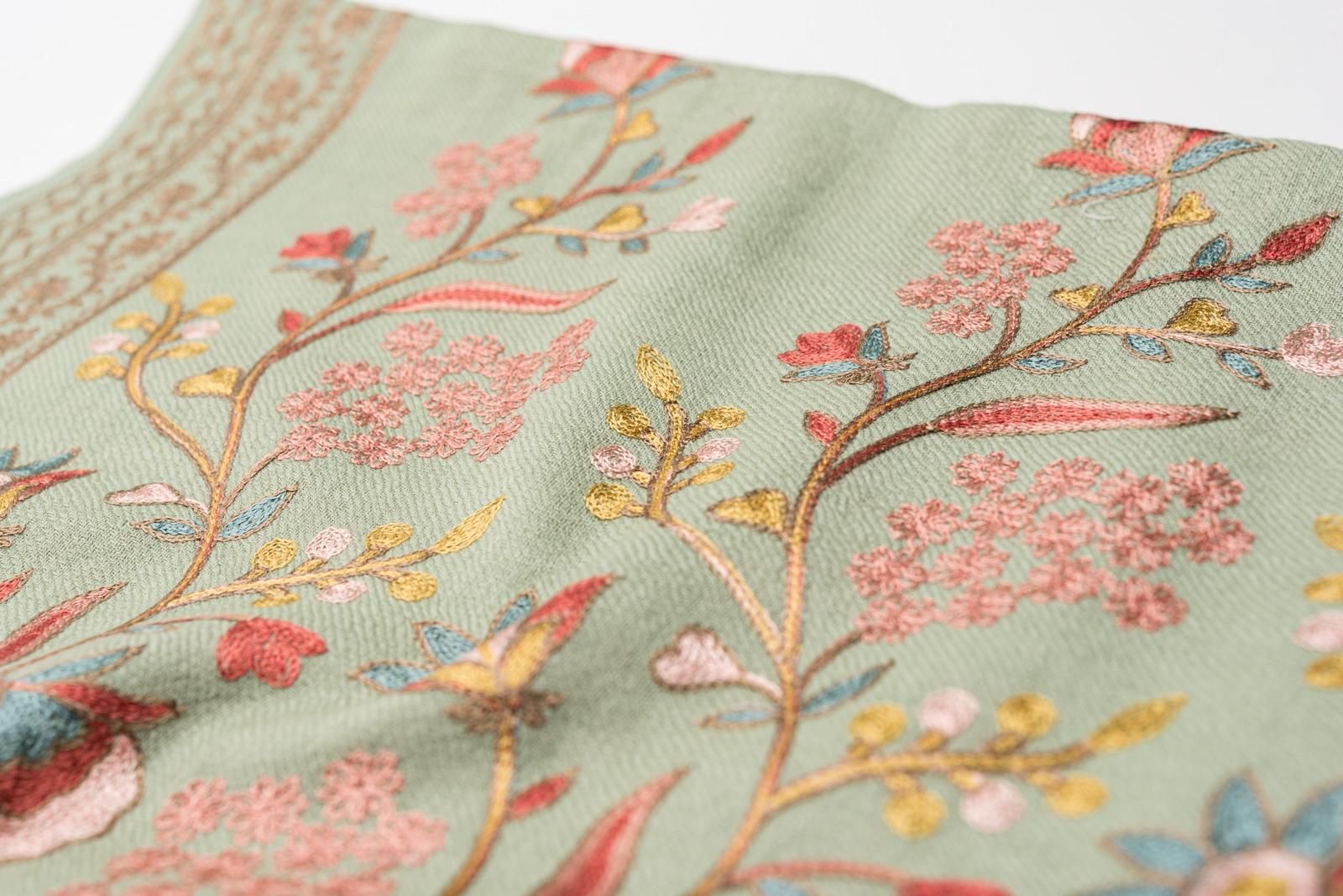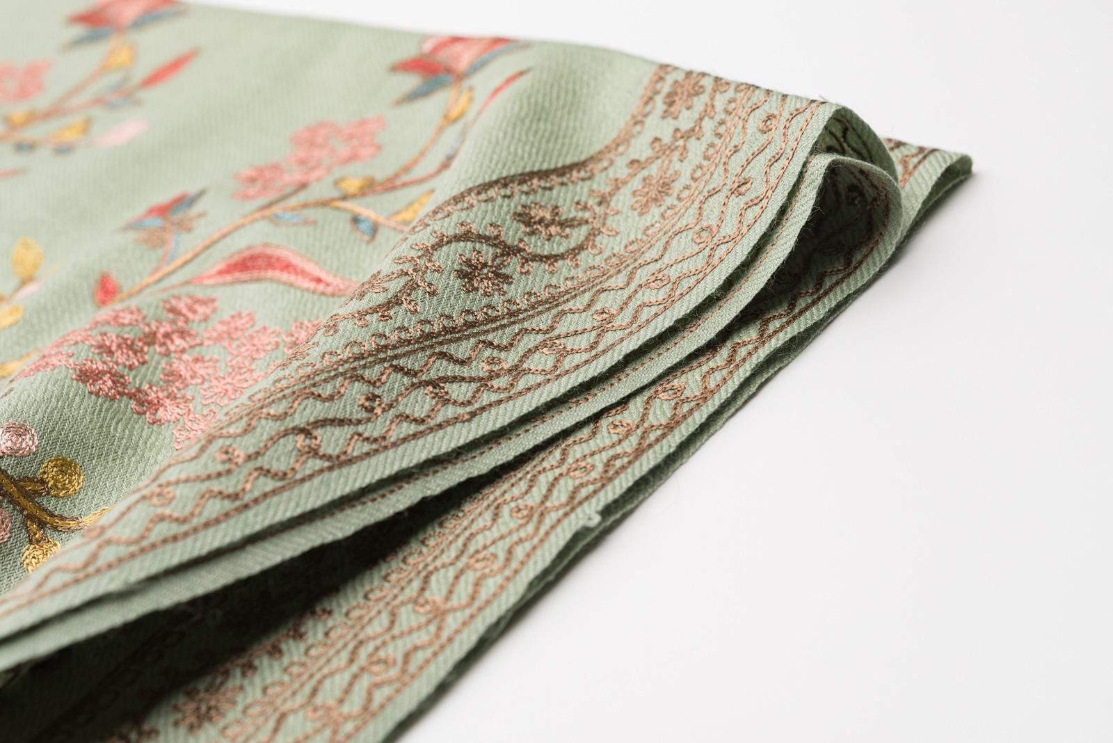 インド カシミール地方の伝統工芸であるカシミール刺繍を施した大判のストールです。