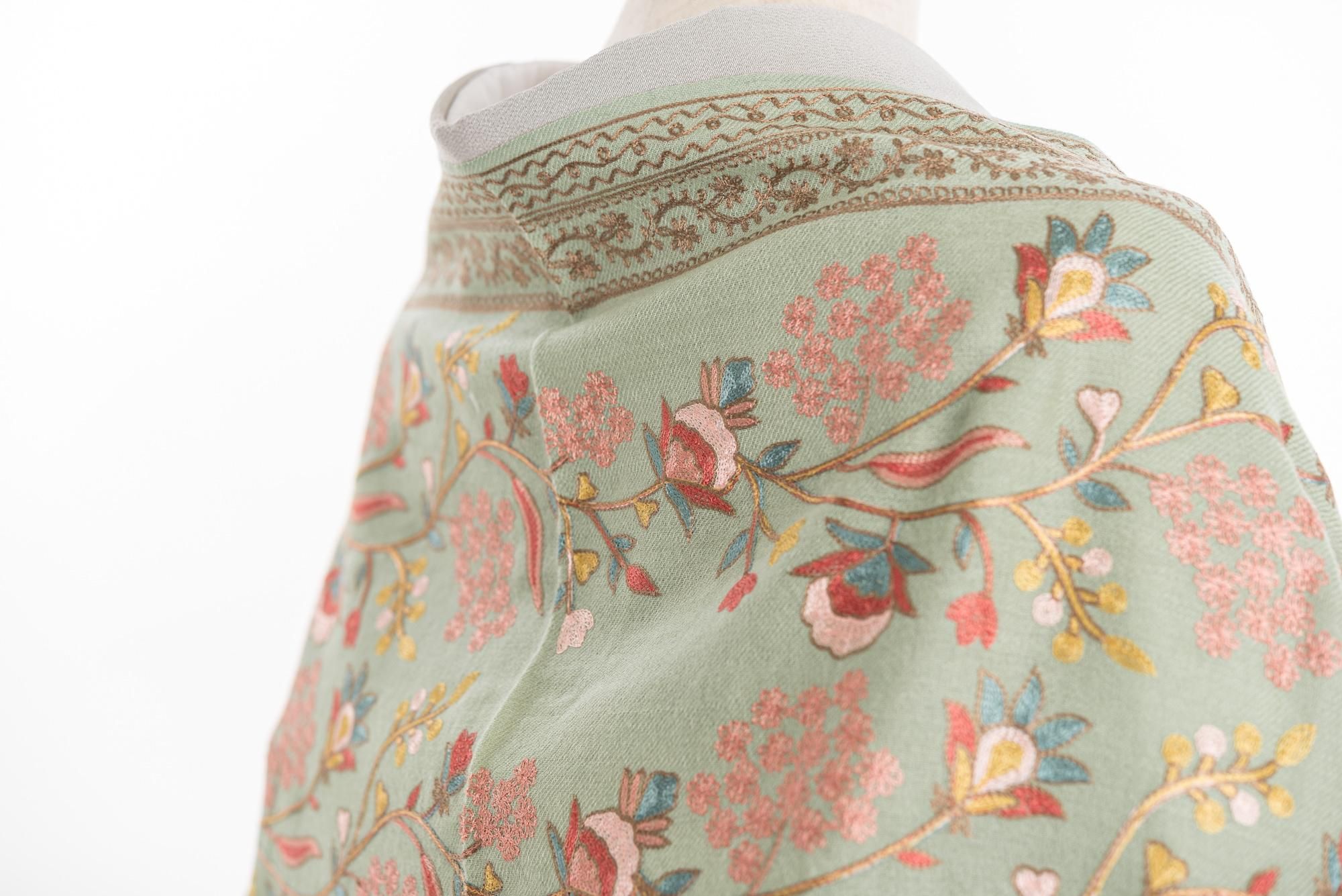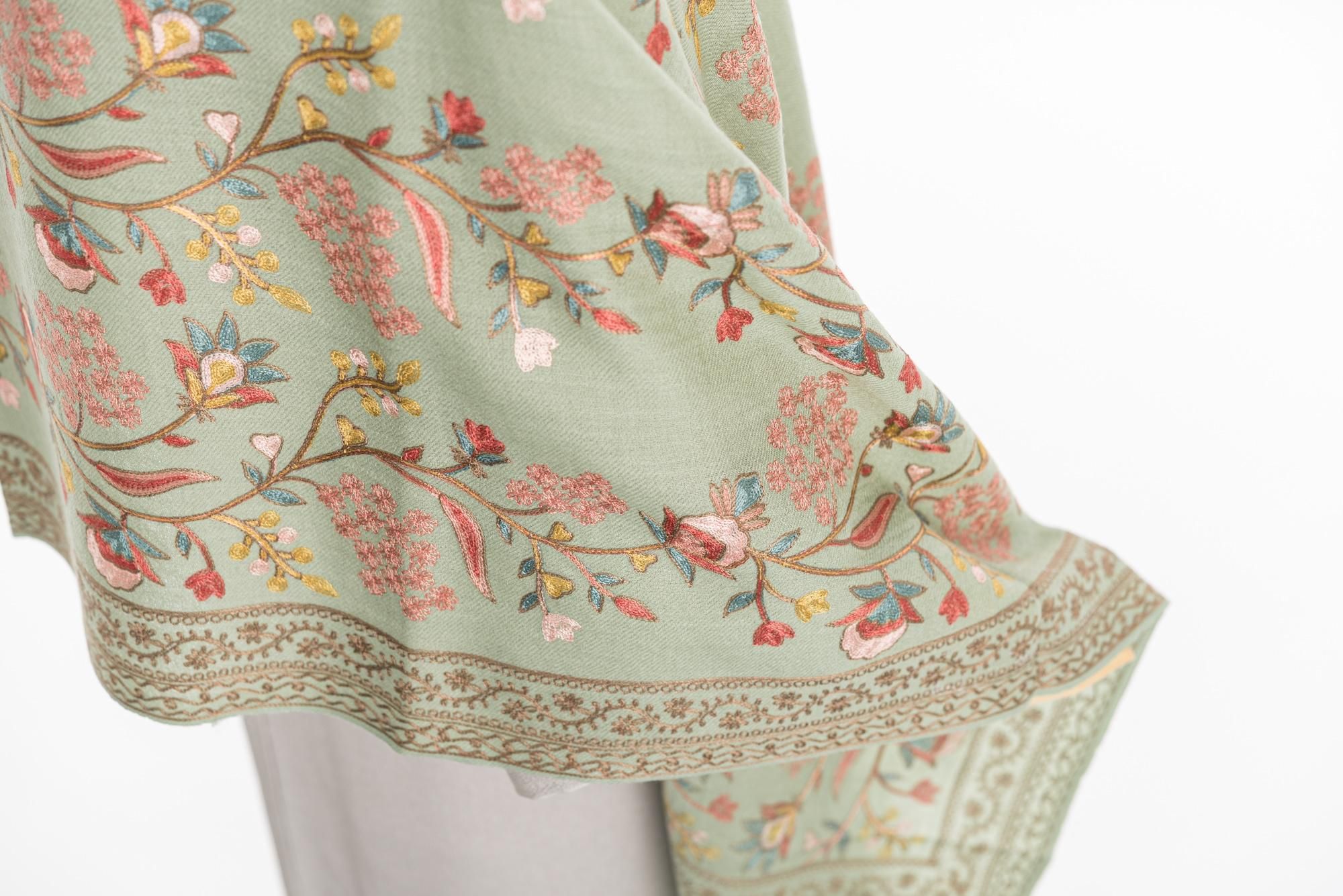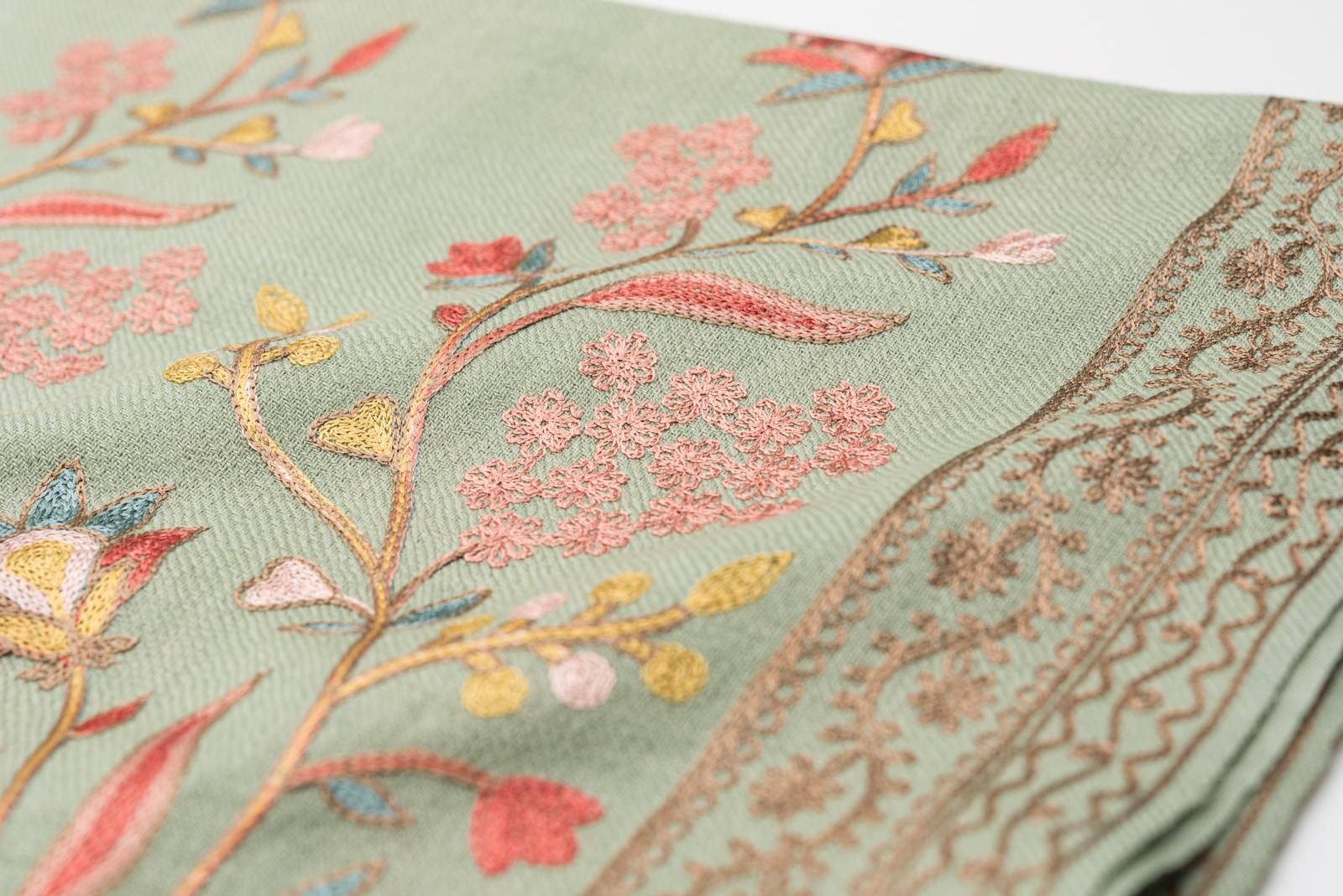 インド カシミール地方の伝統工芸であるカシミール刺繍を施した大判のストールです。
