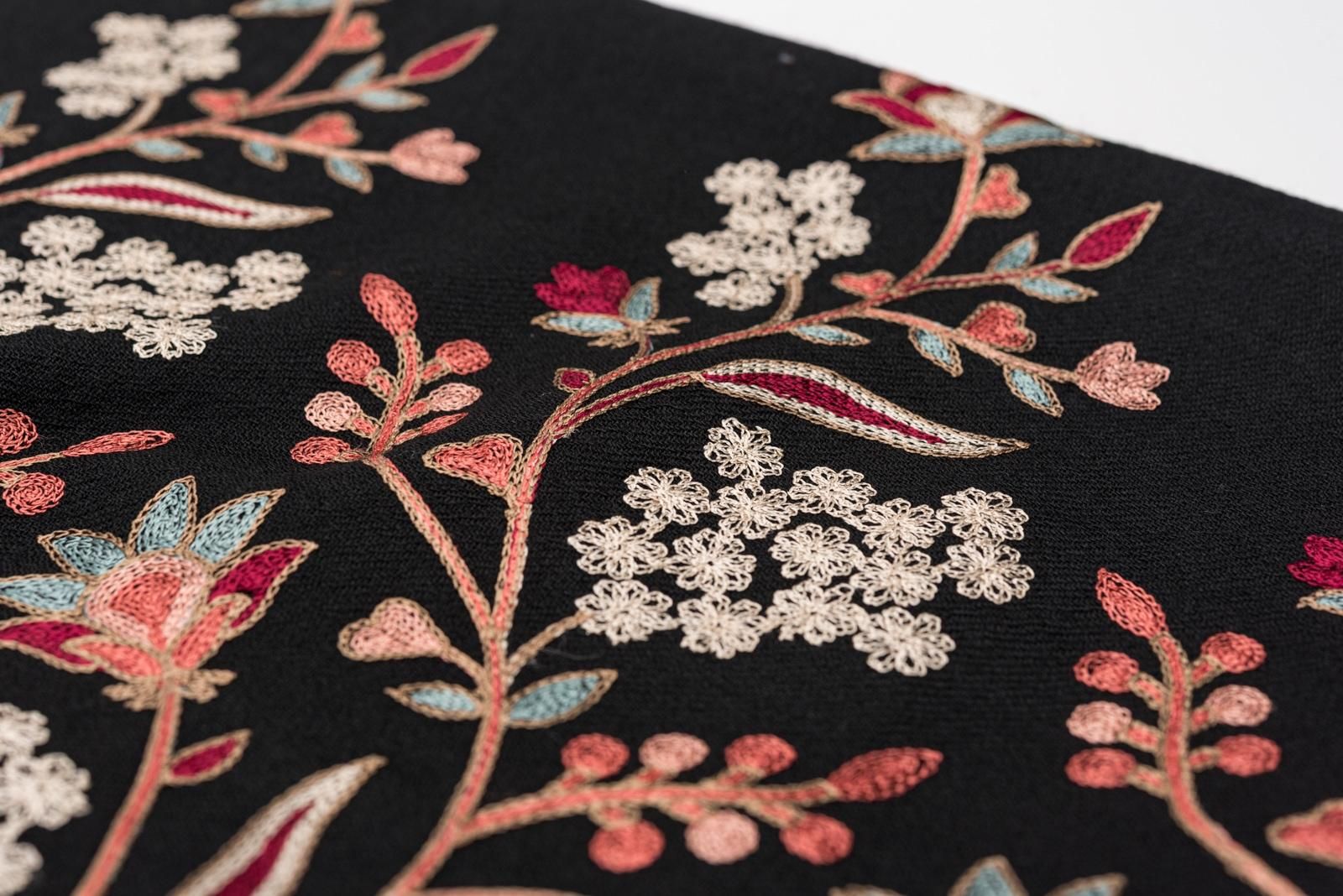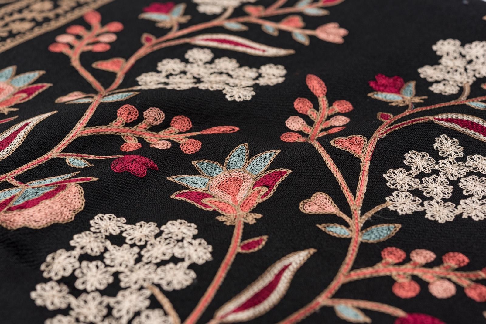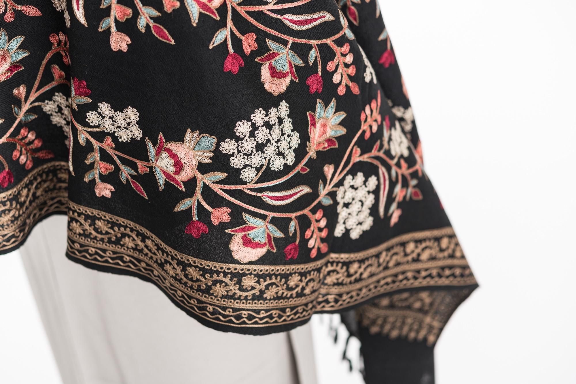 ウール100%大判ショール カシミール刺繍 黒