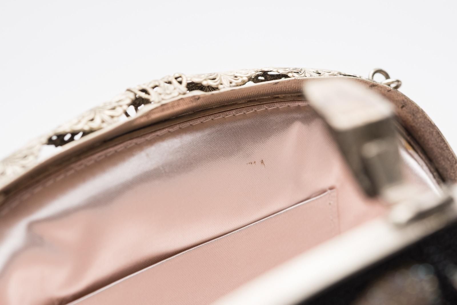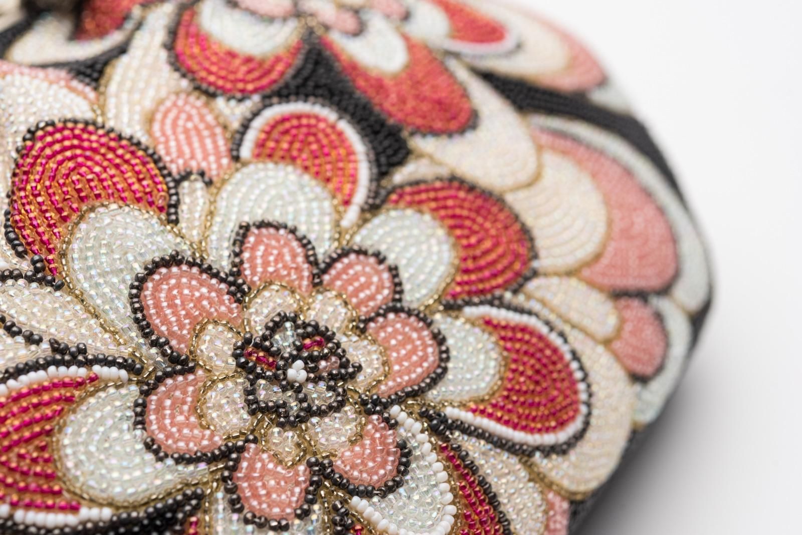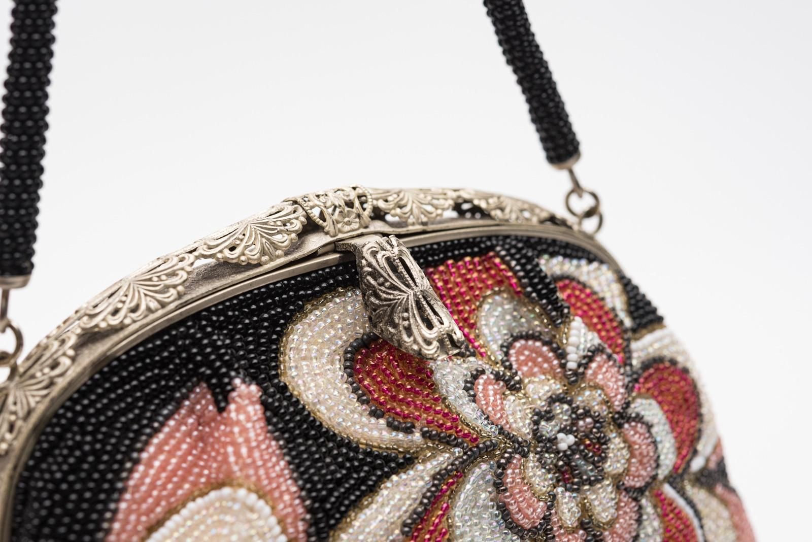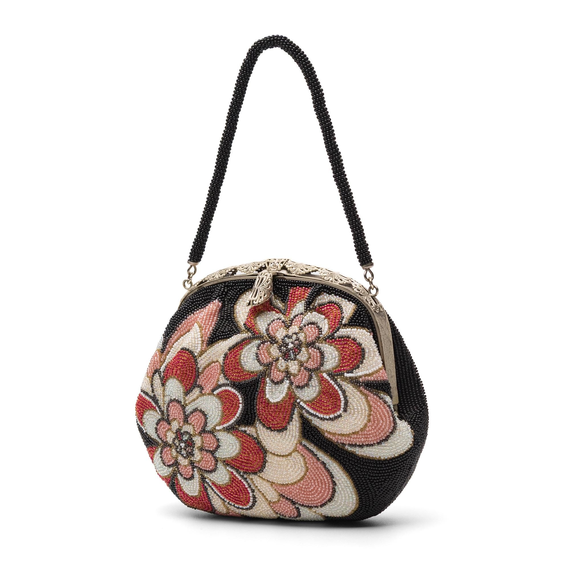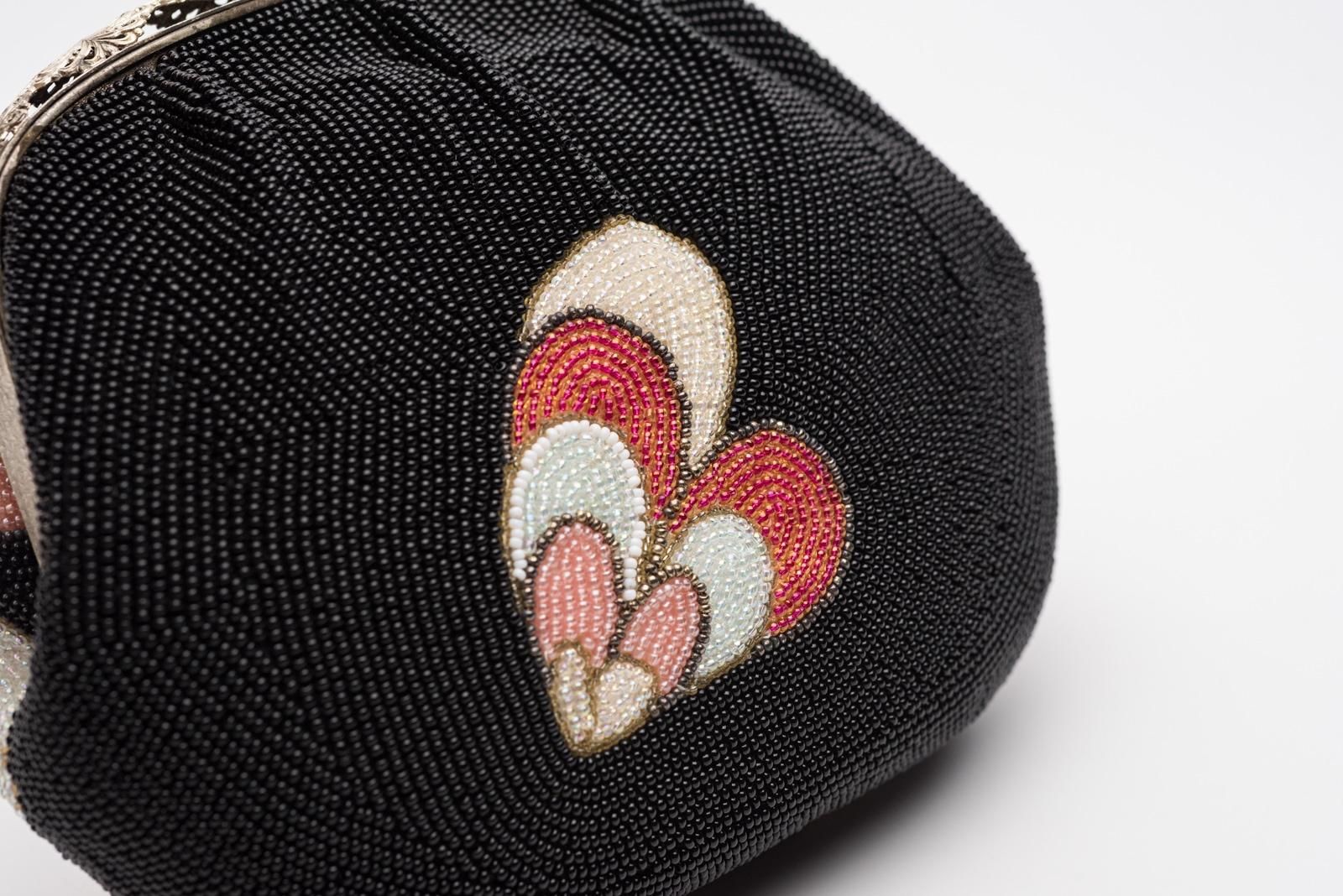 抽象的な花模様が印象的なビンテージのビーズバッグです。