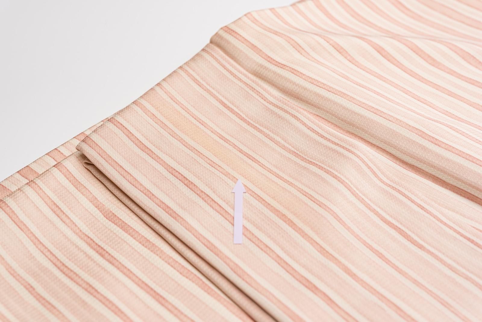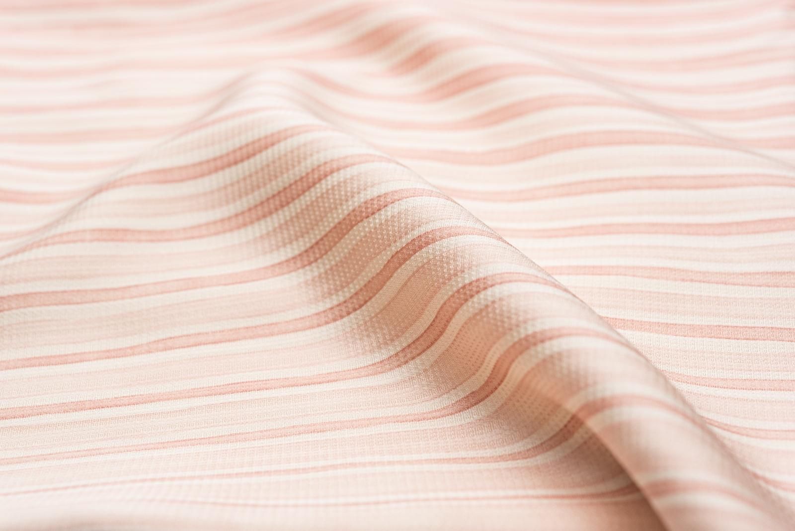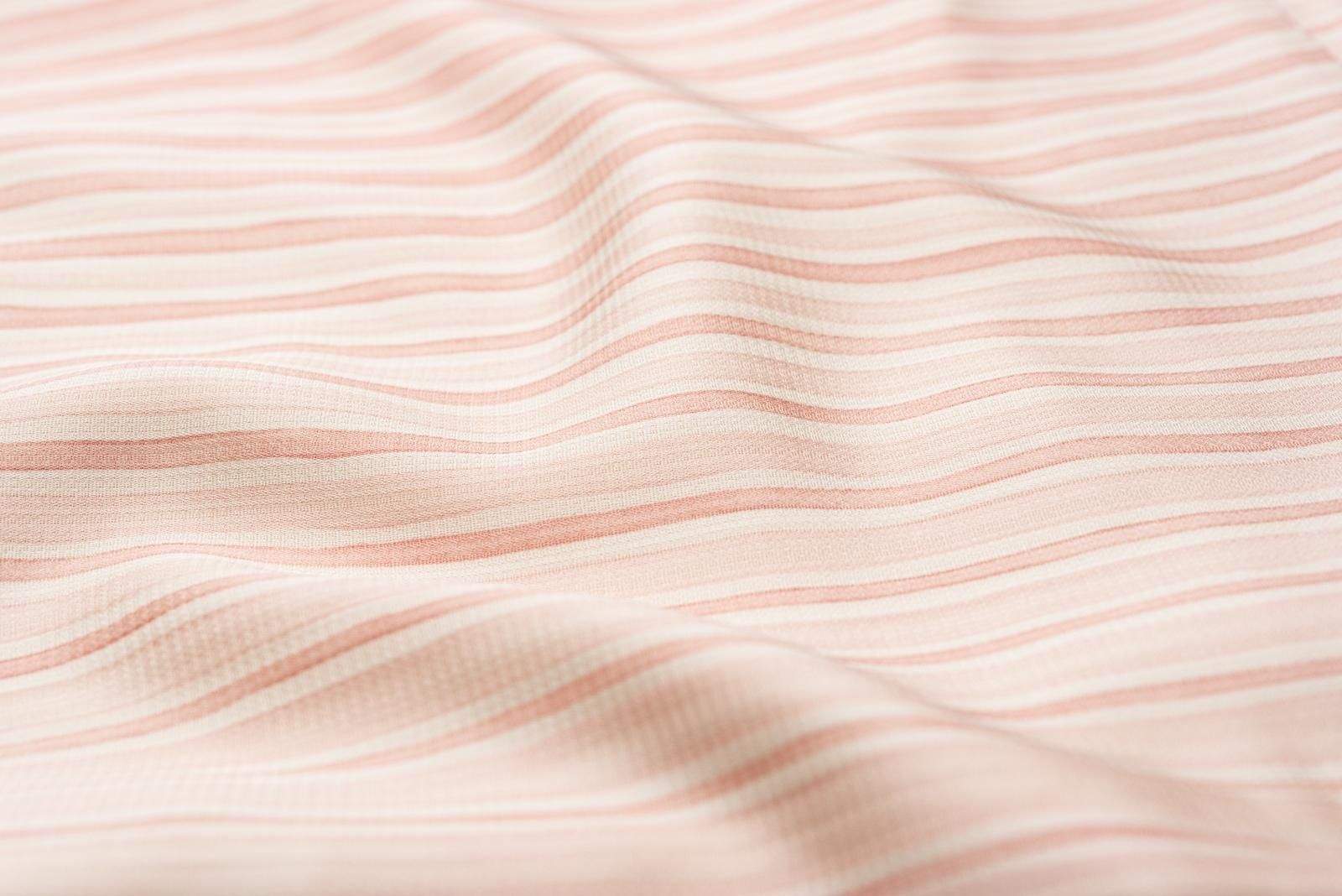 コーラルピンクと白を基調とした縞模様の小紋です。