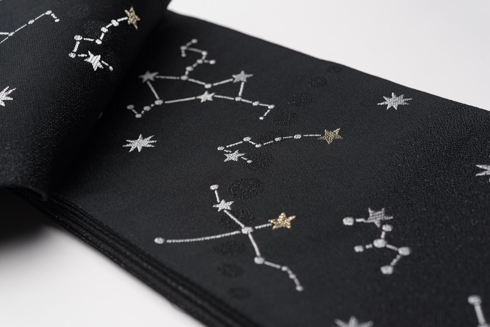 新品 シルクオーガンジーレース半幅帯 黒青系