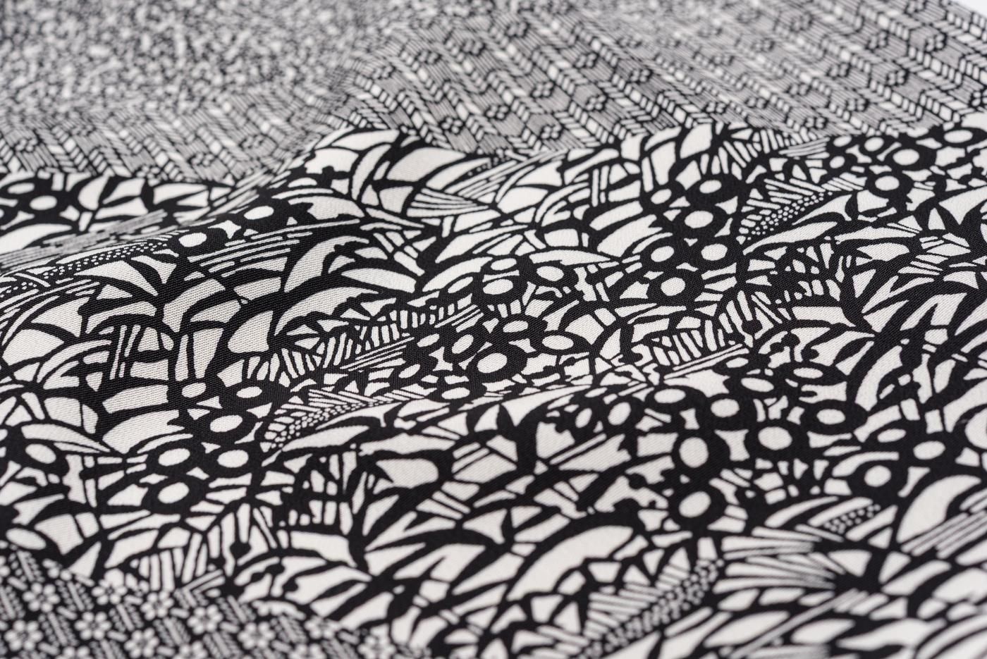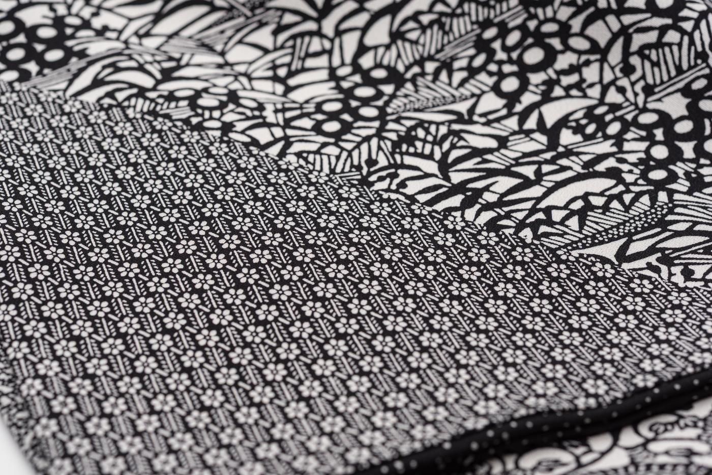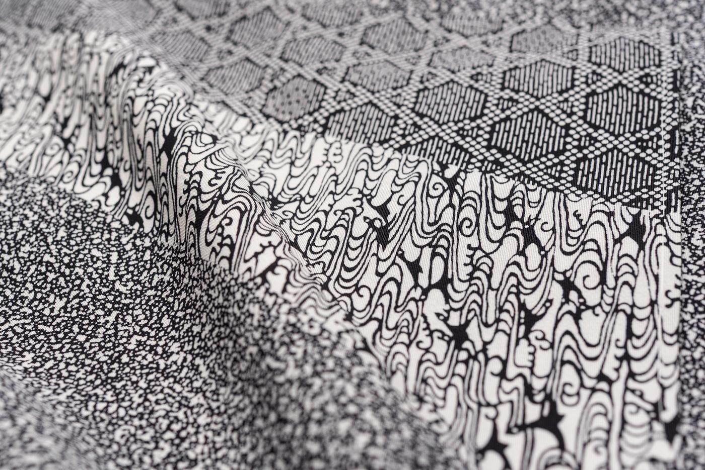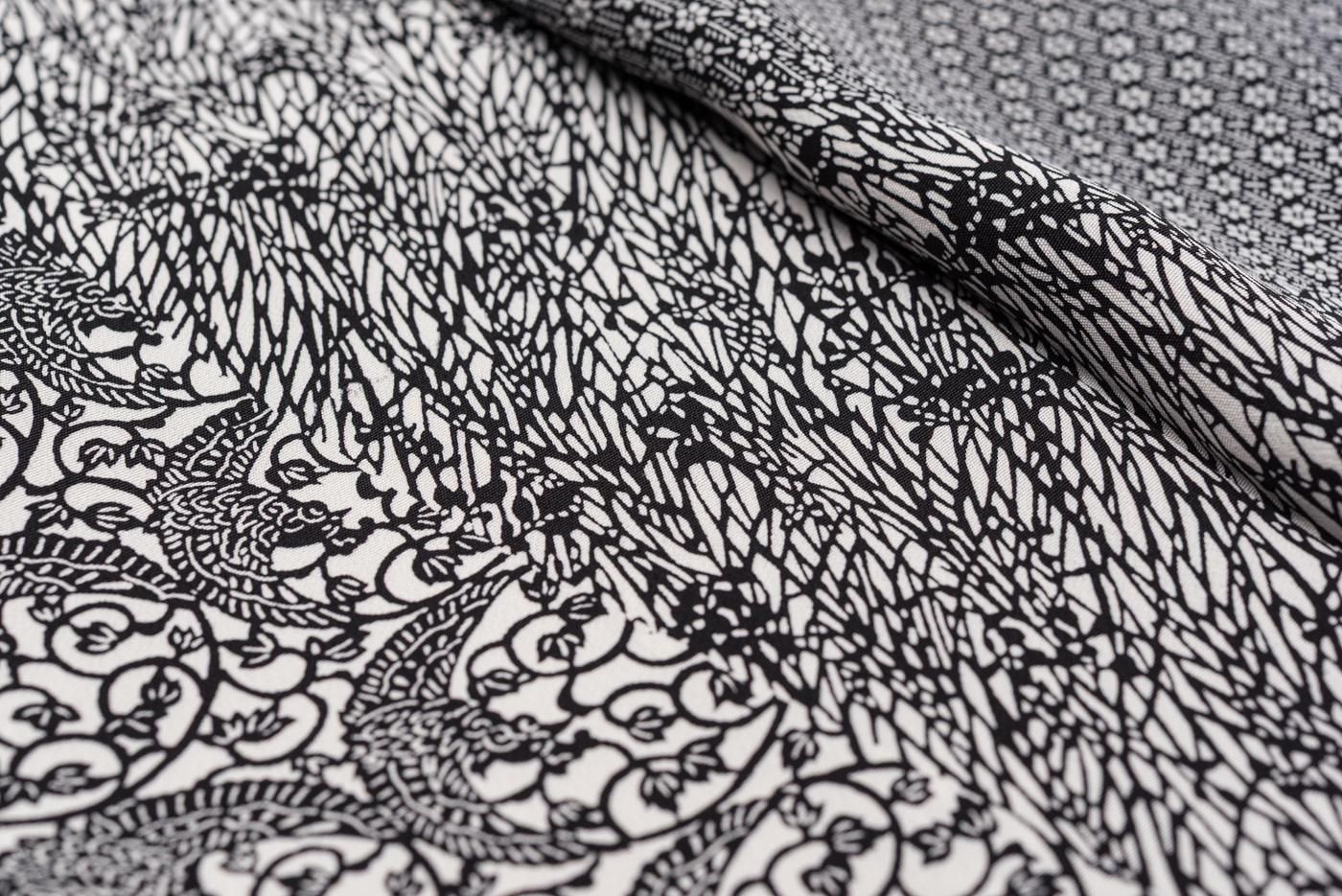叩きの地に流水、草花のシルエット、唐草と鳳凰などを合わせたモダンで粋なデザインです。