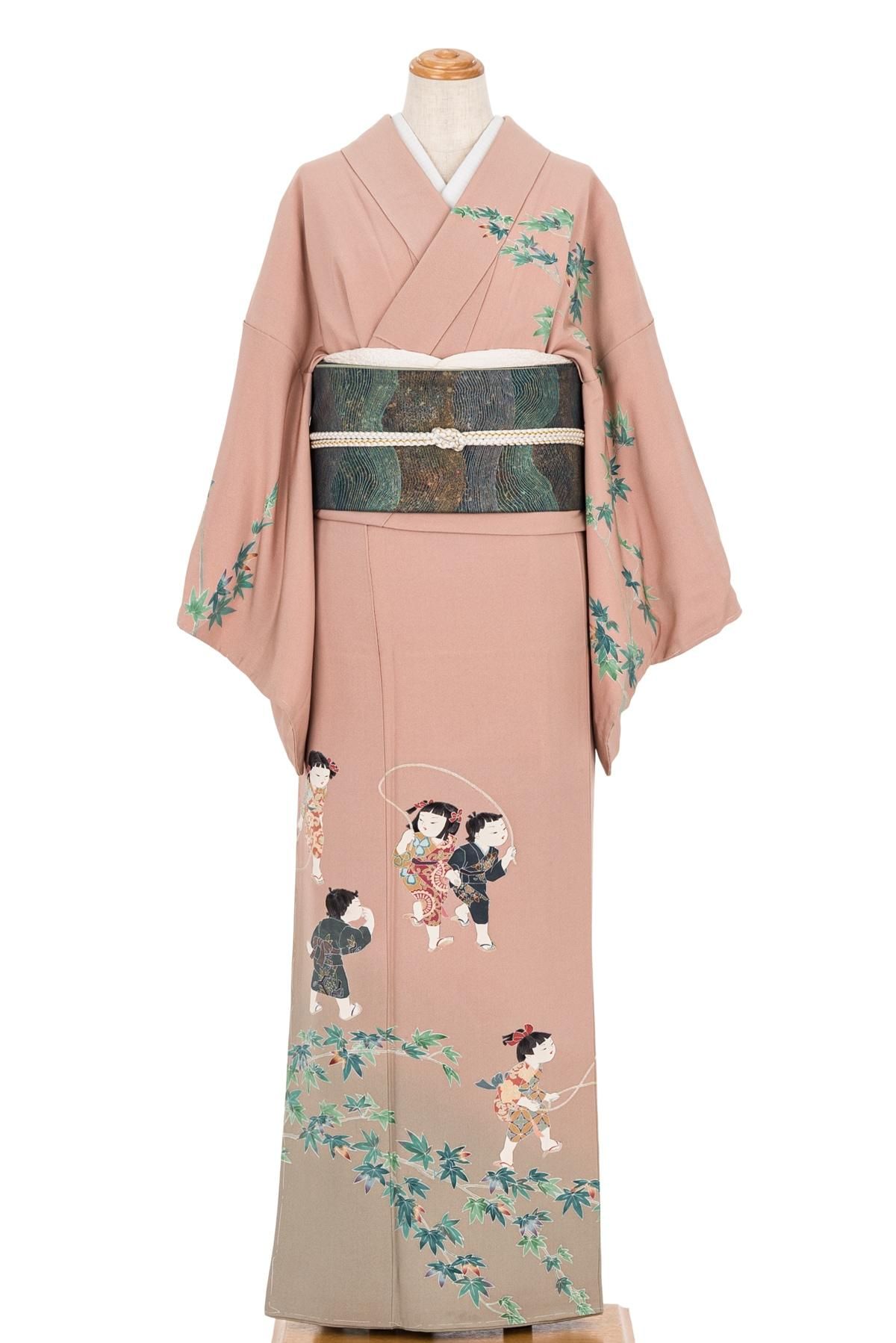 ほのかに色づく青紅葉を手前に遊ぶ子どもたちの姿を描いた懐かしく愛らしいデザイン。
