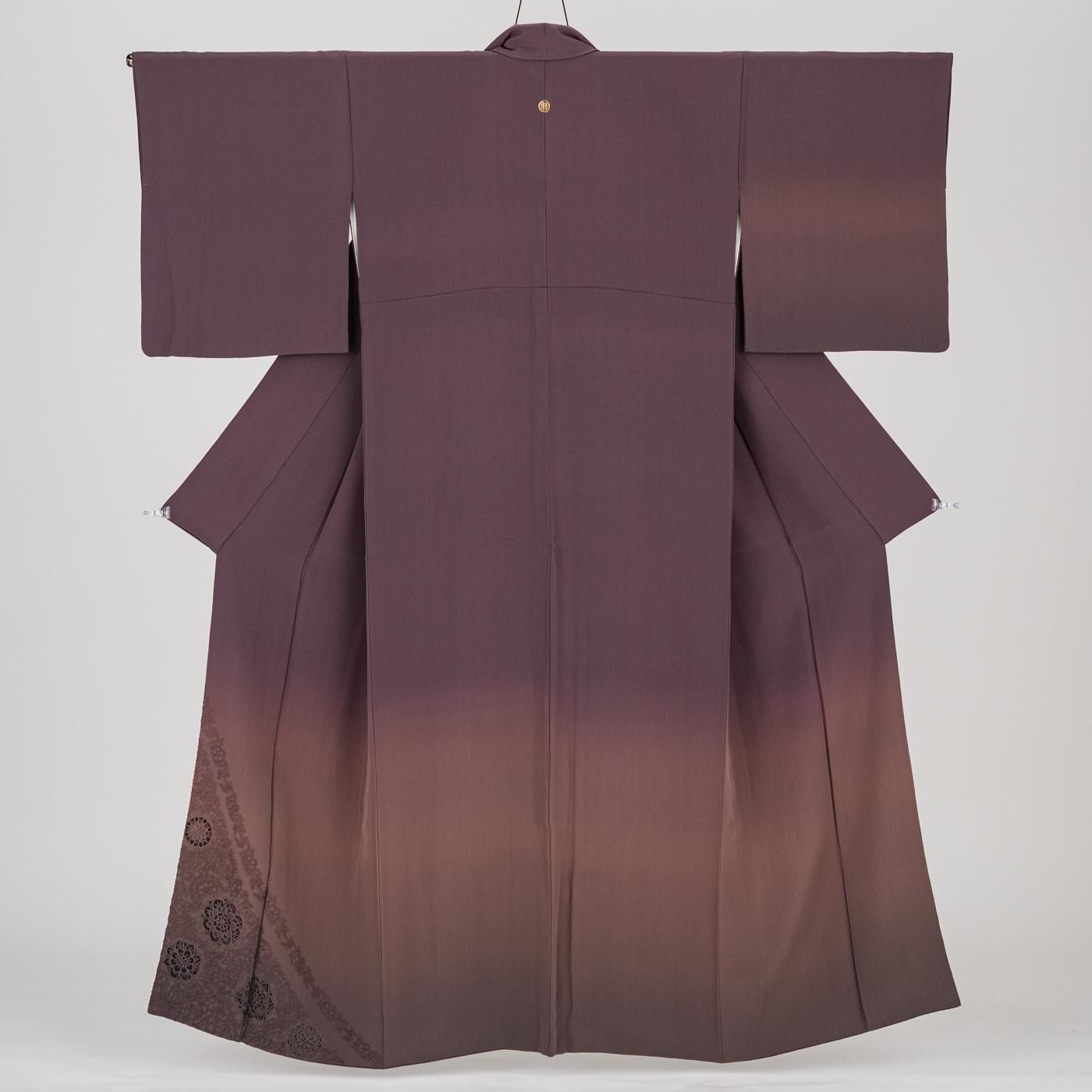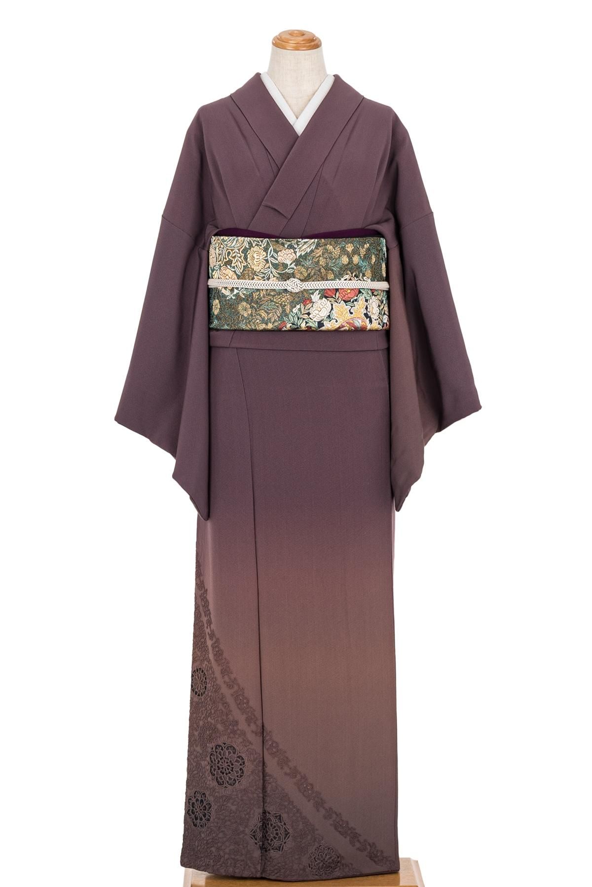 段暈しに相良刺繍の華紋を添えた一つ紋入りの訪問着です。