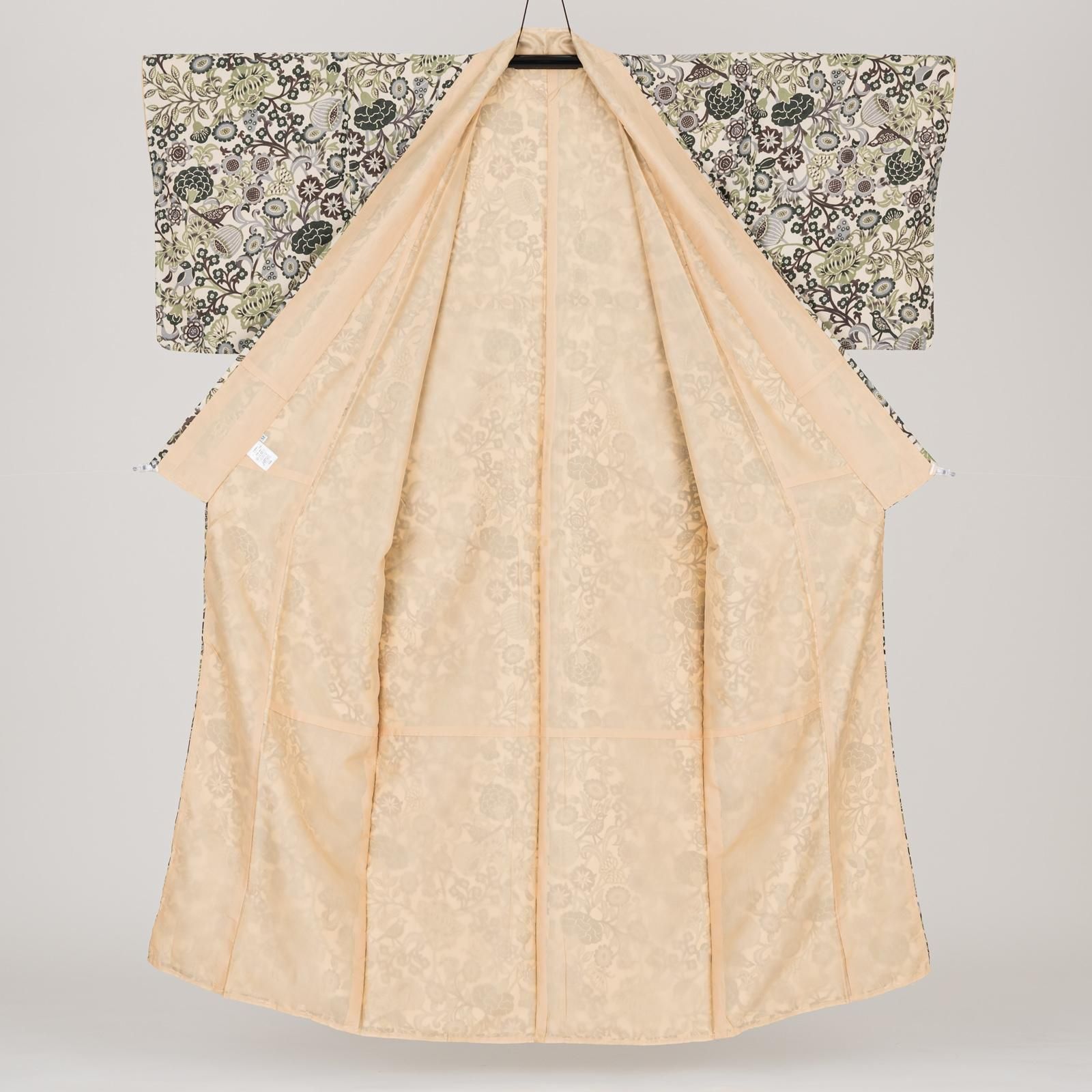 【L】新品 袷 洗える着物 花と小鳥と蝶