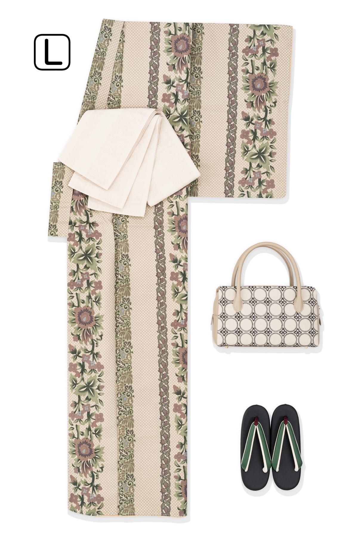 【売り切れ】 【L】新品 袷 洗える着物 ドット花ライン ベージュ
