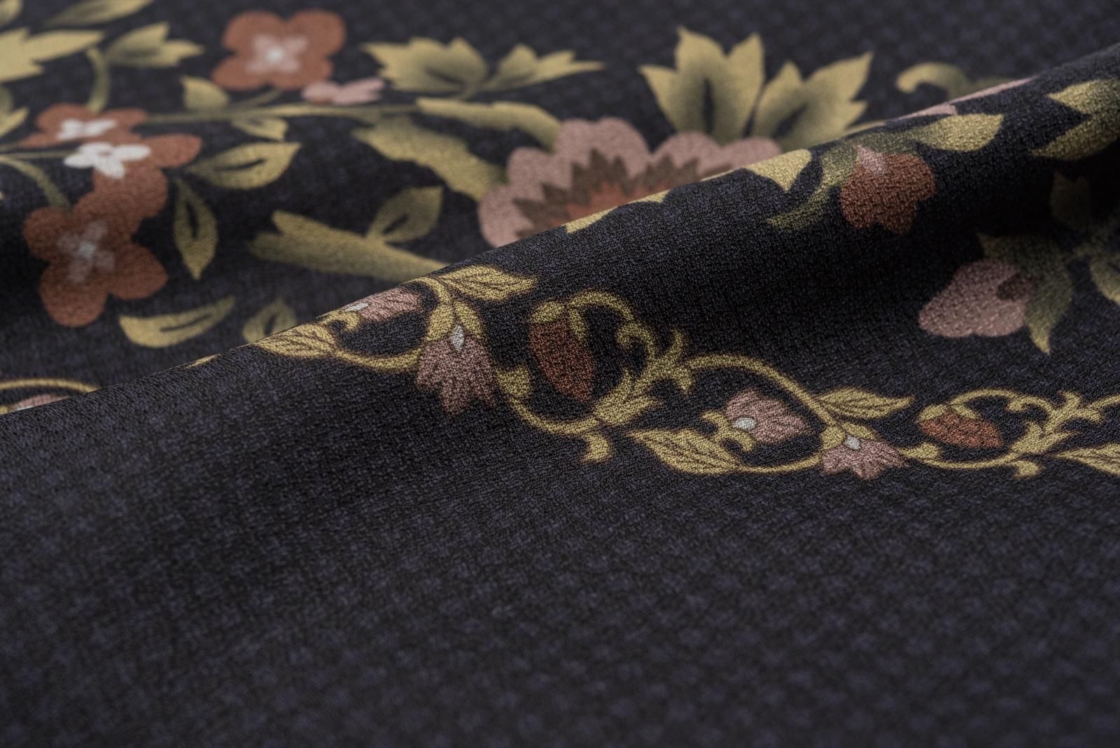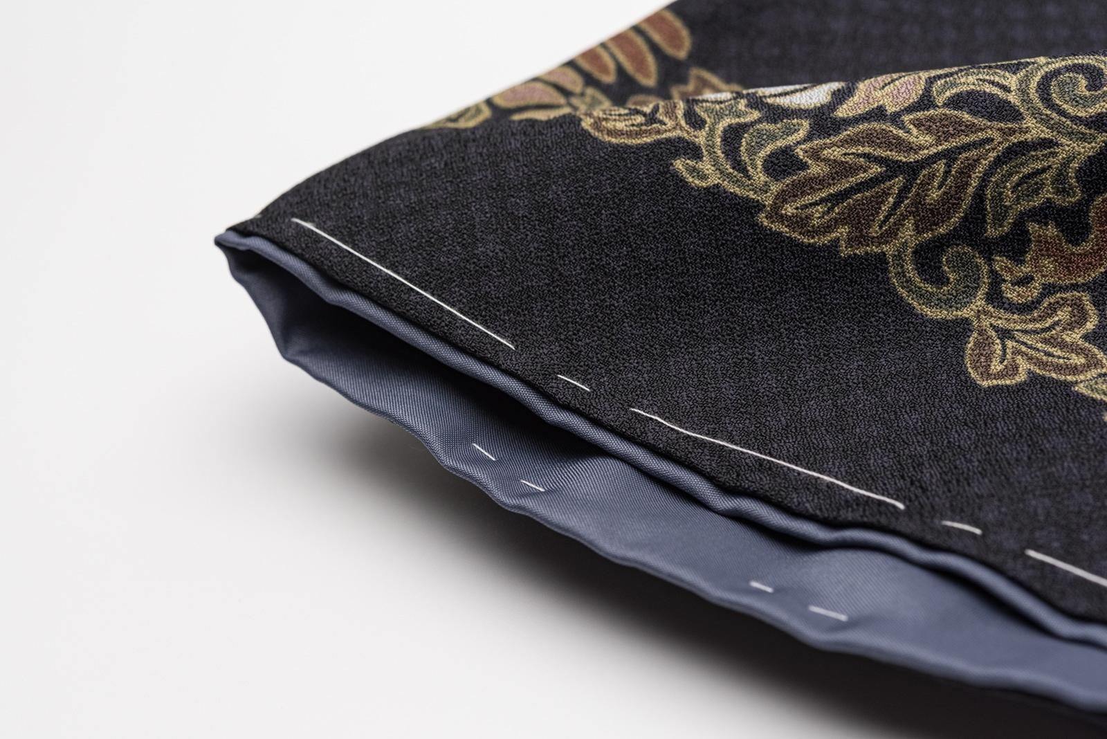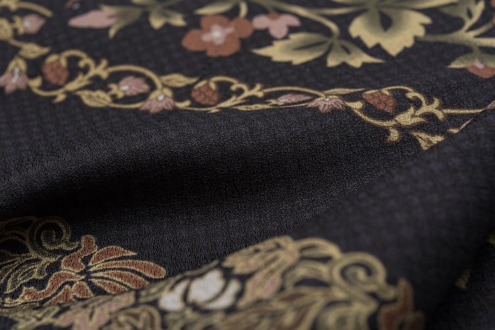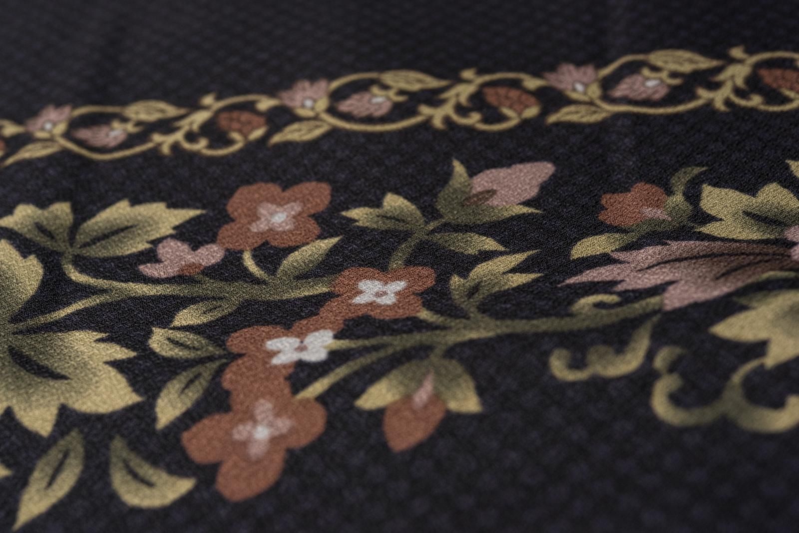 黒地にお花のラインを染めた小紋です。