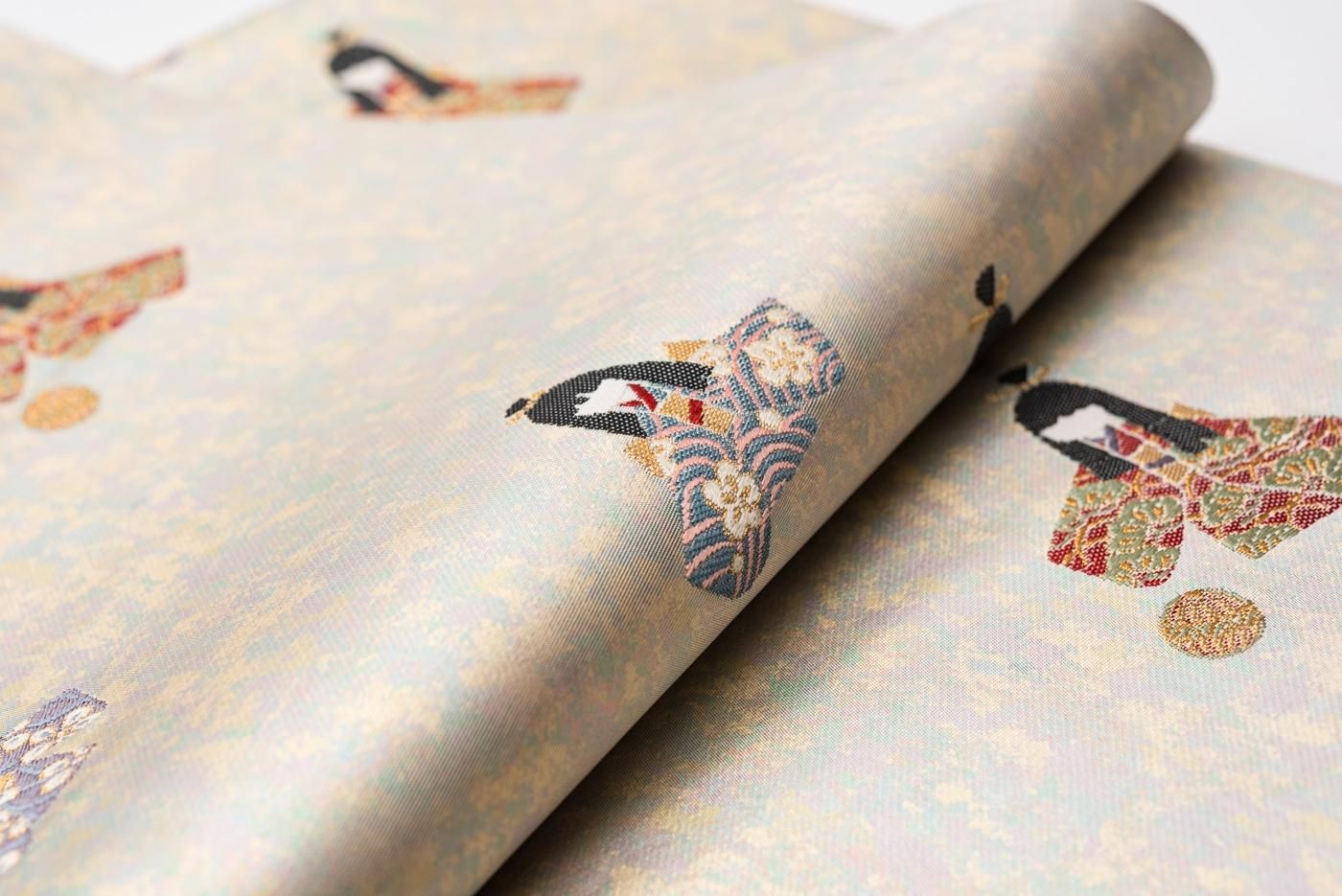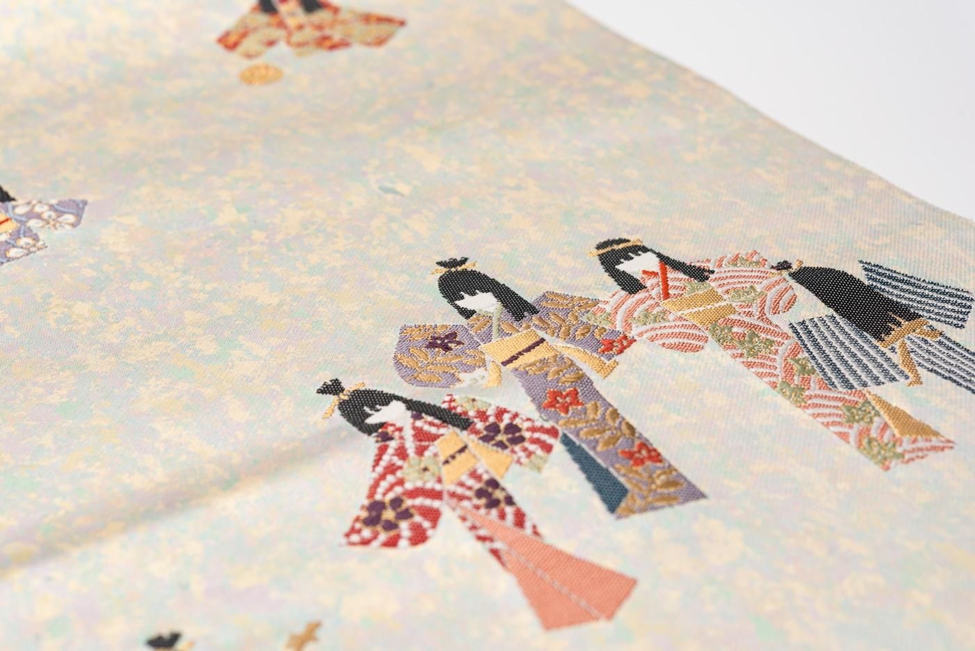 それぞれの着物の模様も細かく色鮮やかに織り出された可憐なデザイン。