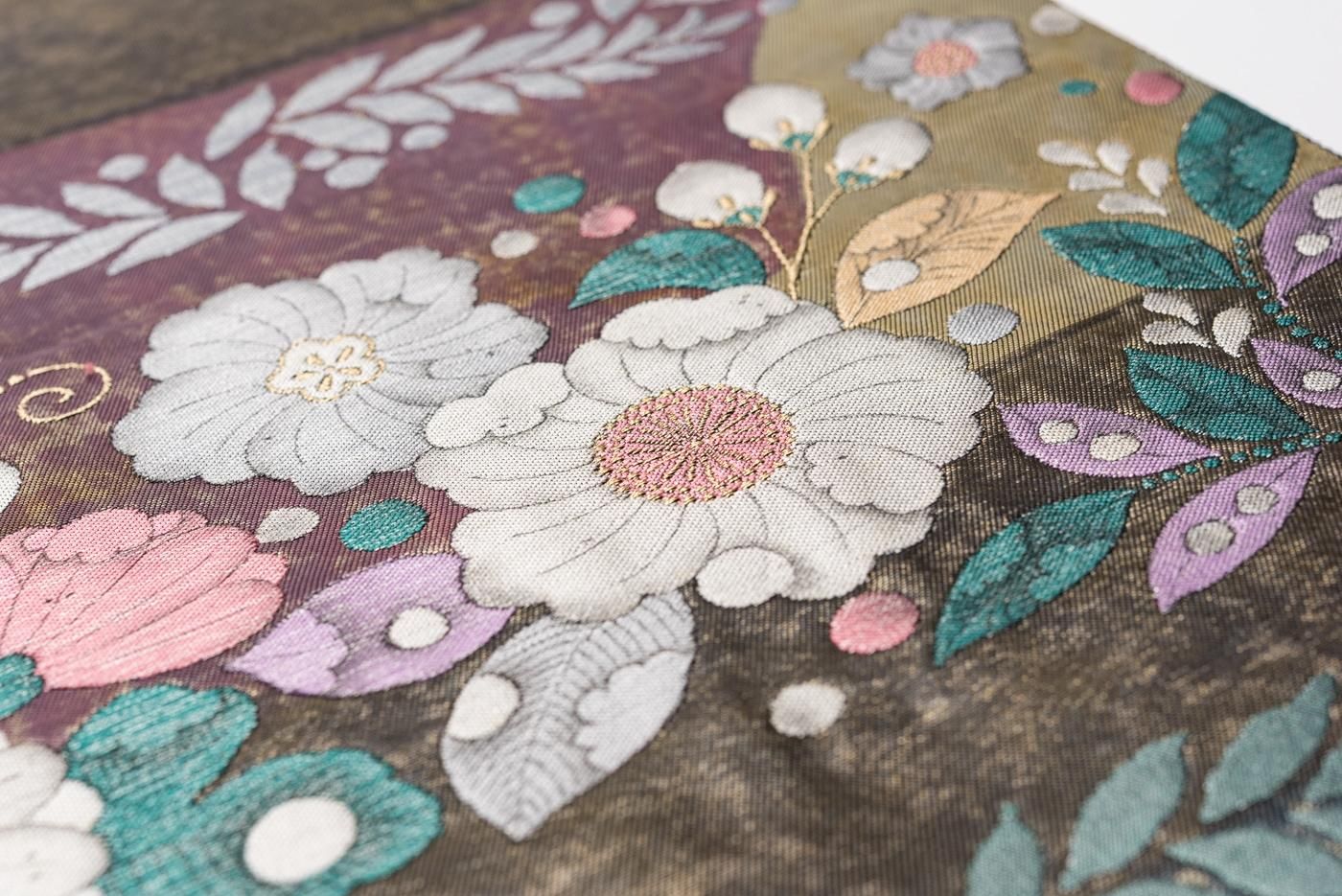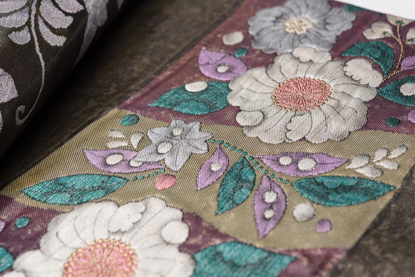 辻が花模様を織り出したお太鼓柄の袋帯です。