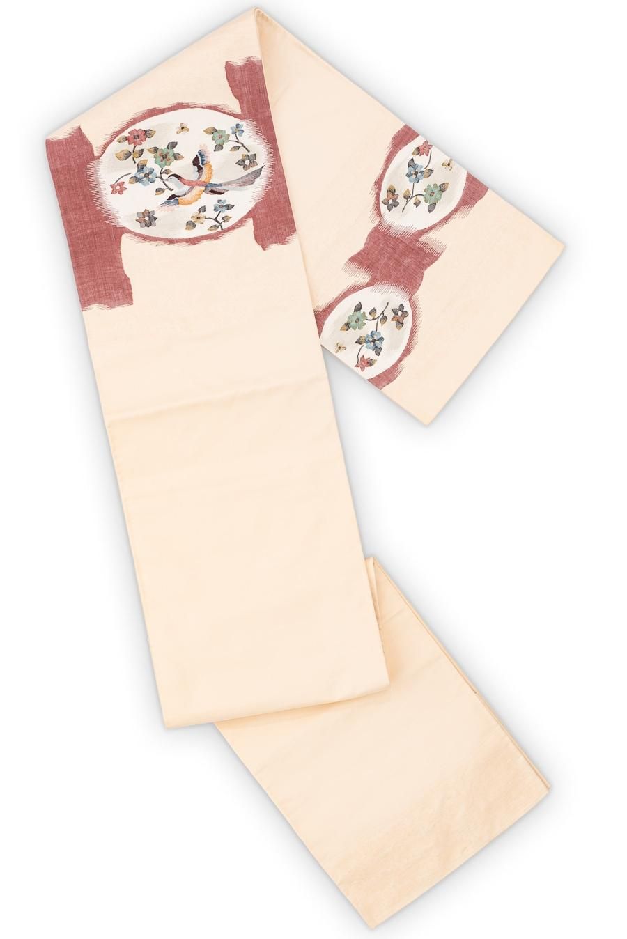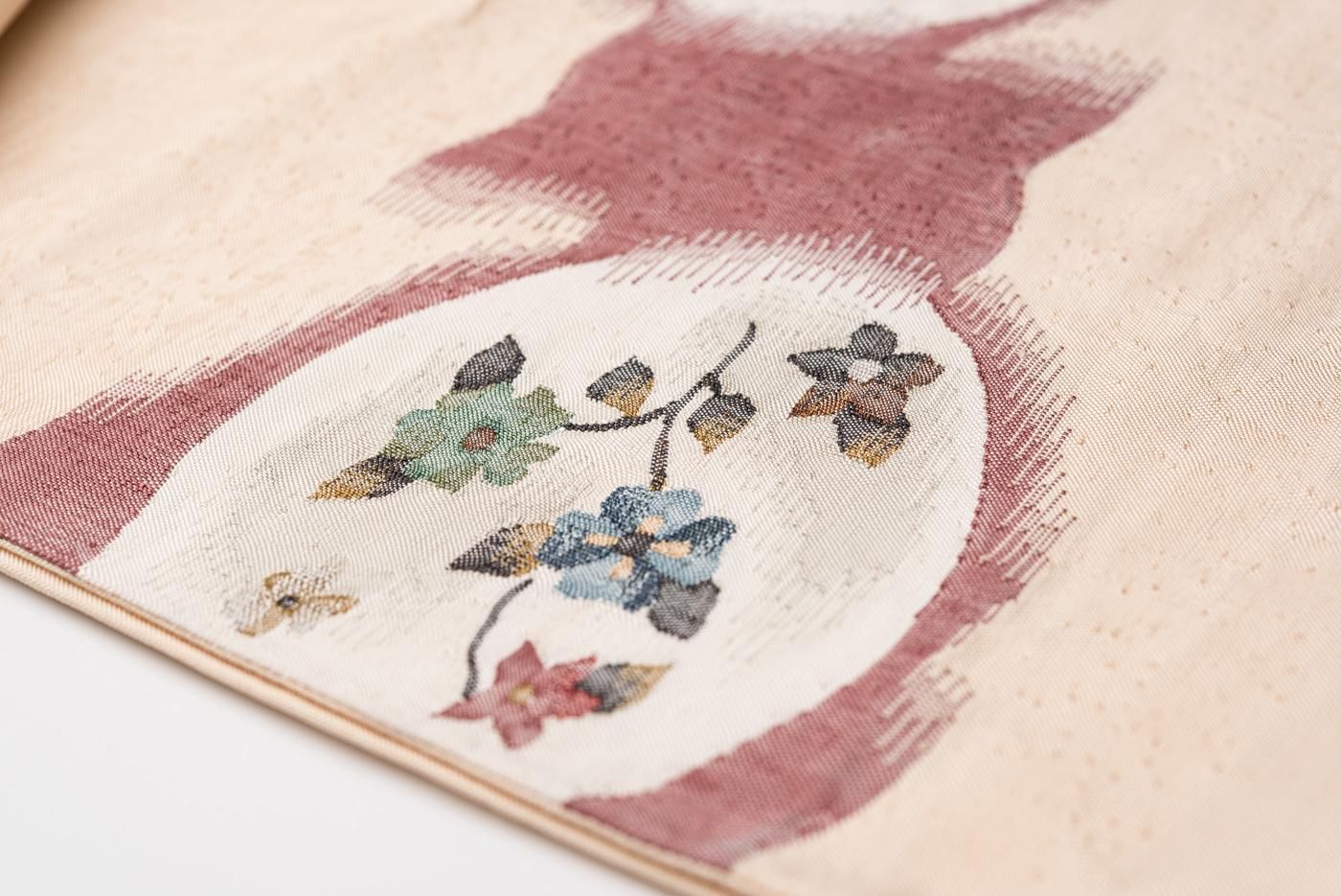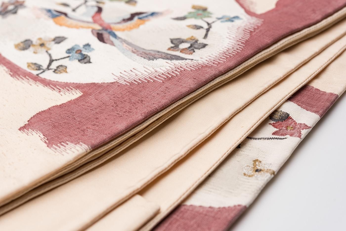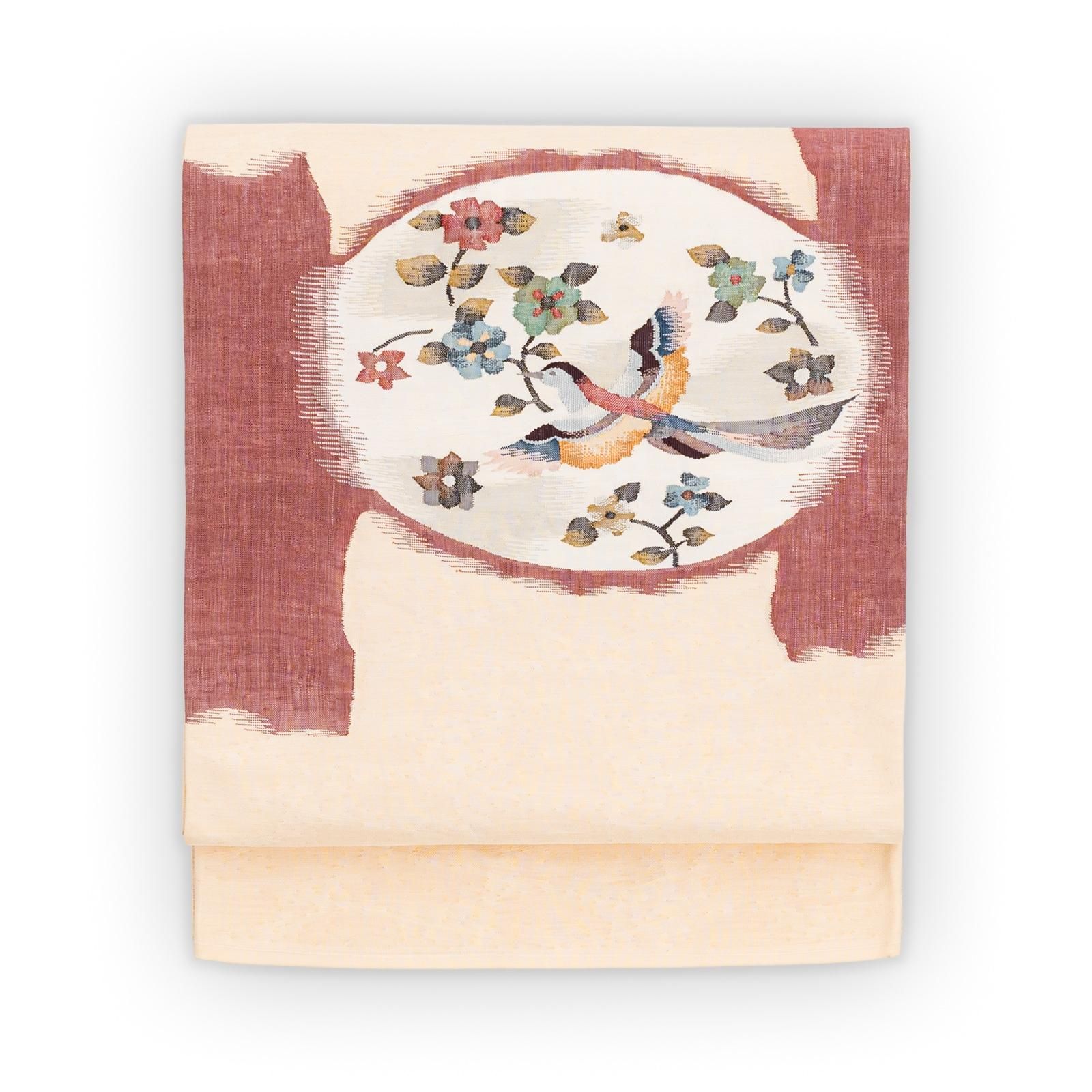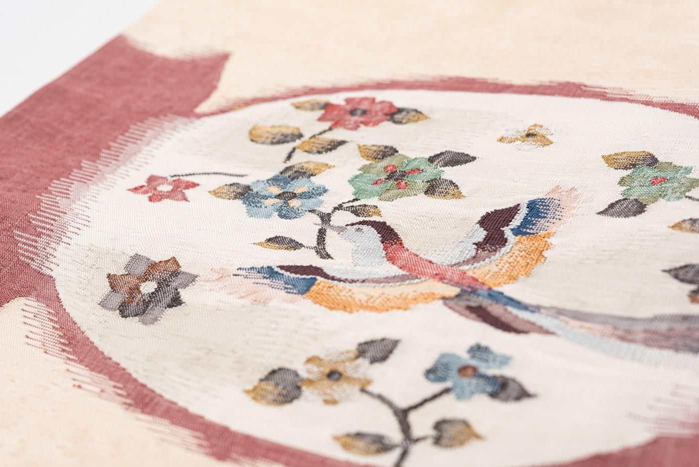 花喰鳥を織り出したお太鼓柄が洒落袋帯です。
